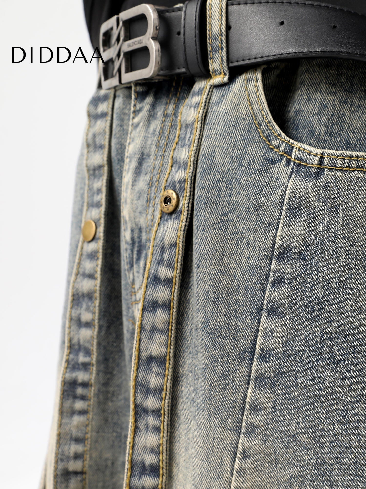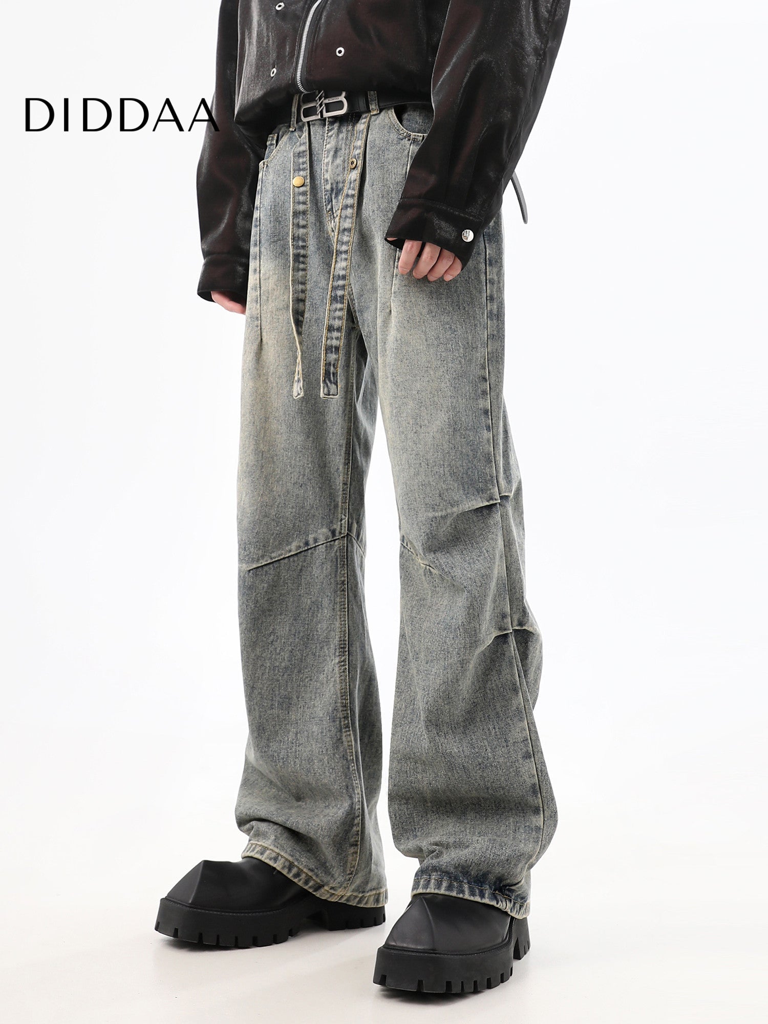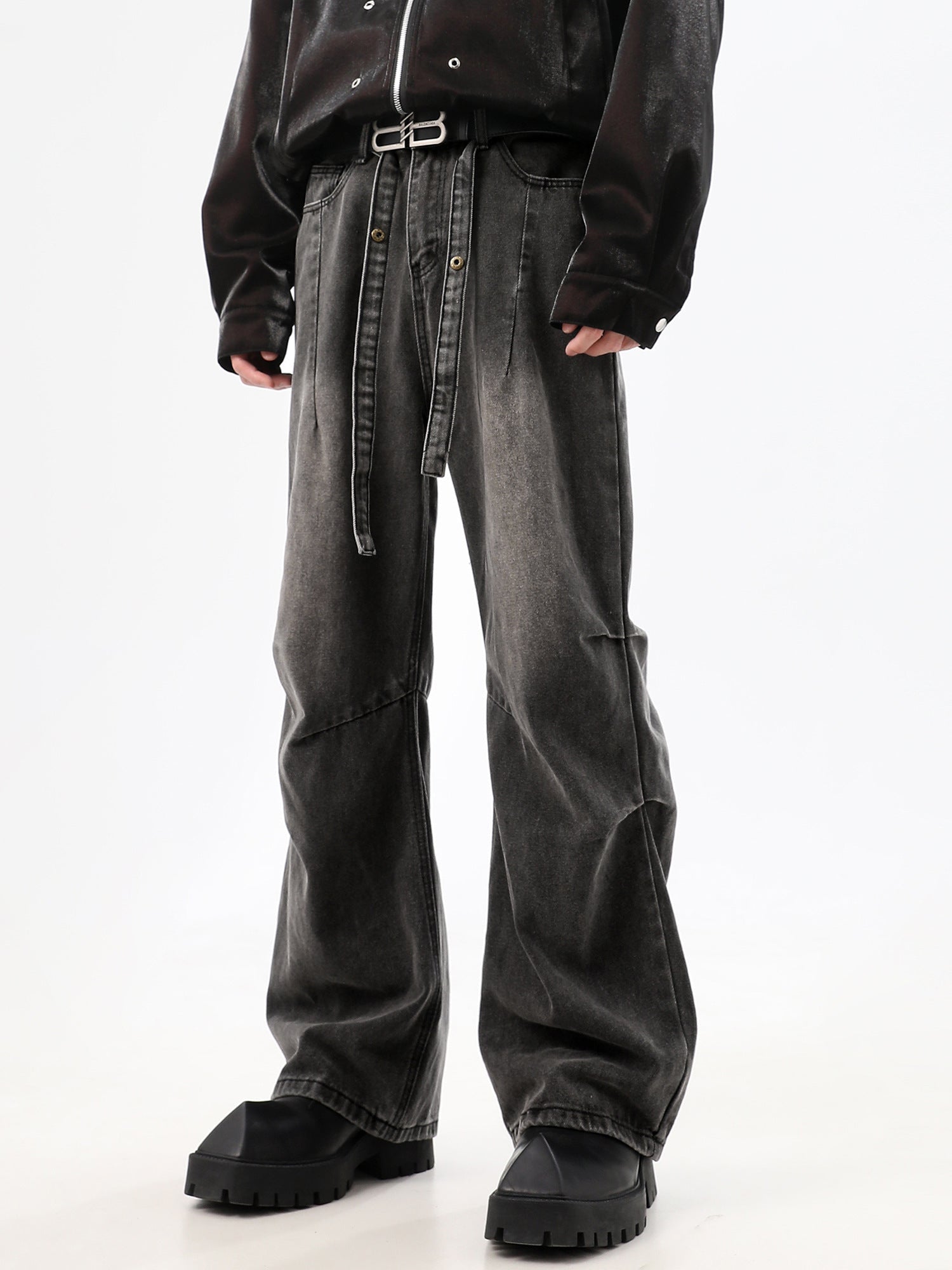 Blue Stacked Distressed Wash Wide-Leg Jeans