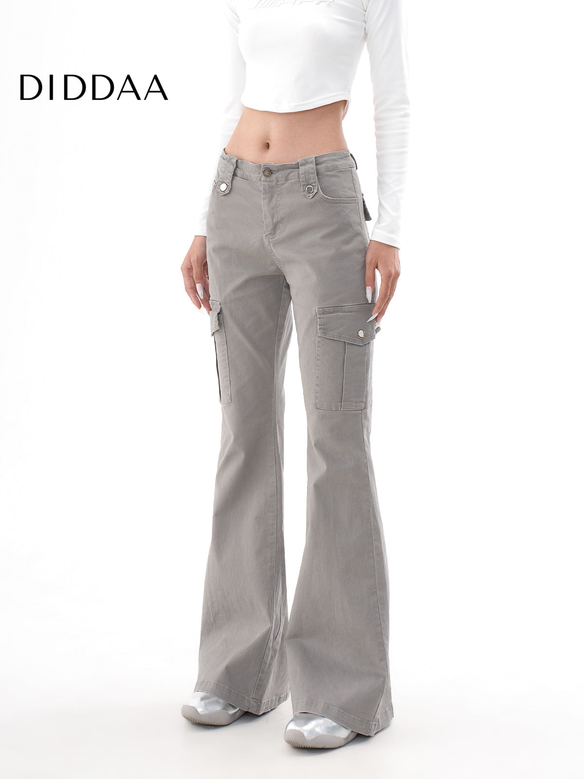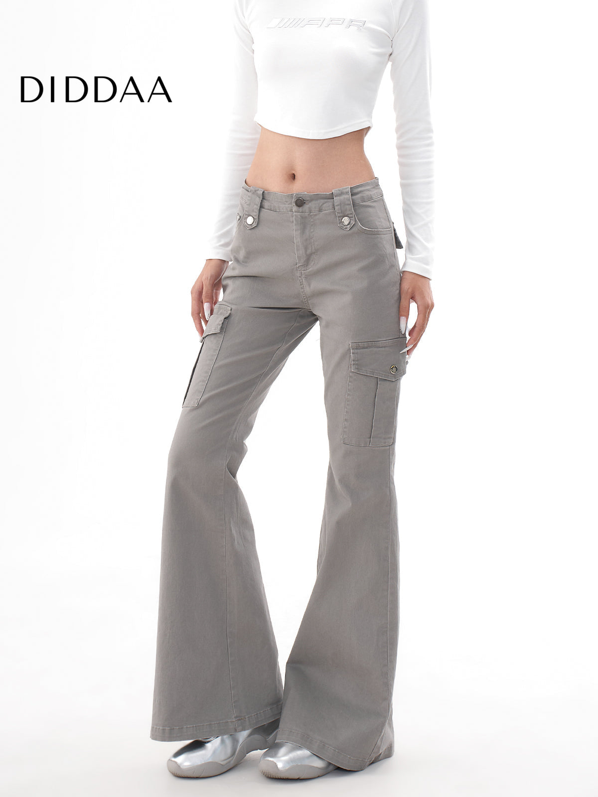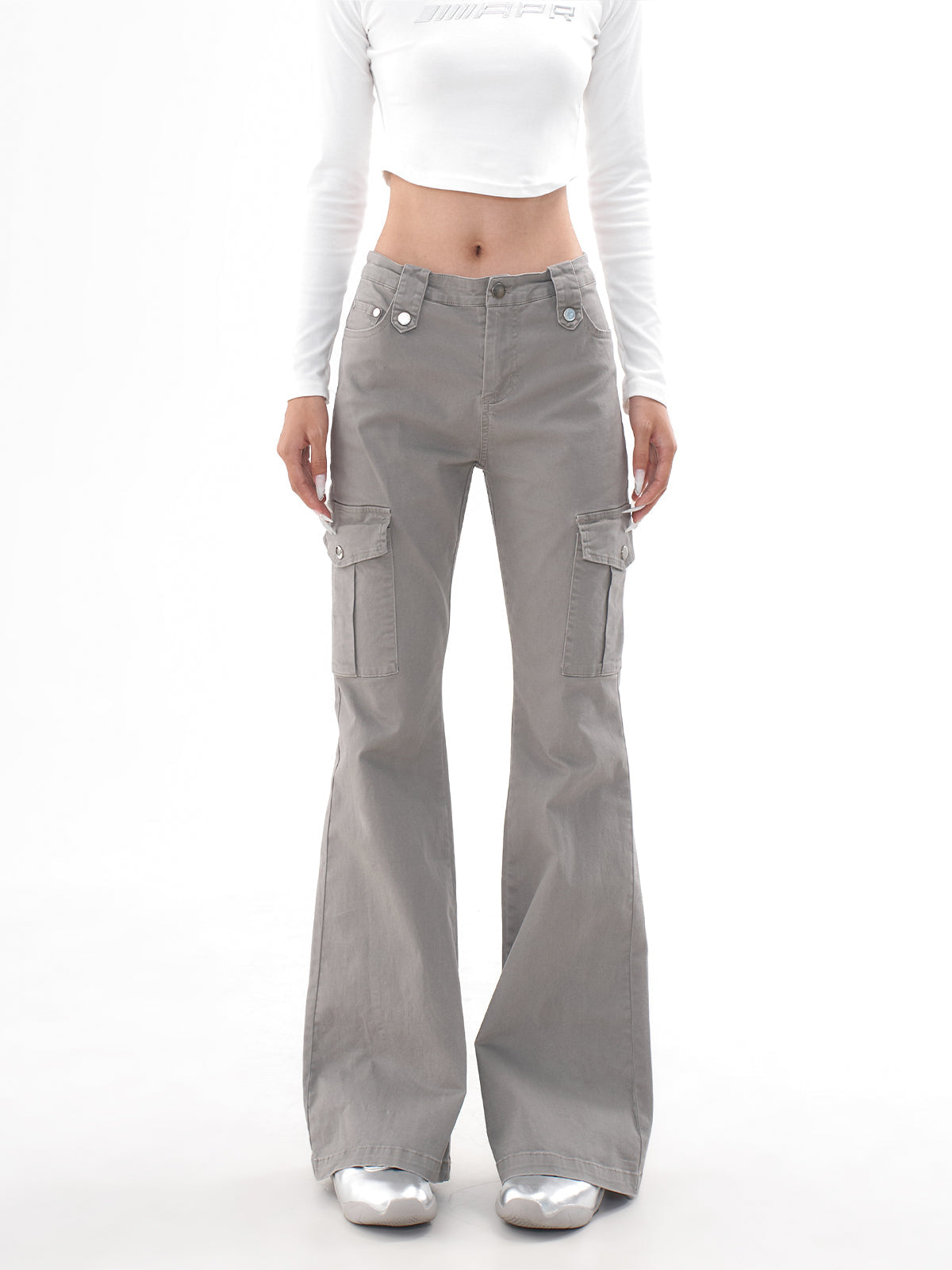 Blue Stretch Slim Micro Flare Cargo Jeans Women
