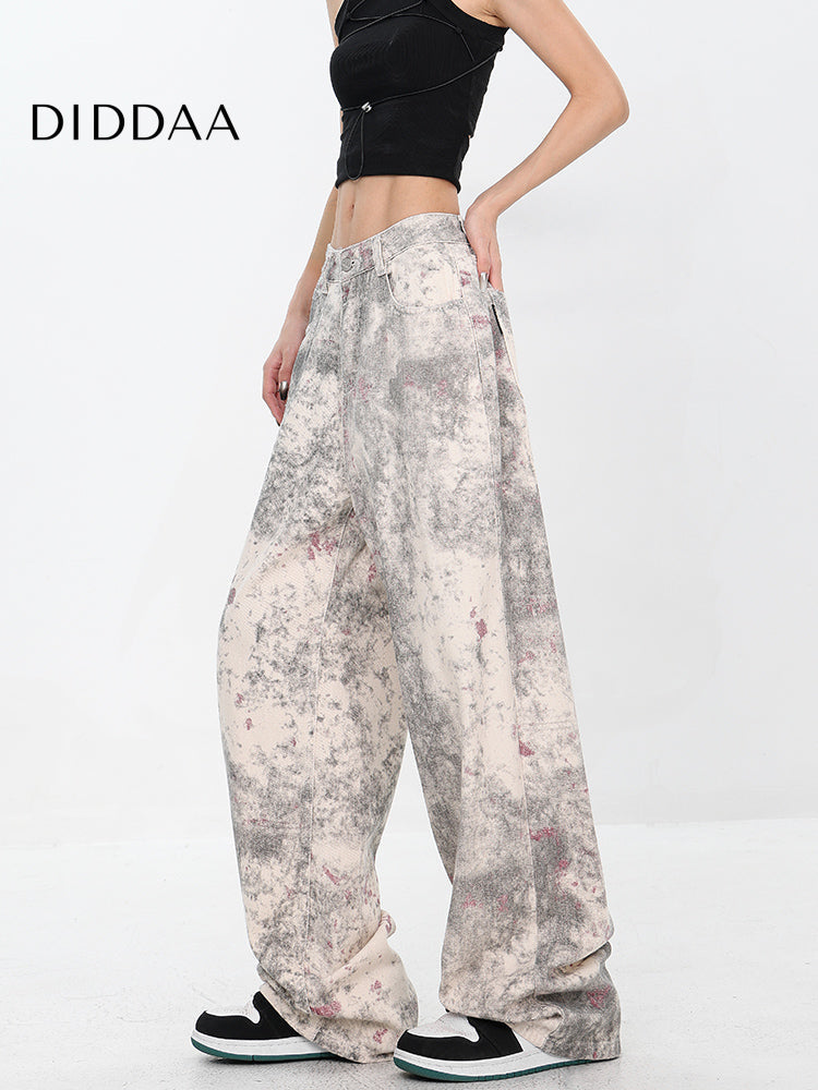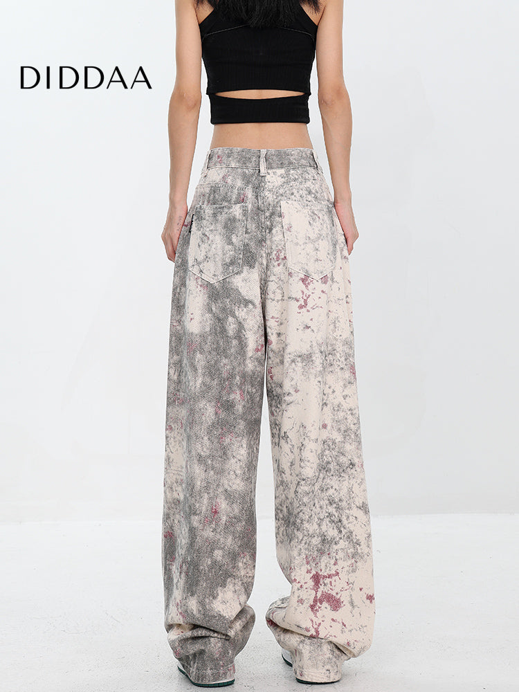 Blue Tie-Dye Camouflage Loose Wide-Leg Jeans