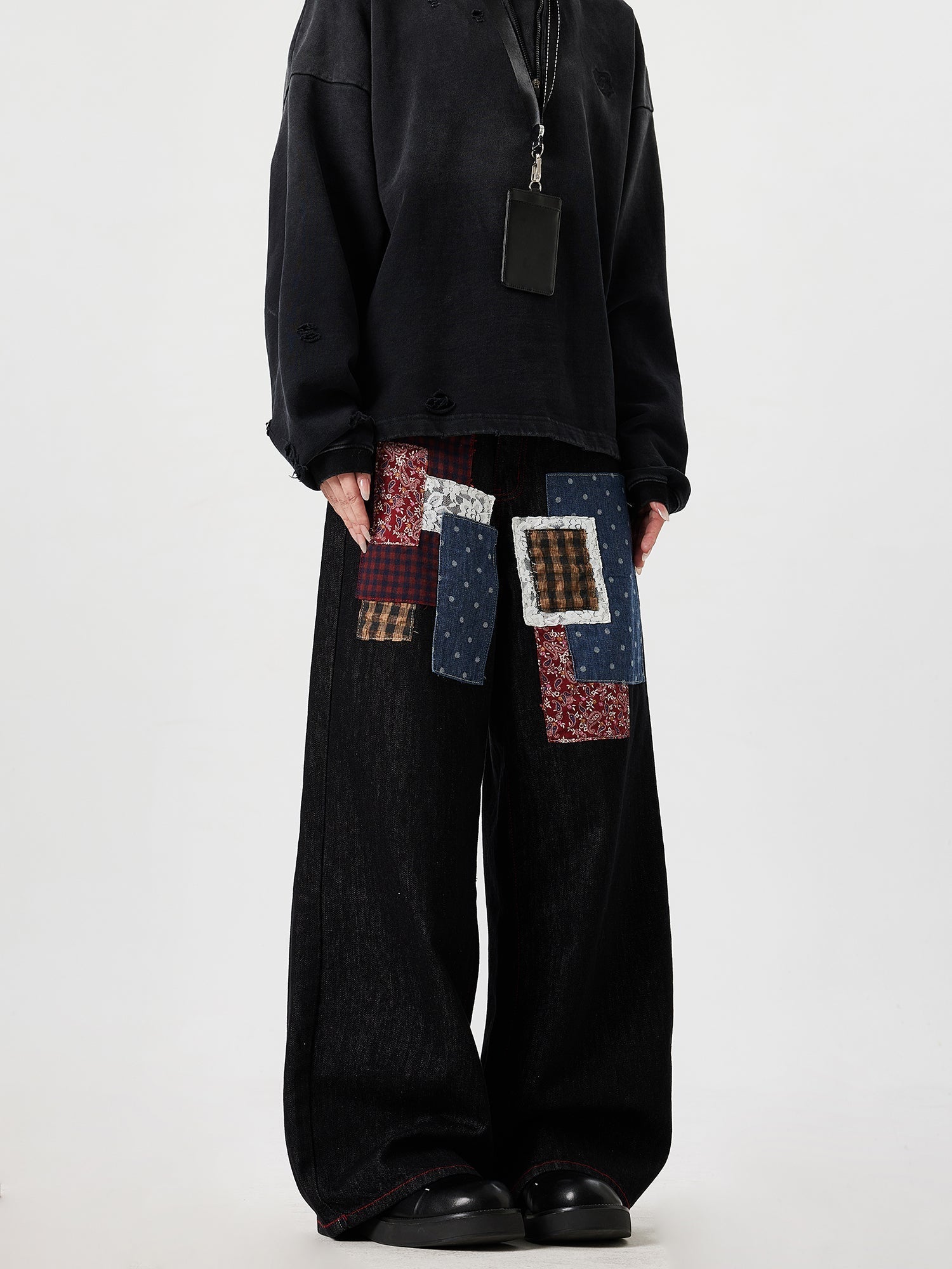 Blue Trendy Patchwork Denim Wide Leg Jeans
