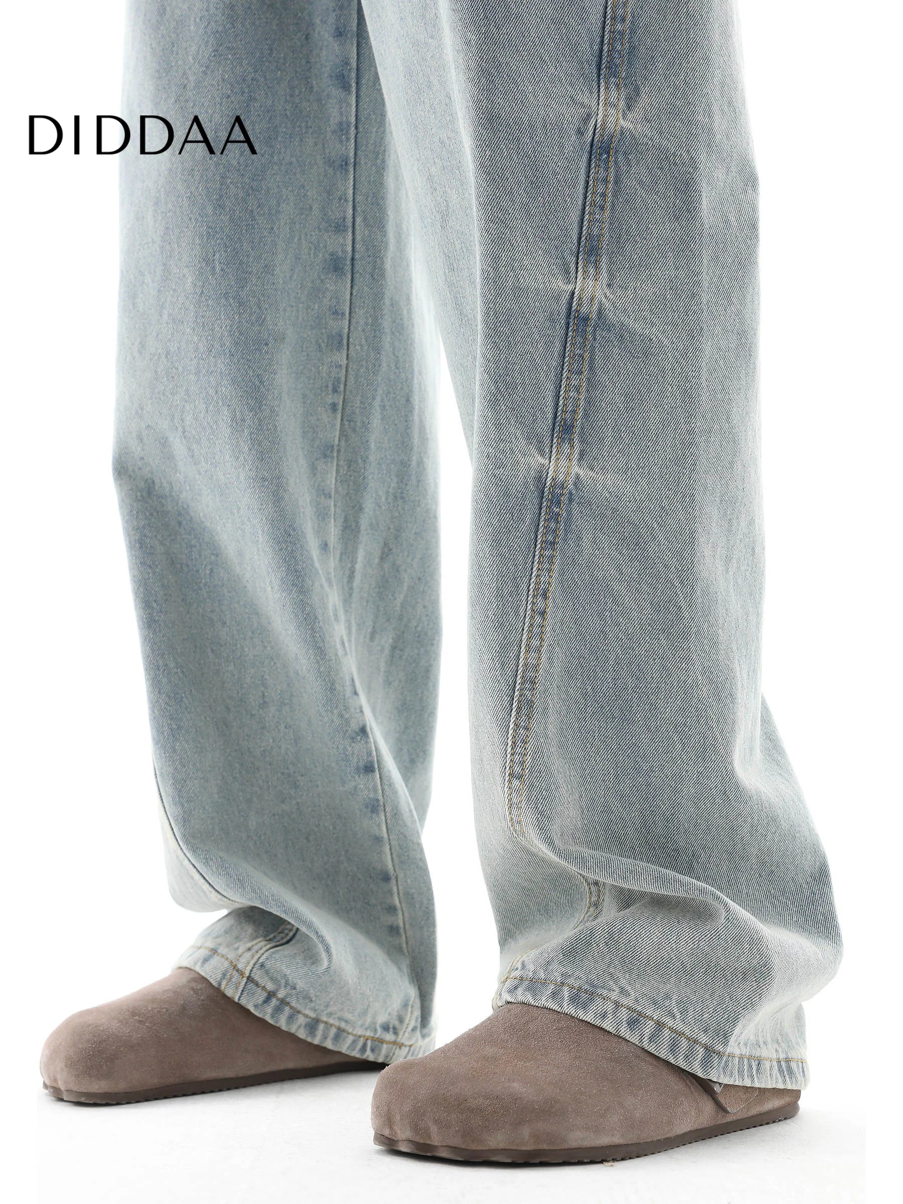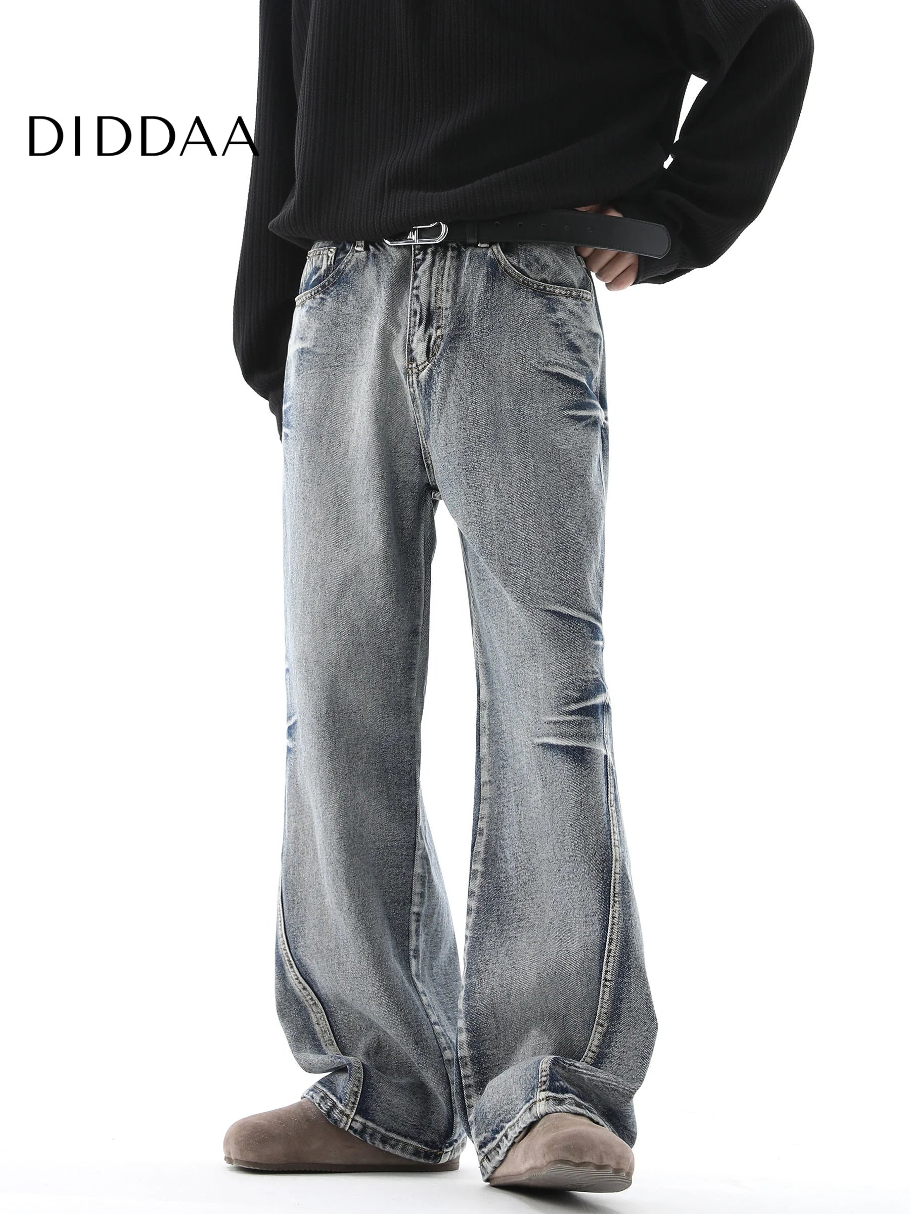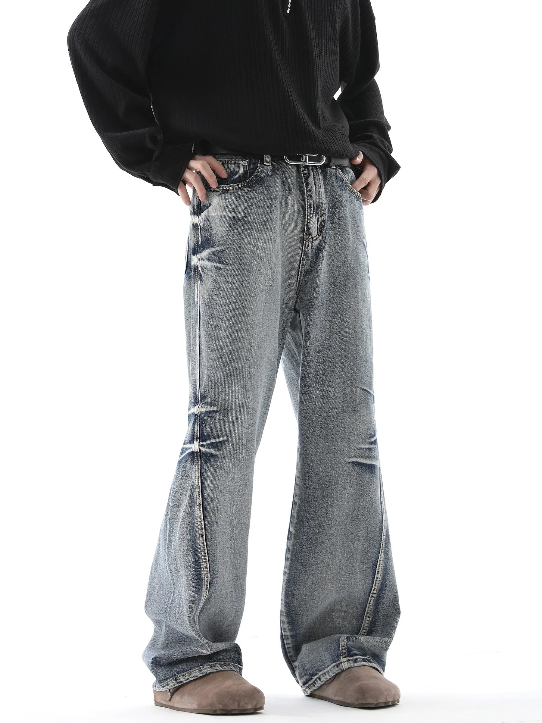 Blue Vintage Distressed Bootcut Jeans Men's Autumn Pants