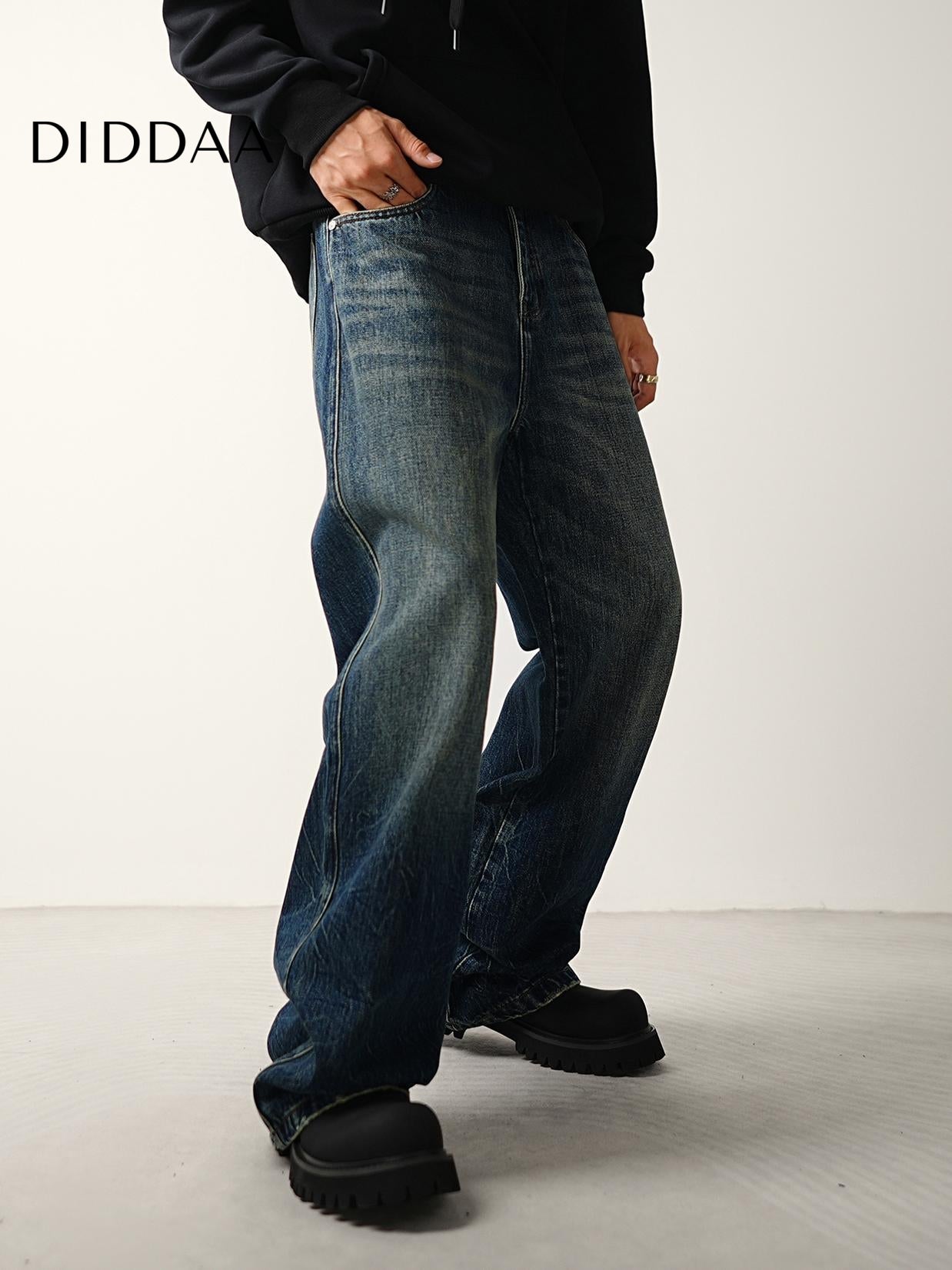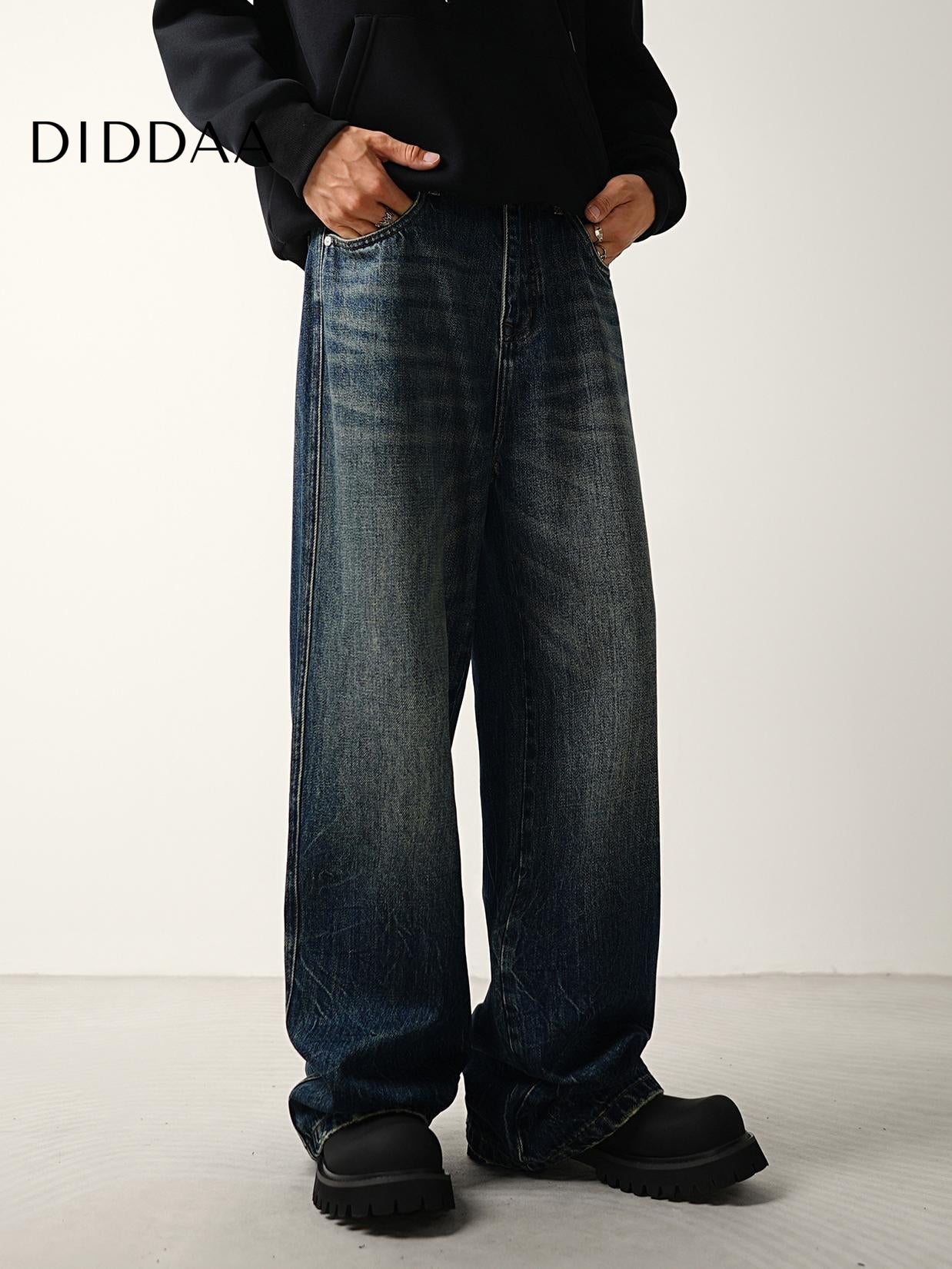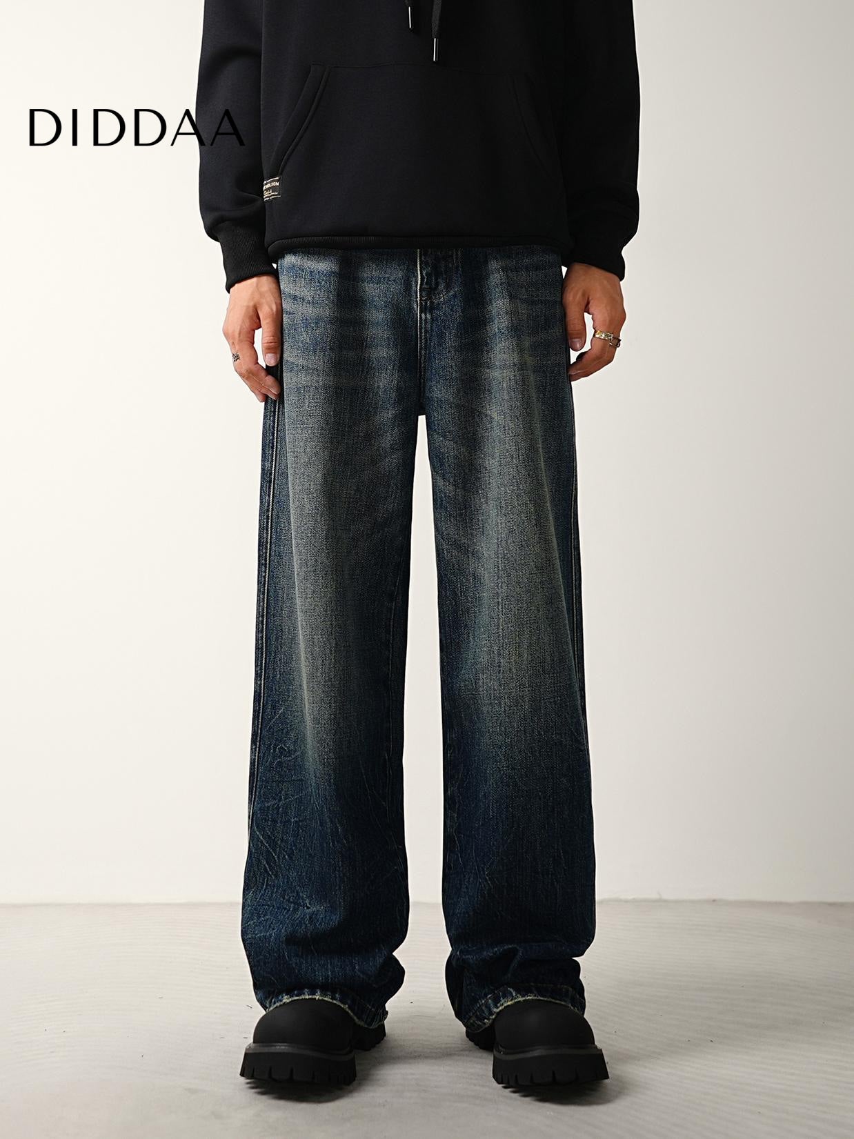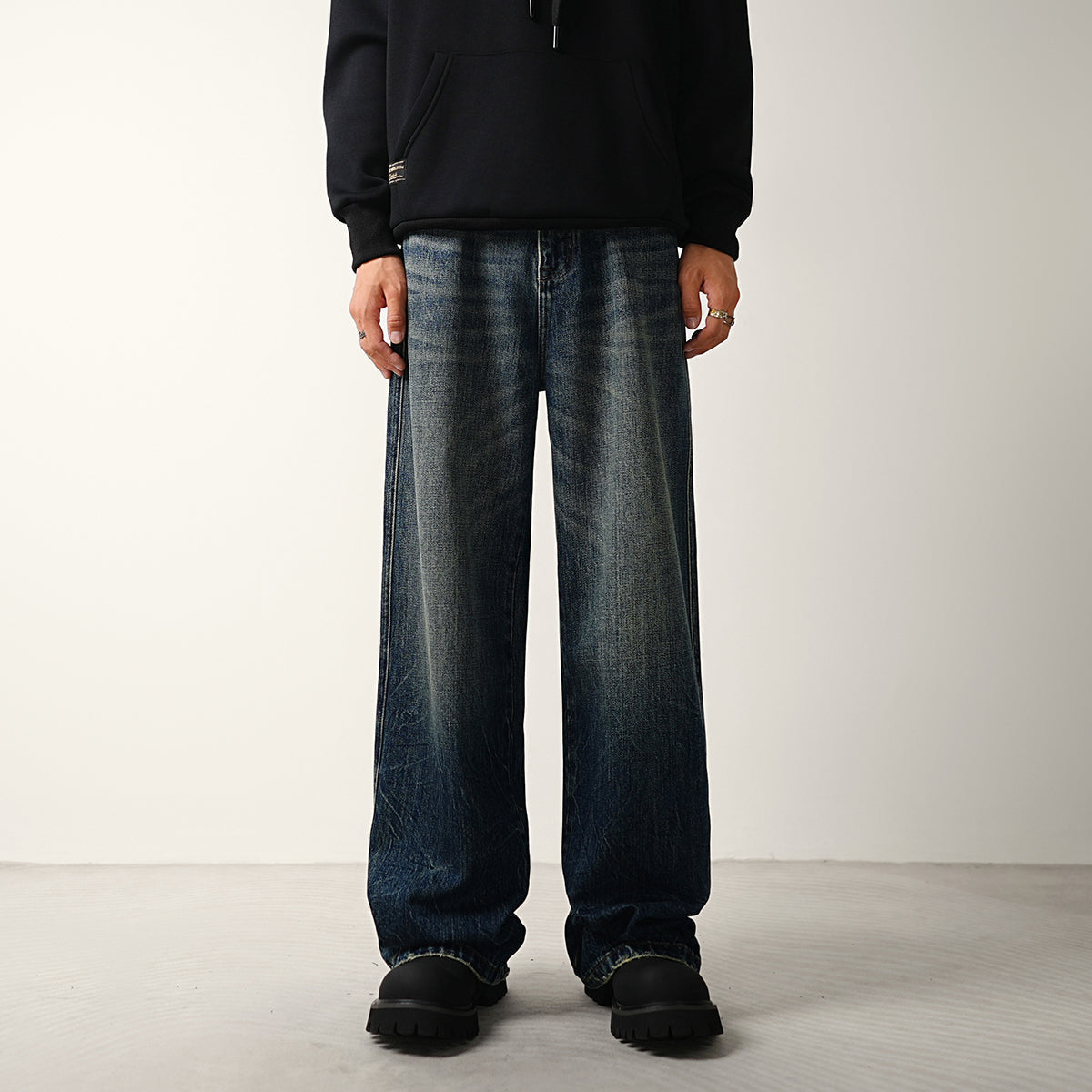 Blue Vintage Distressed Loose Wide-Leg Jeans
