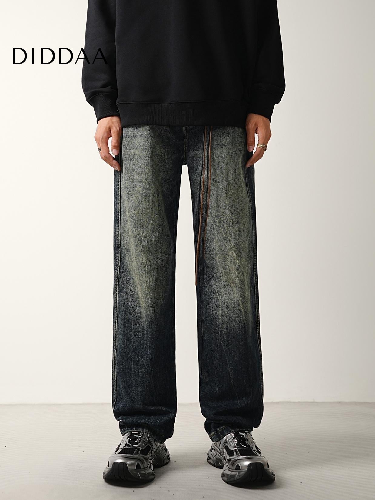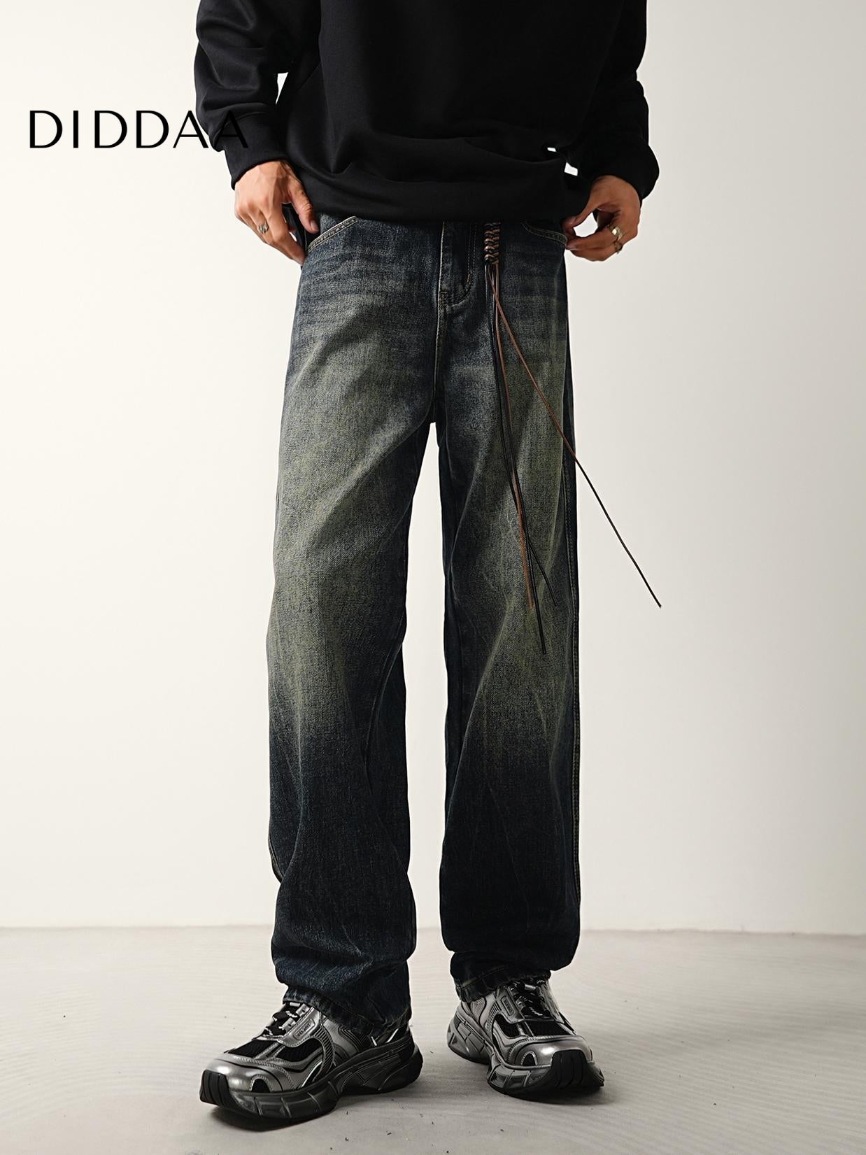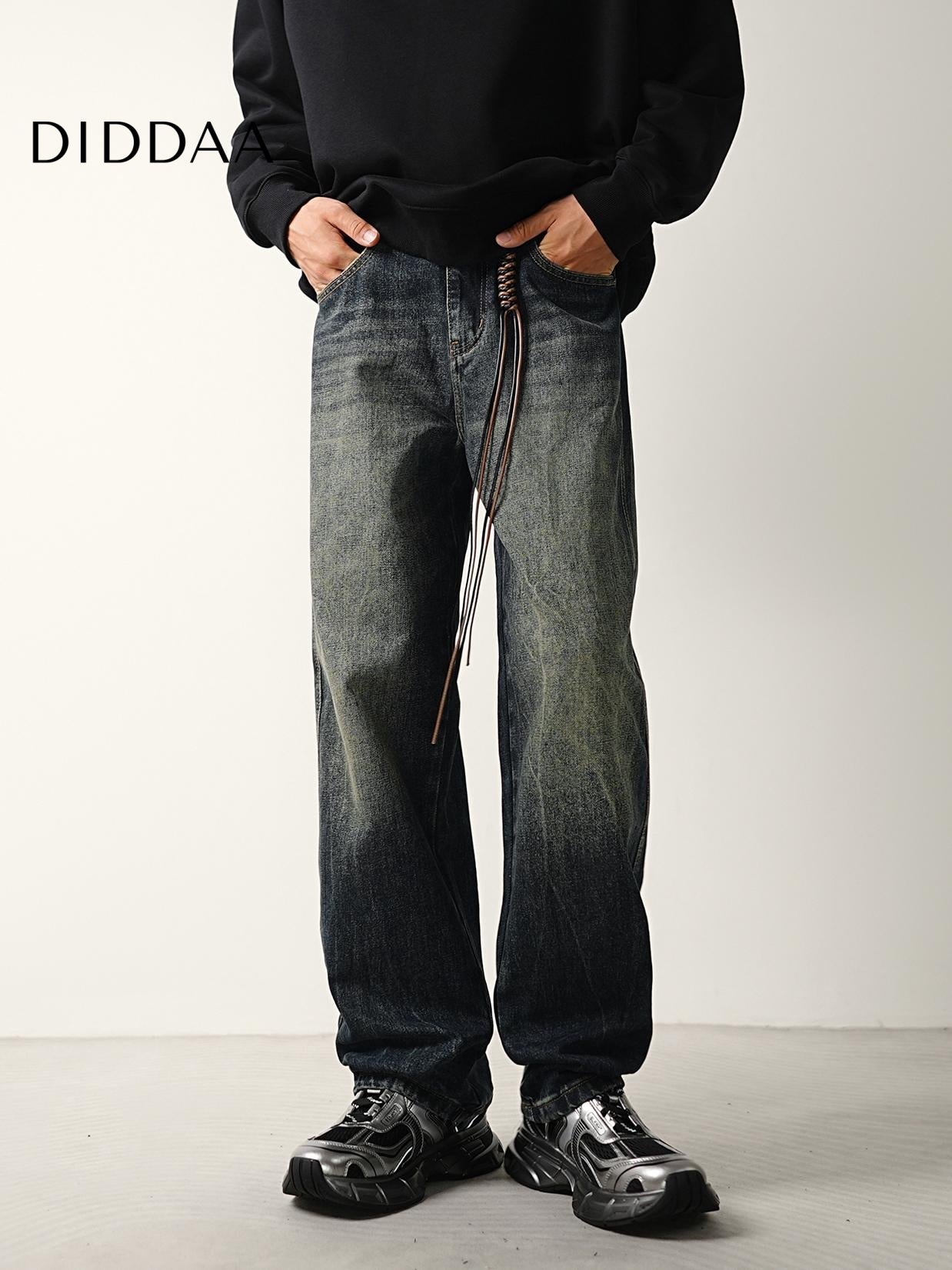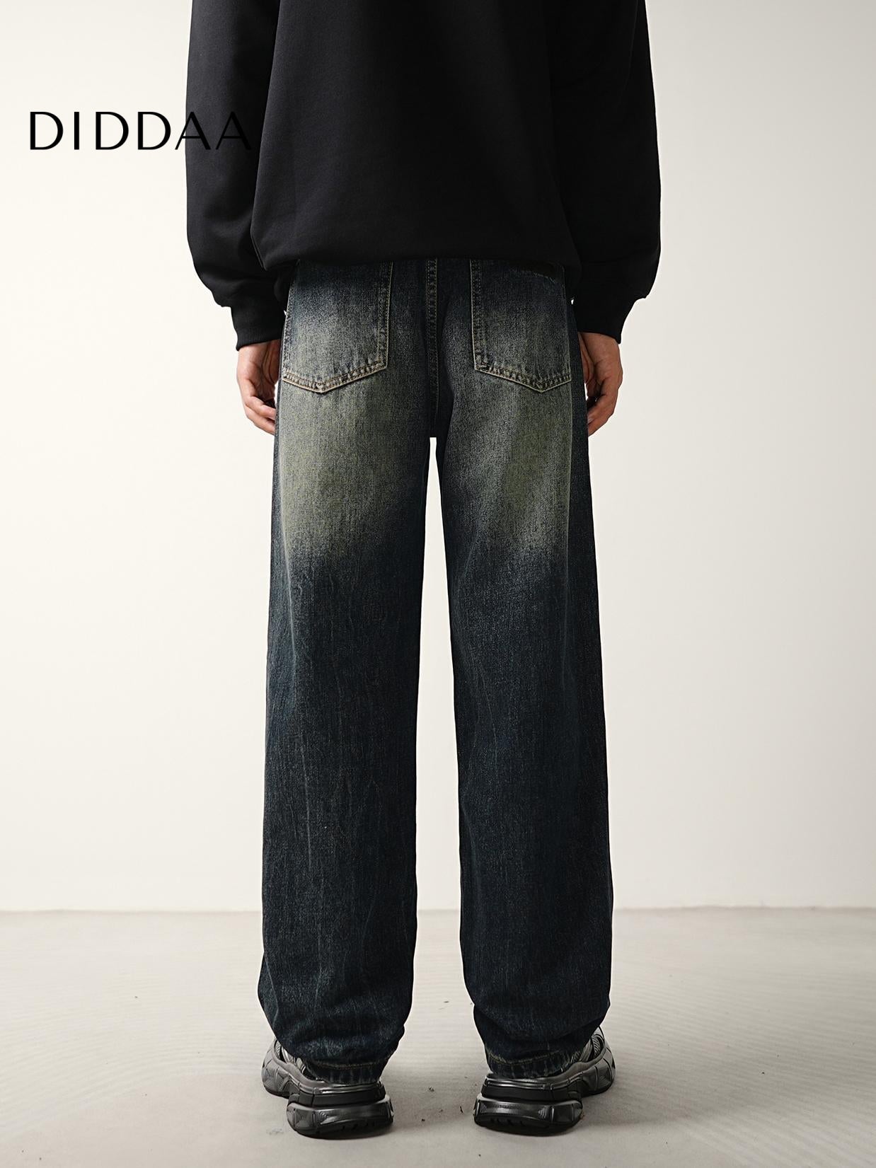 Blue Vintage Wash Distressed Loose Straight Jeans