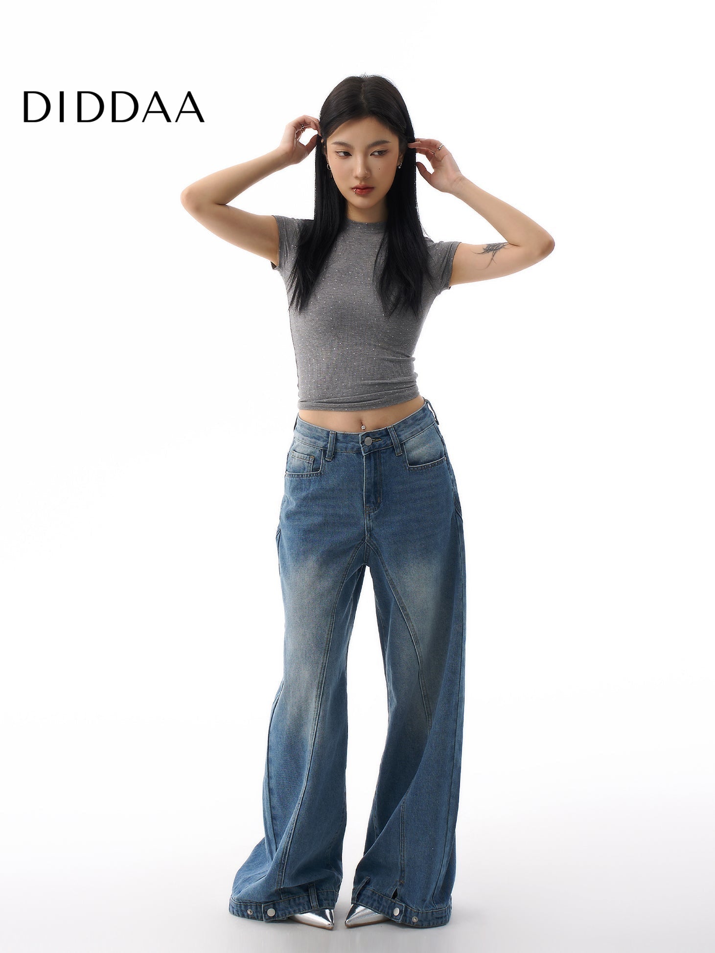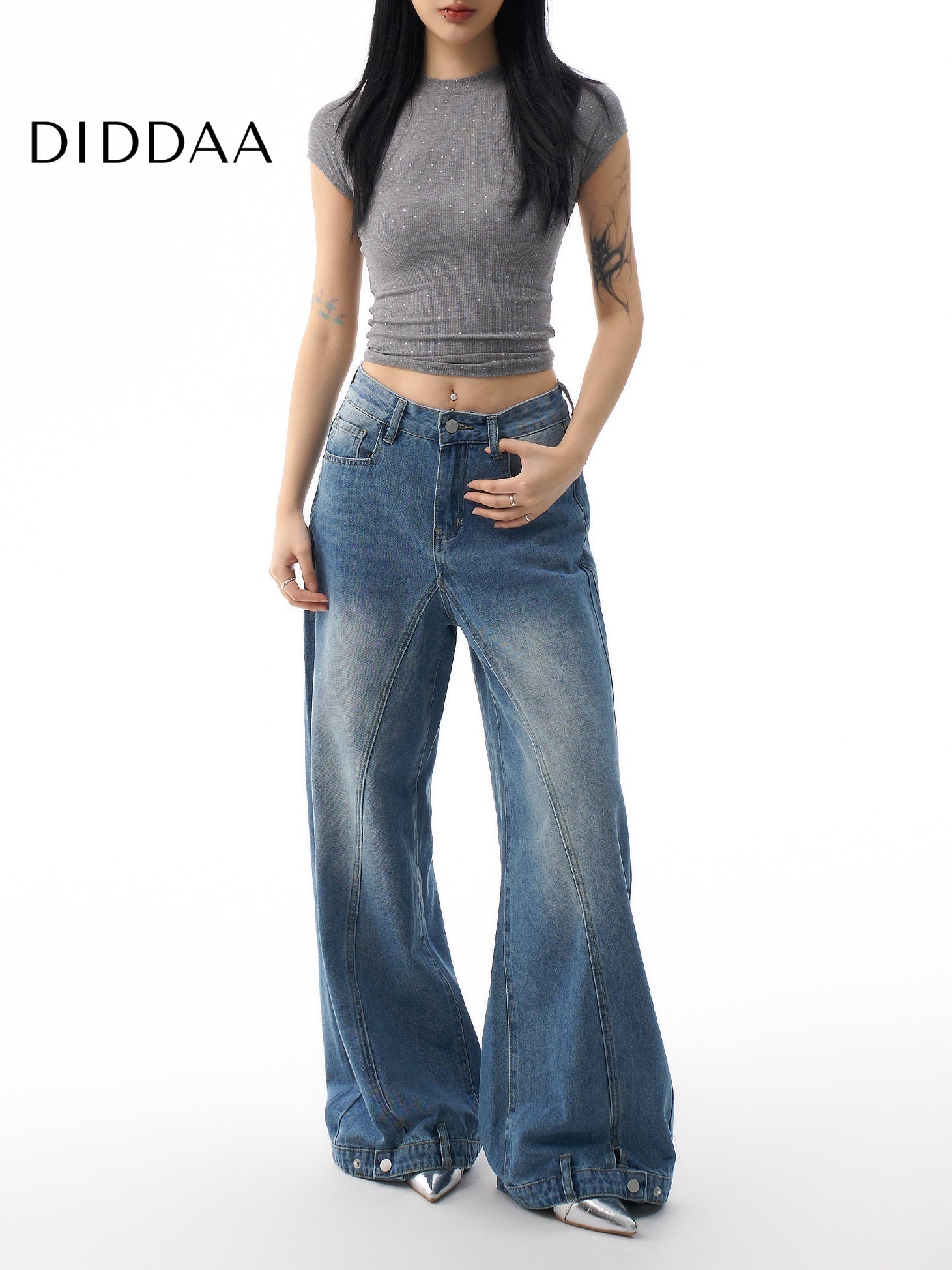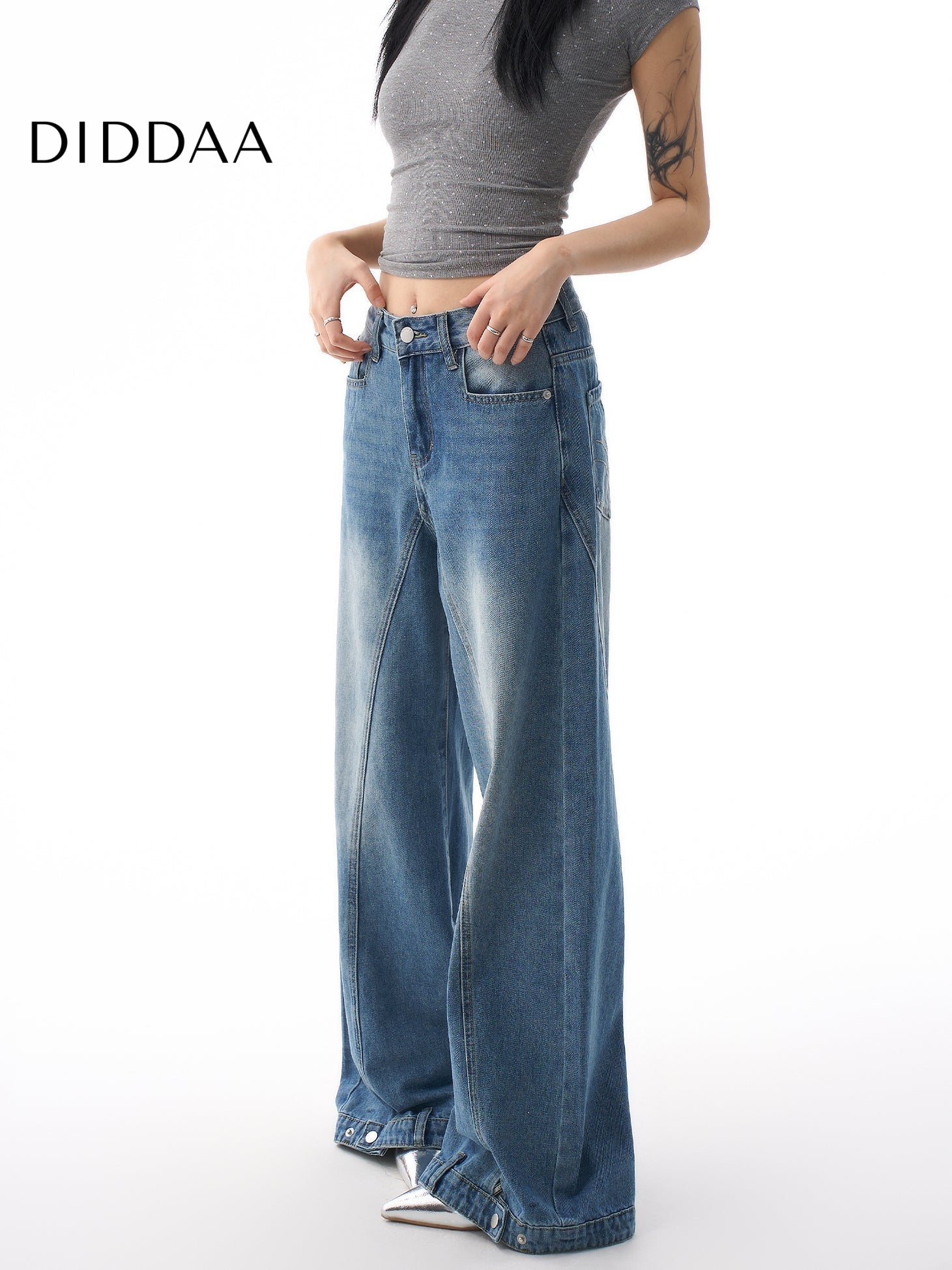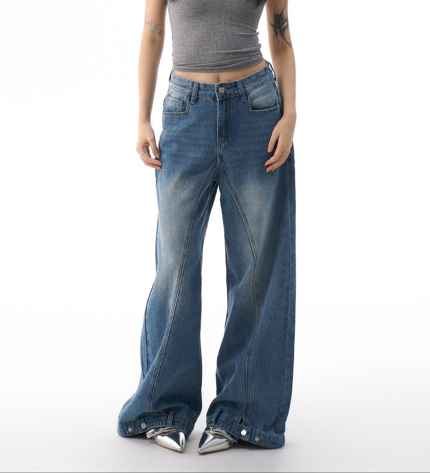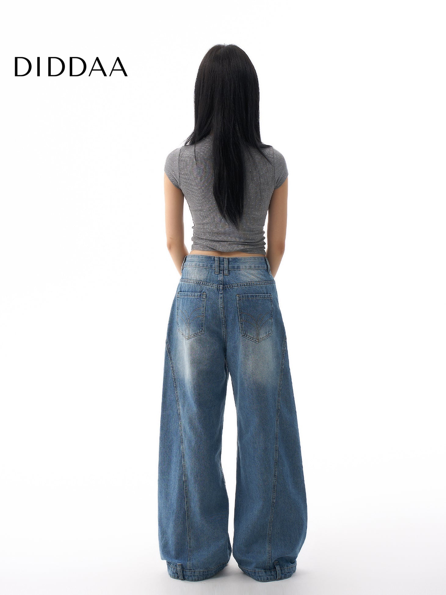 Blue Vintage Wash Loose Wide-Leg Jeans for Women