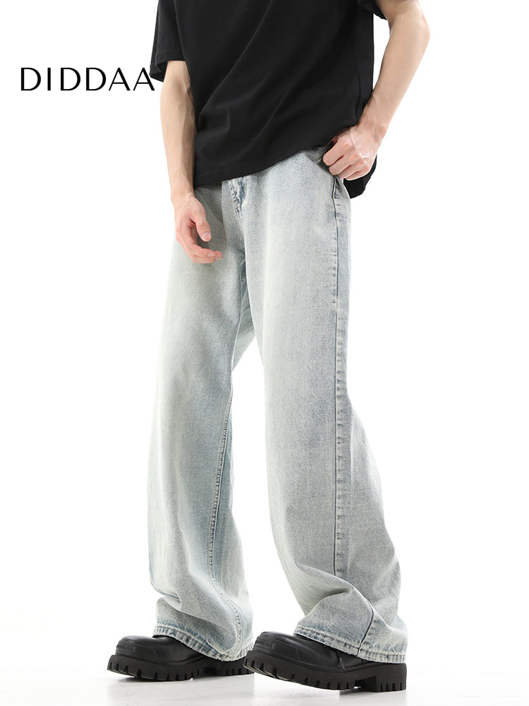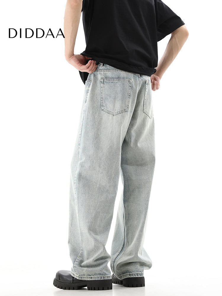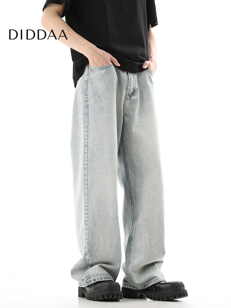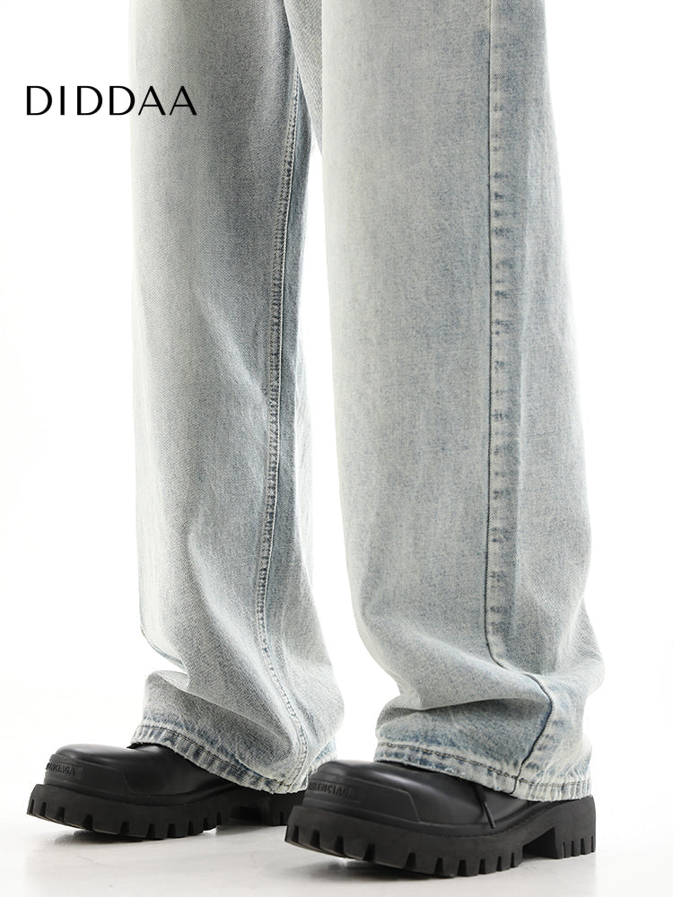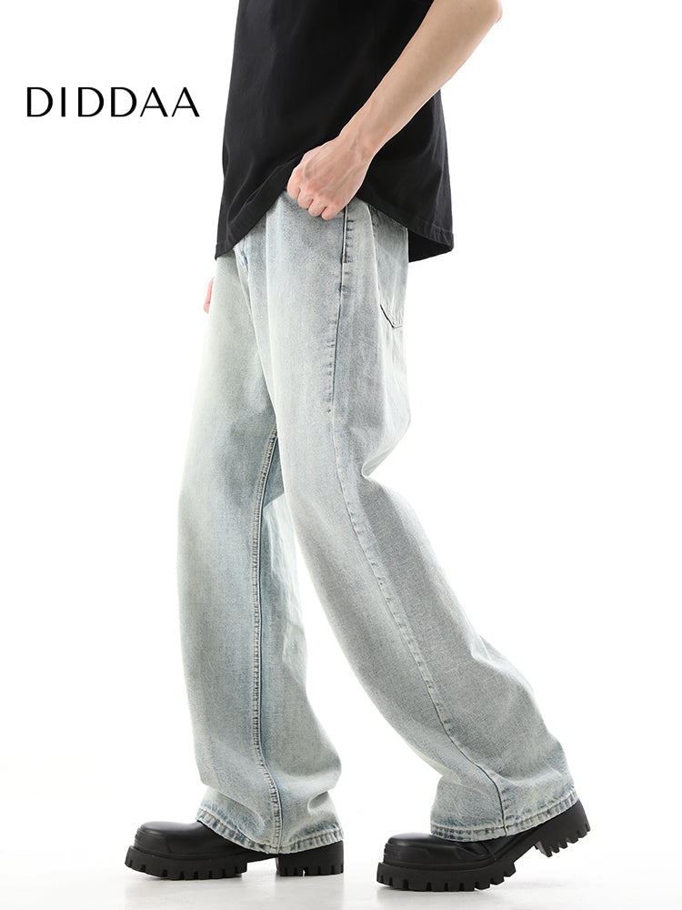Blue Vintage Washed Distressed Straight-Leg Jeans