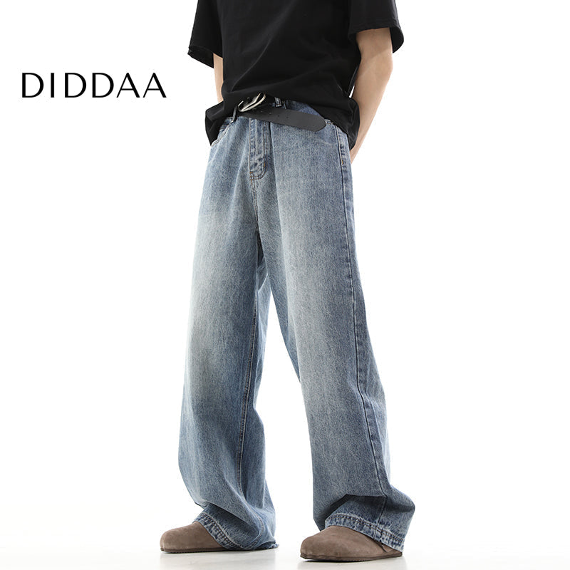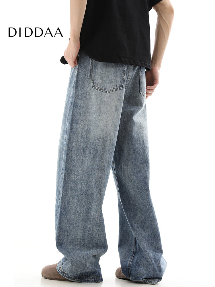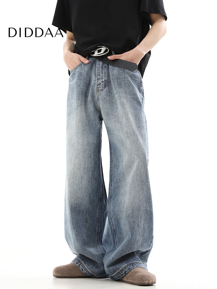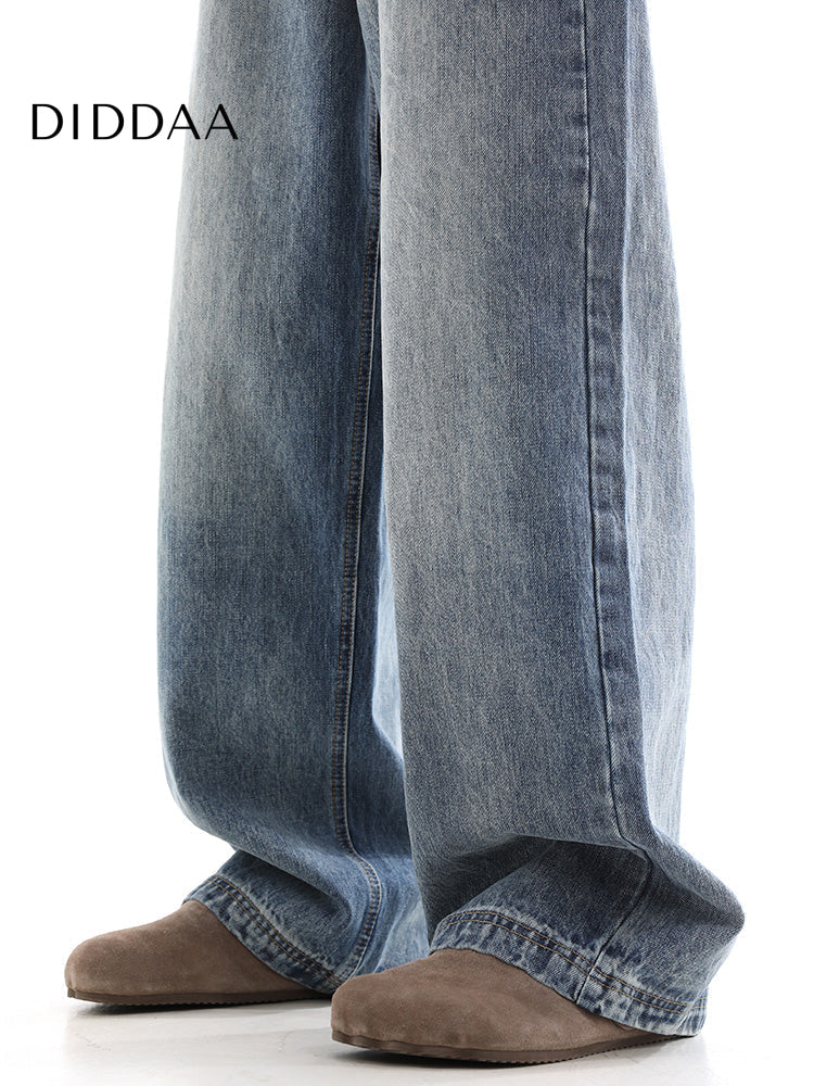 Blue Vintage Washed Distressed Wide Leg Jeans