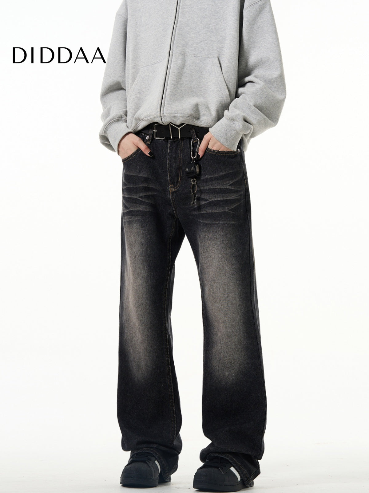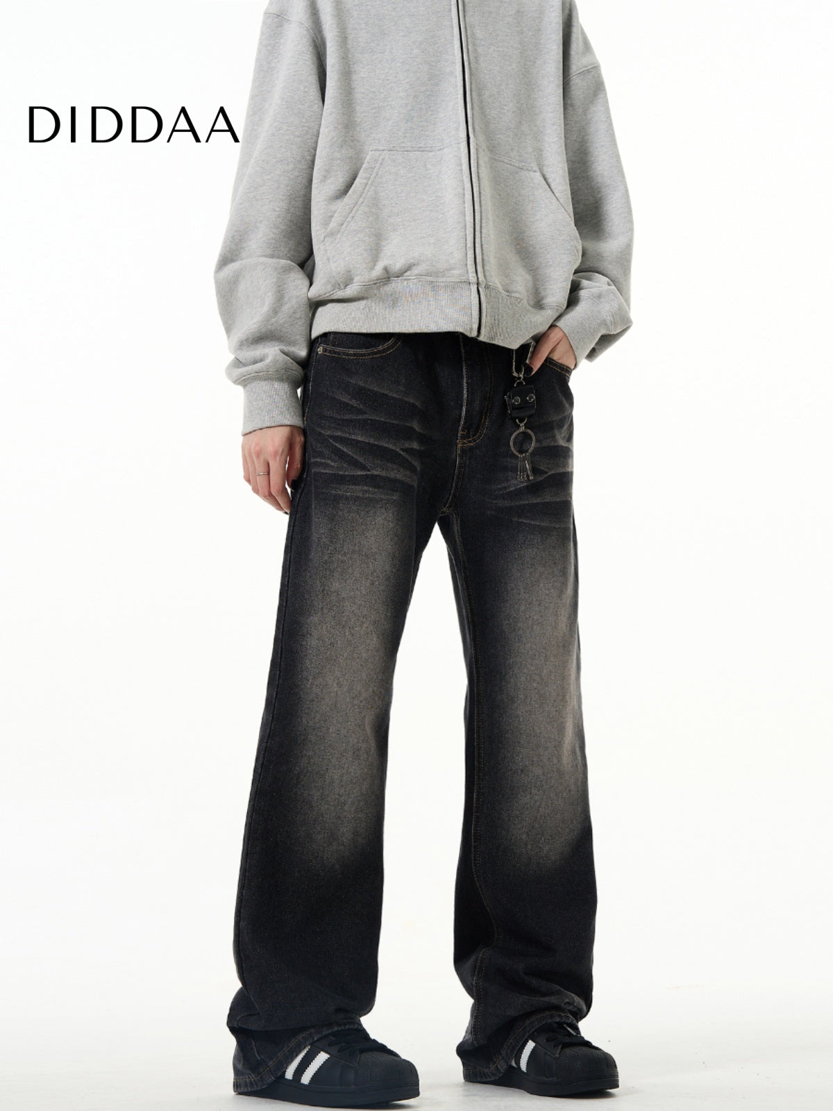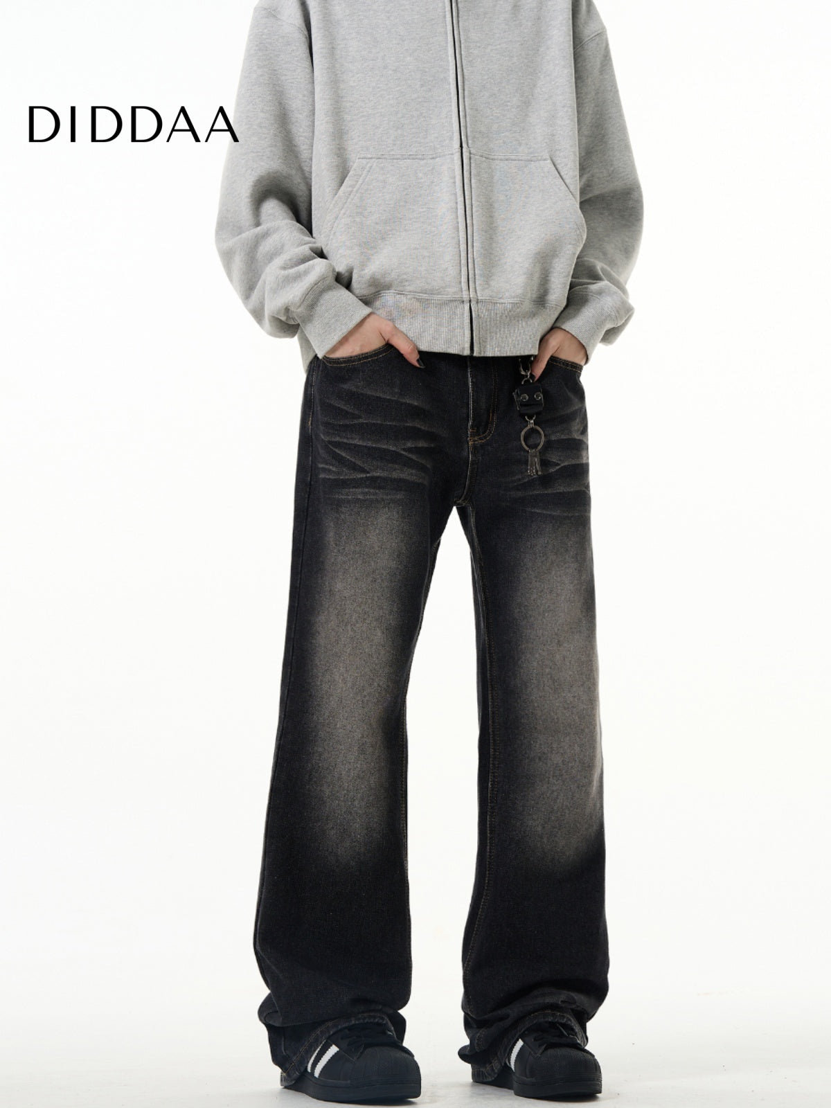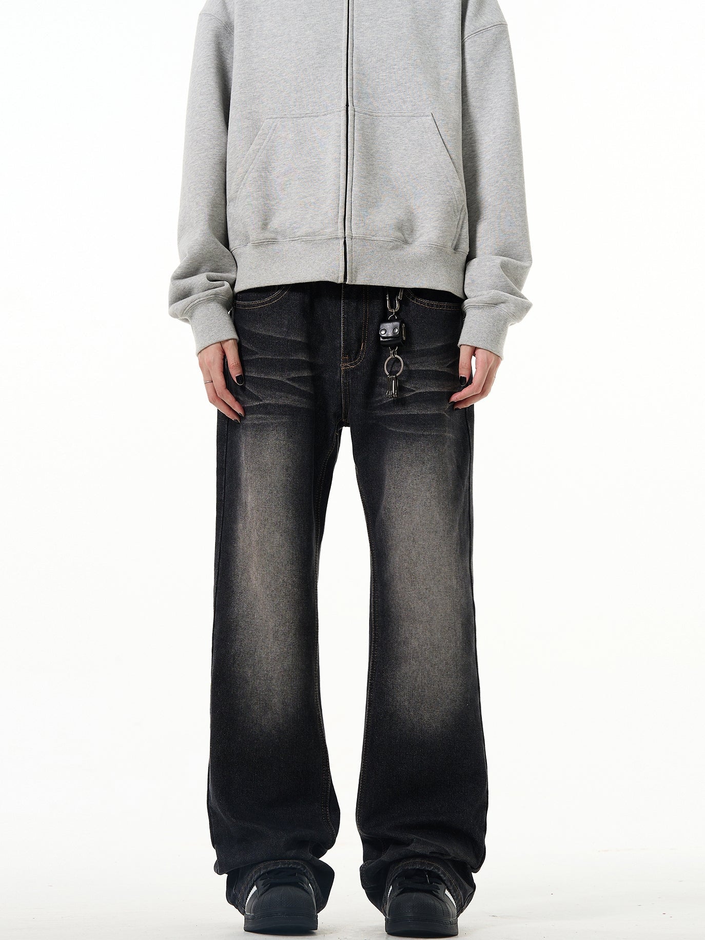 Blue Washed Bootcut Jeans Men's Casual Straight Pants