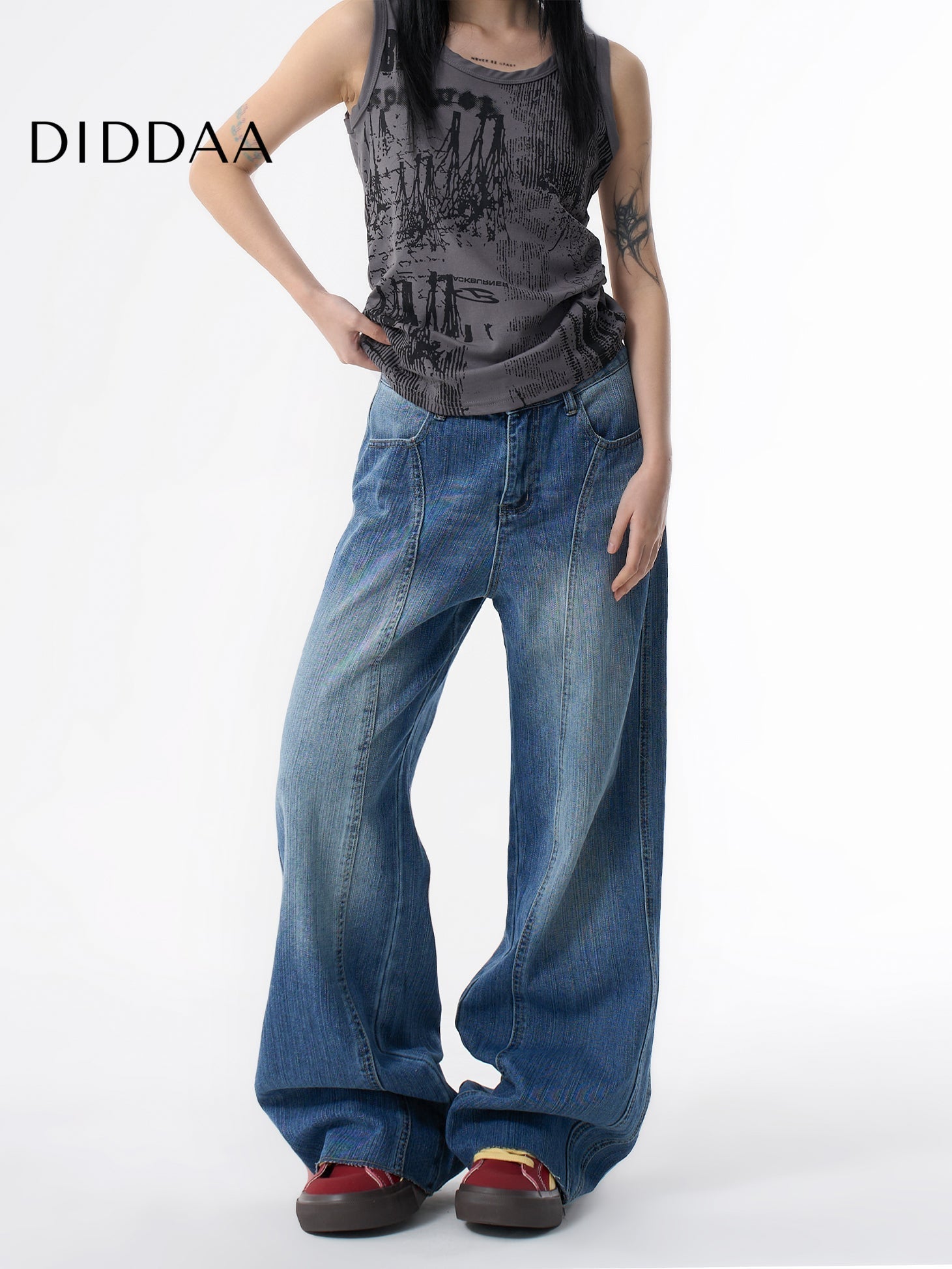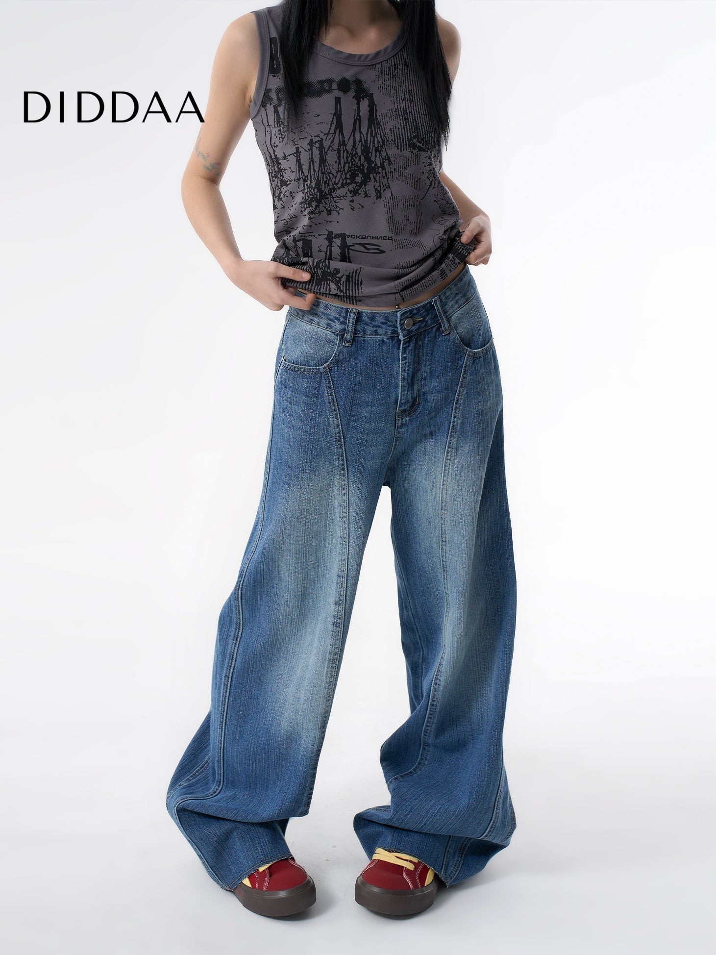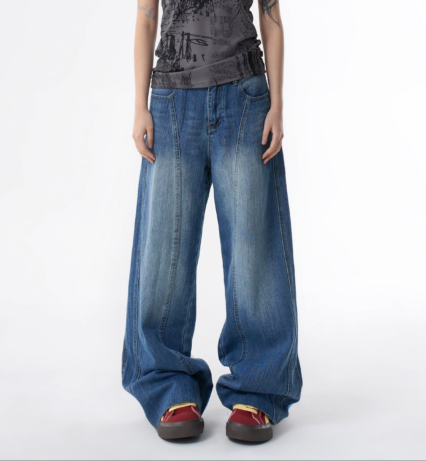 Blue Washed Deconstructed Wide-Leg Banana Pants