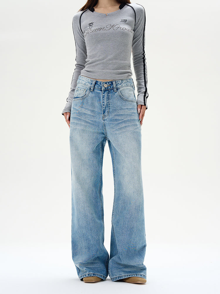 Blue Whiskered Straight-Leg Jeans for Handsome Couples