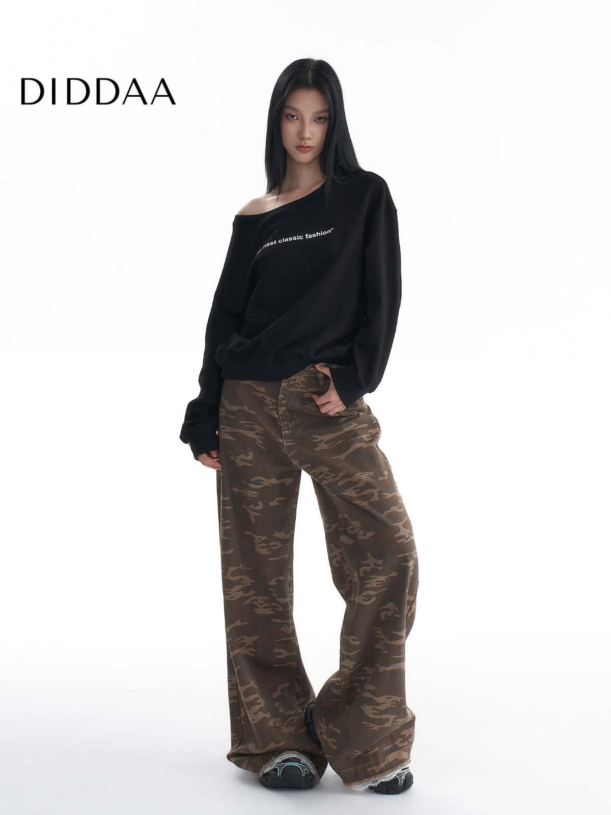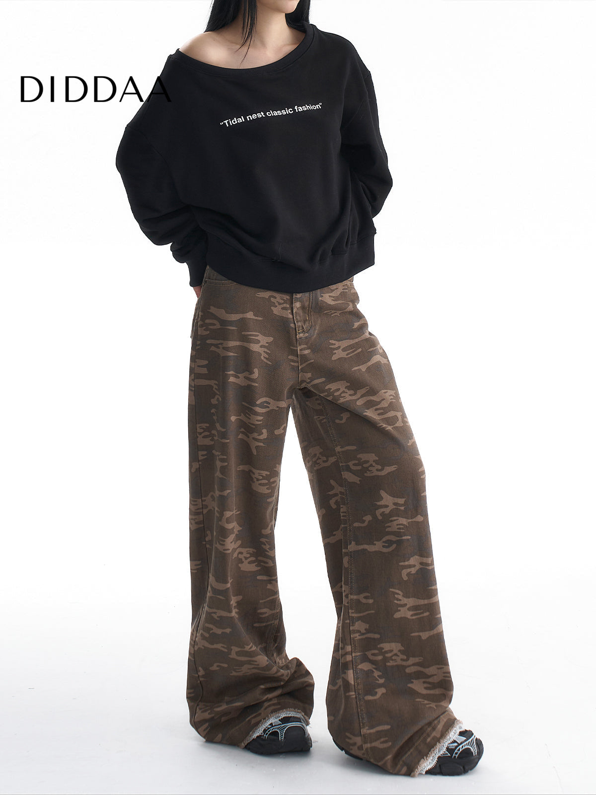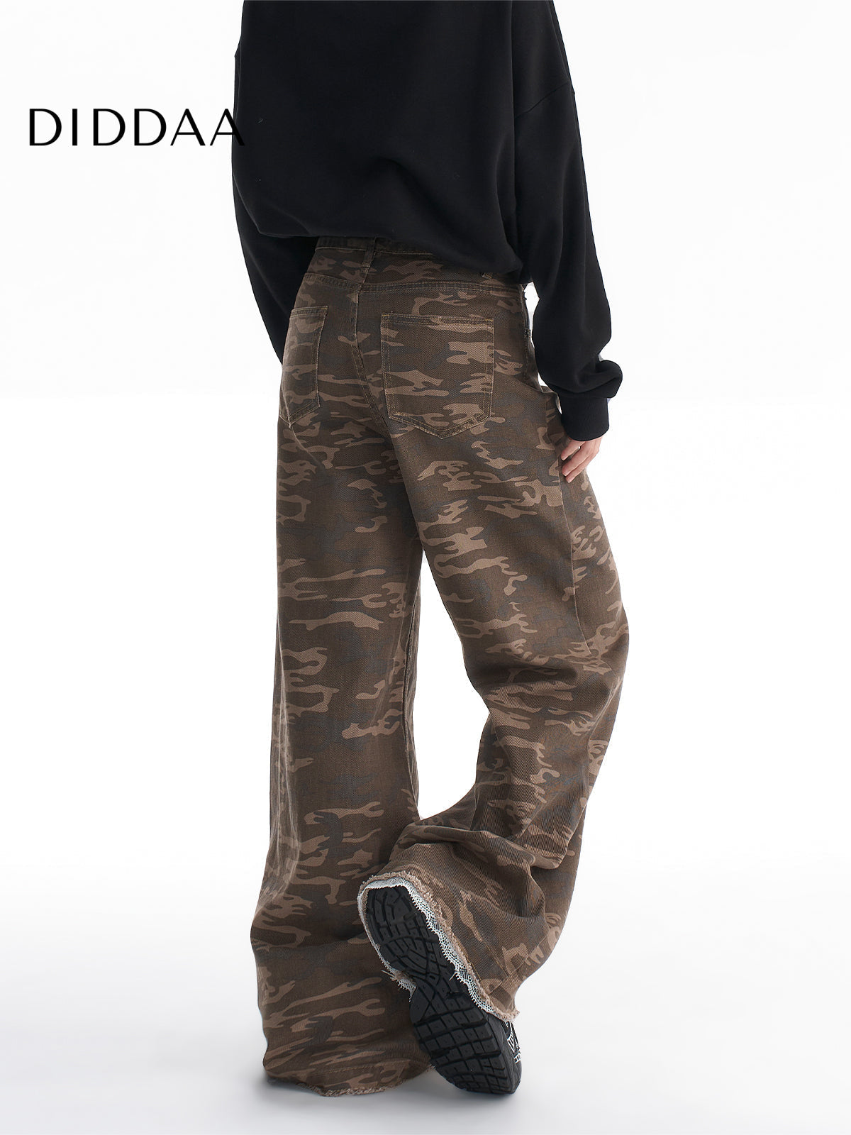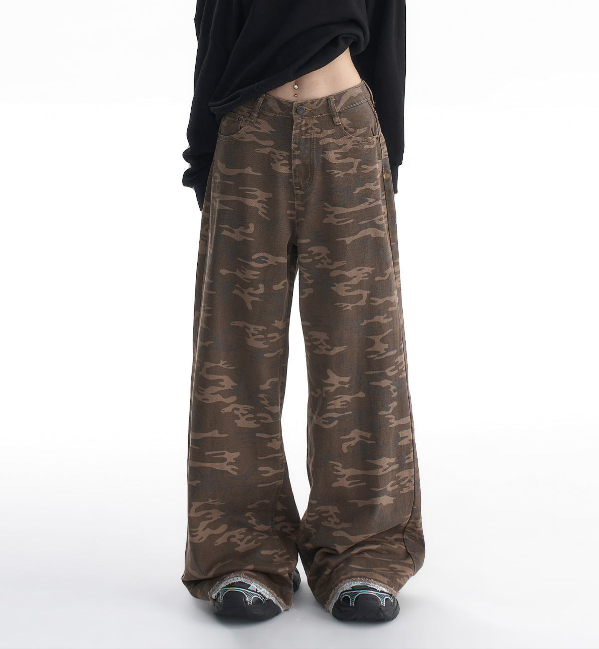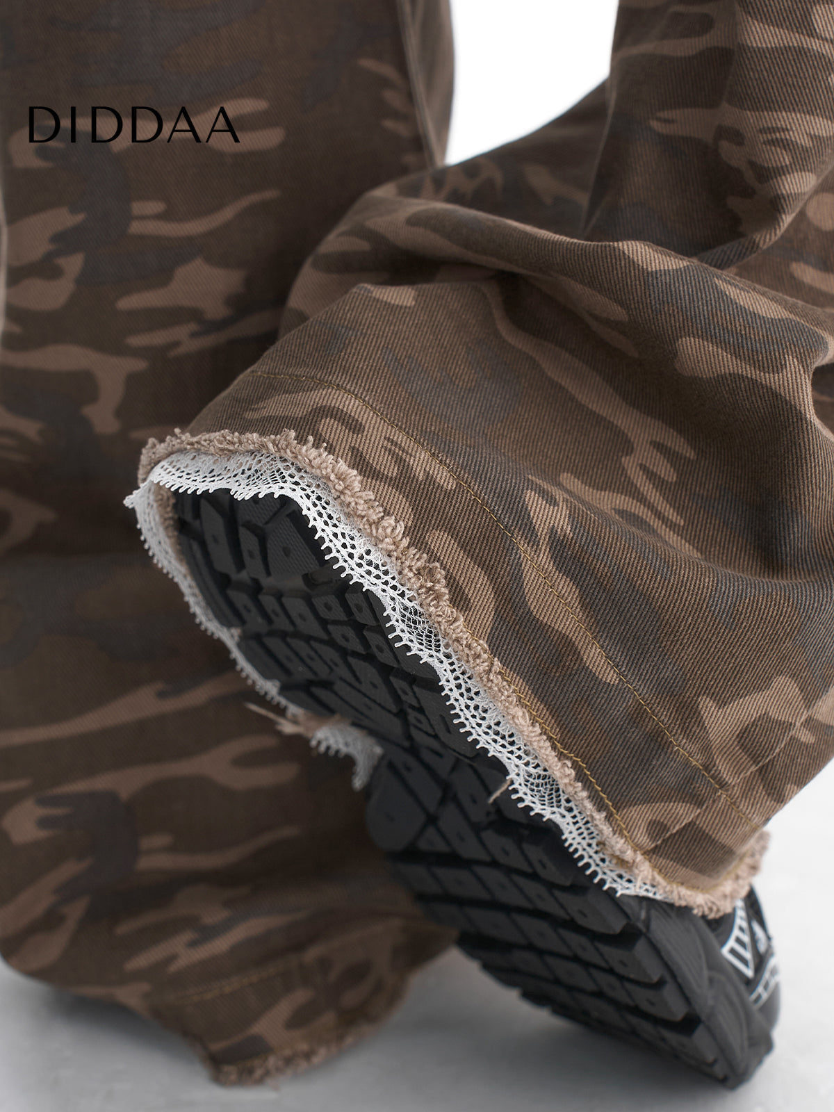 Camo Lace Side Straight Wide-Leg Jeans for Women