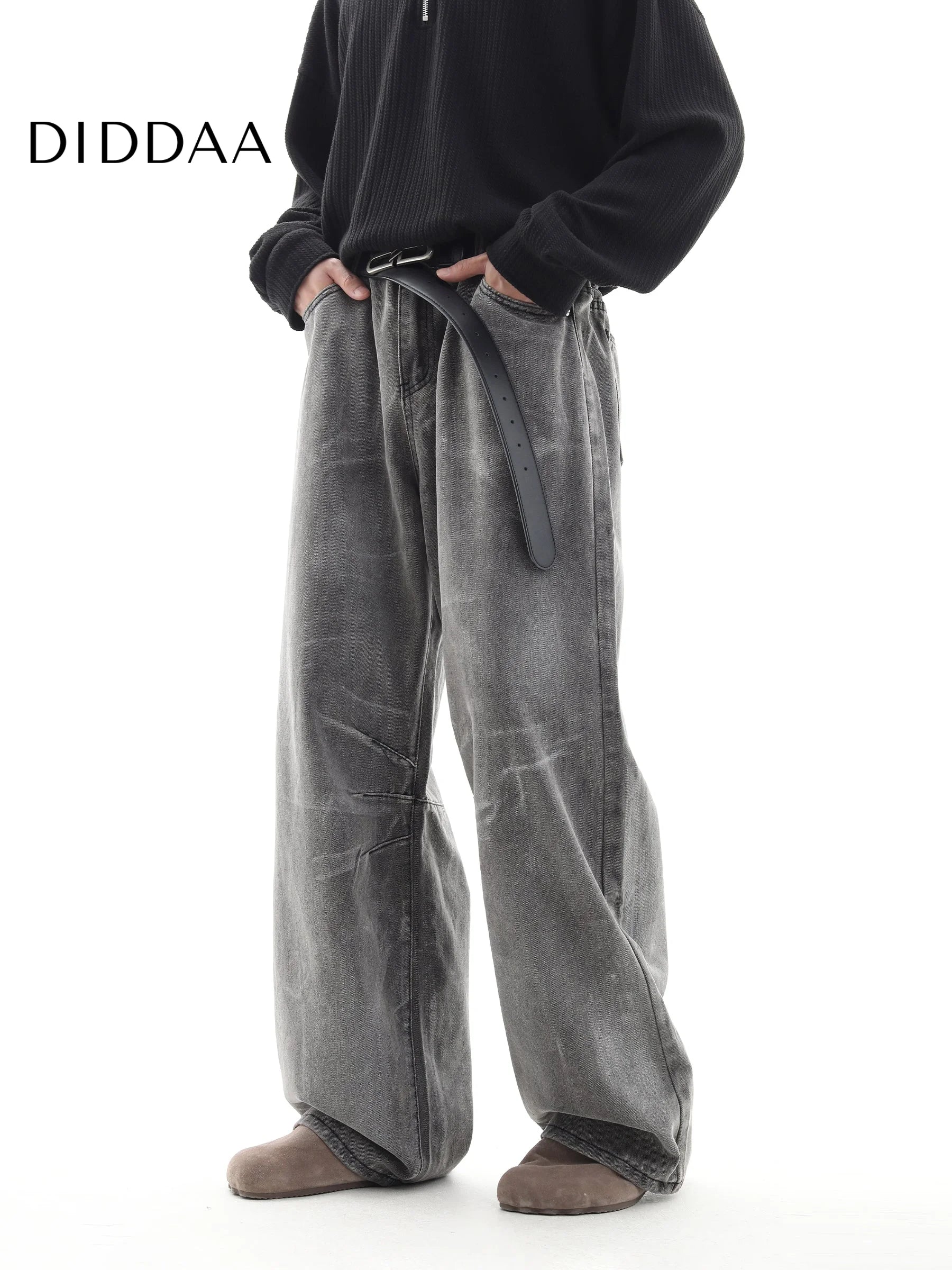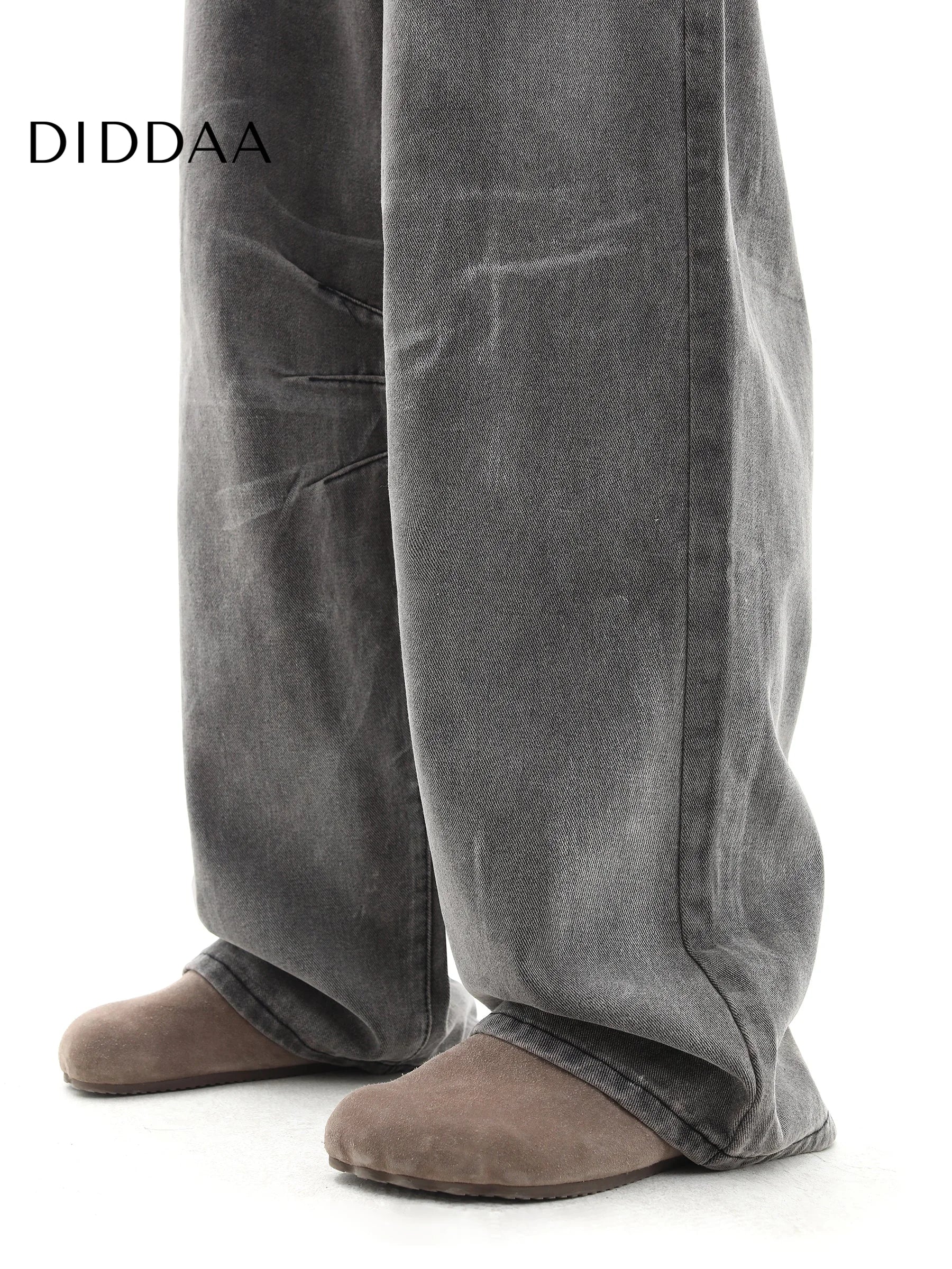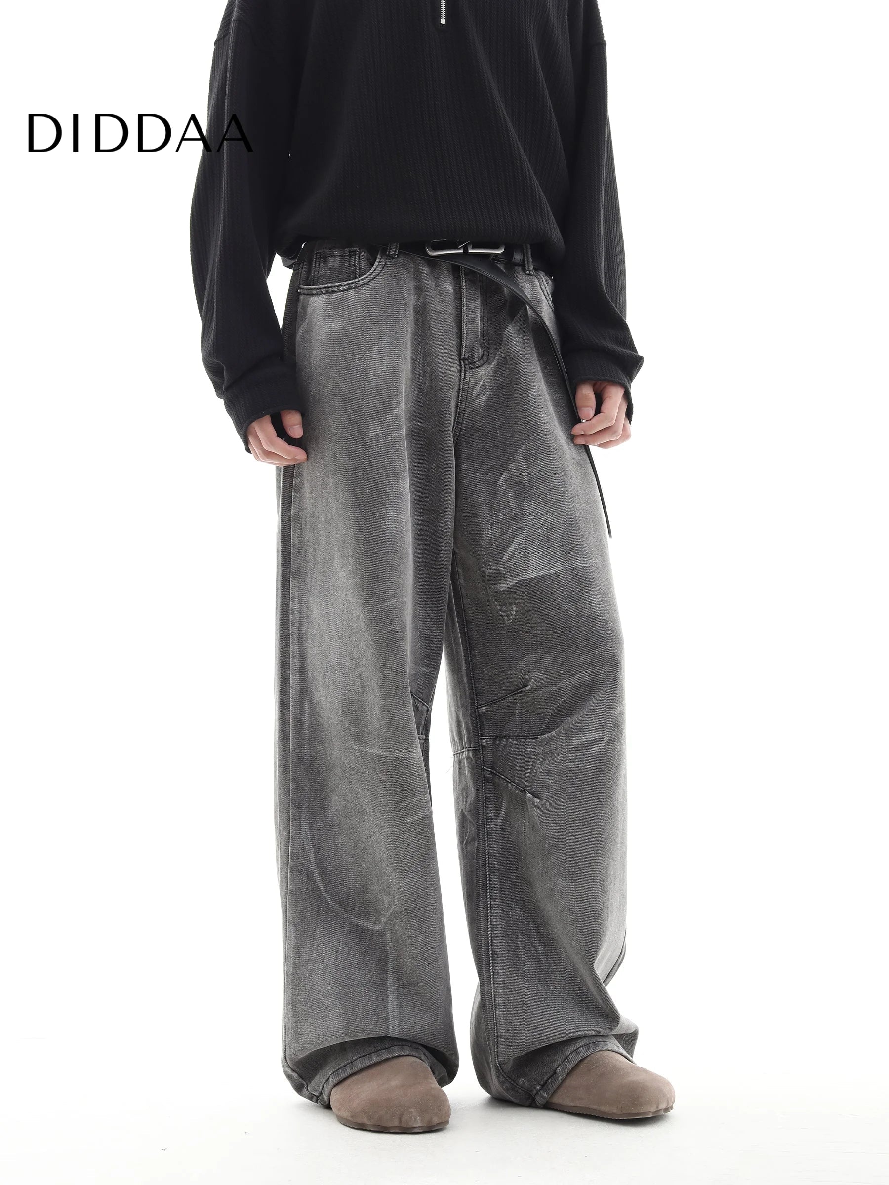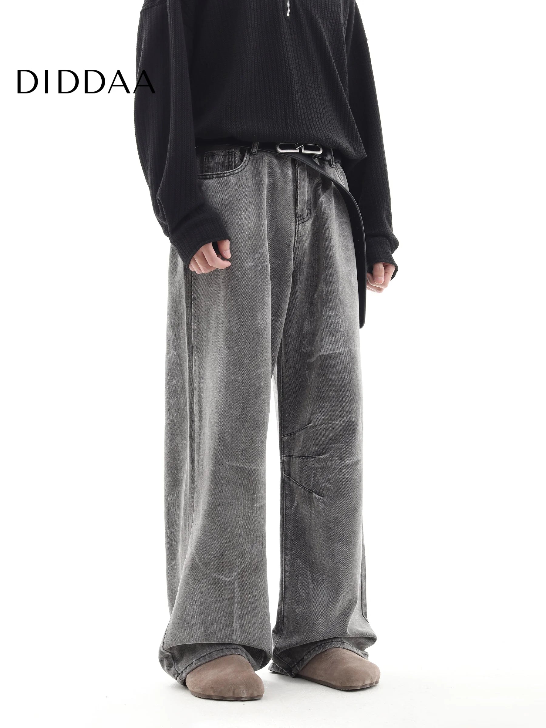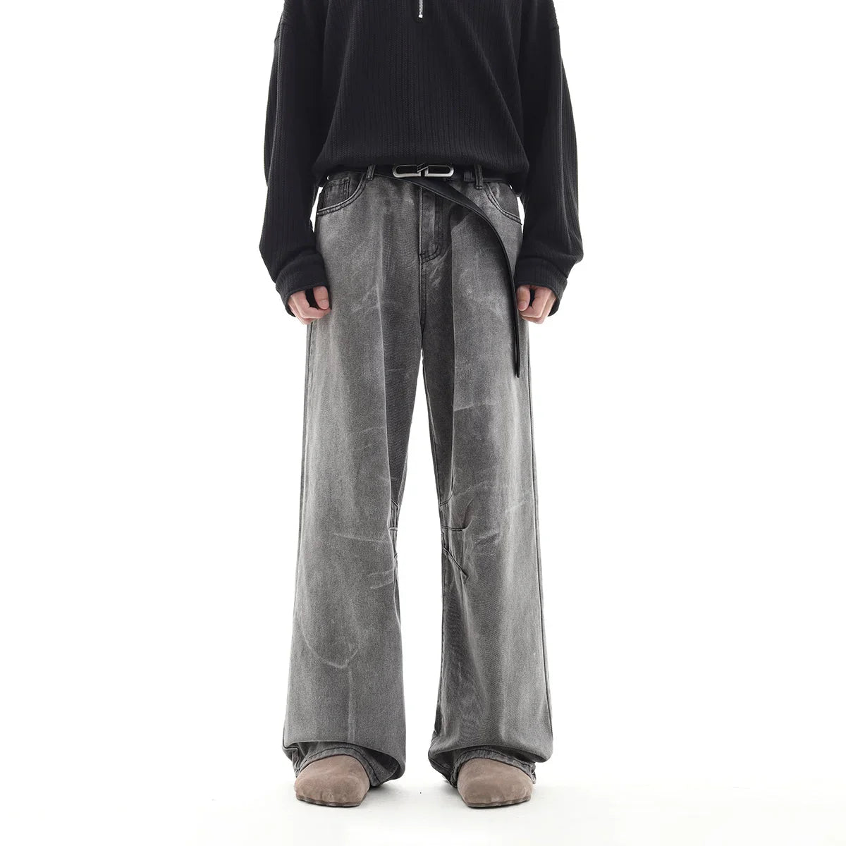 Cement Grey Deconstructed Loose Wide Leg Jeans