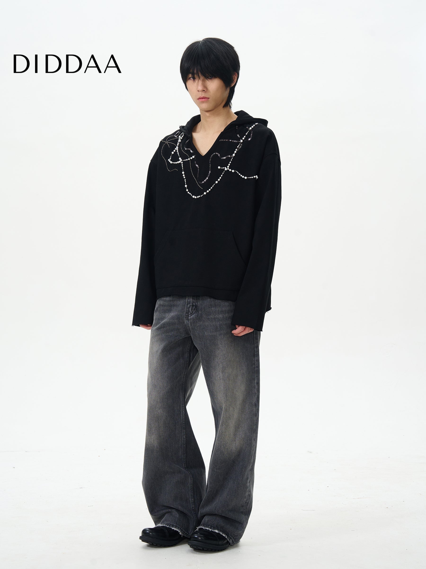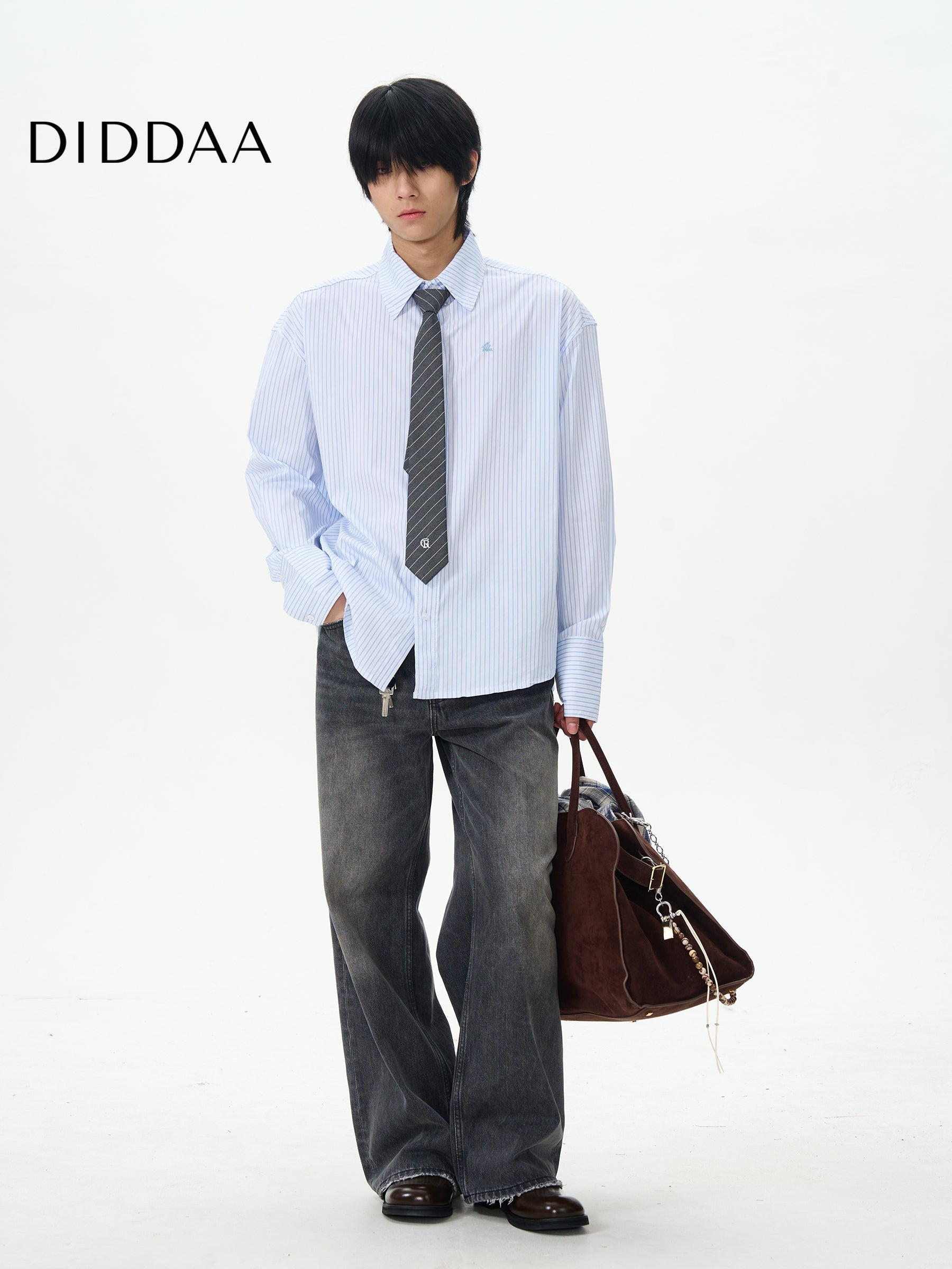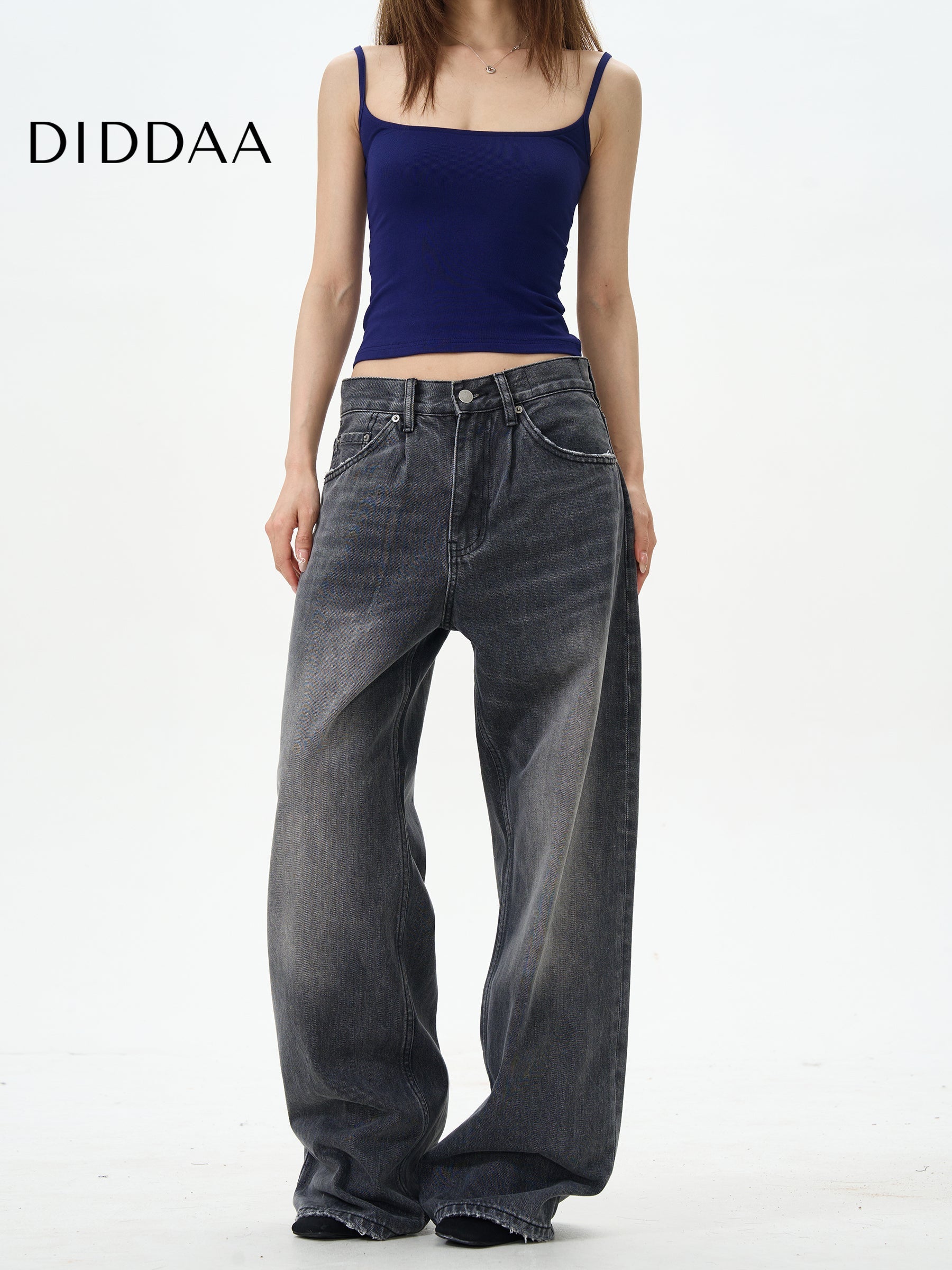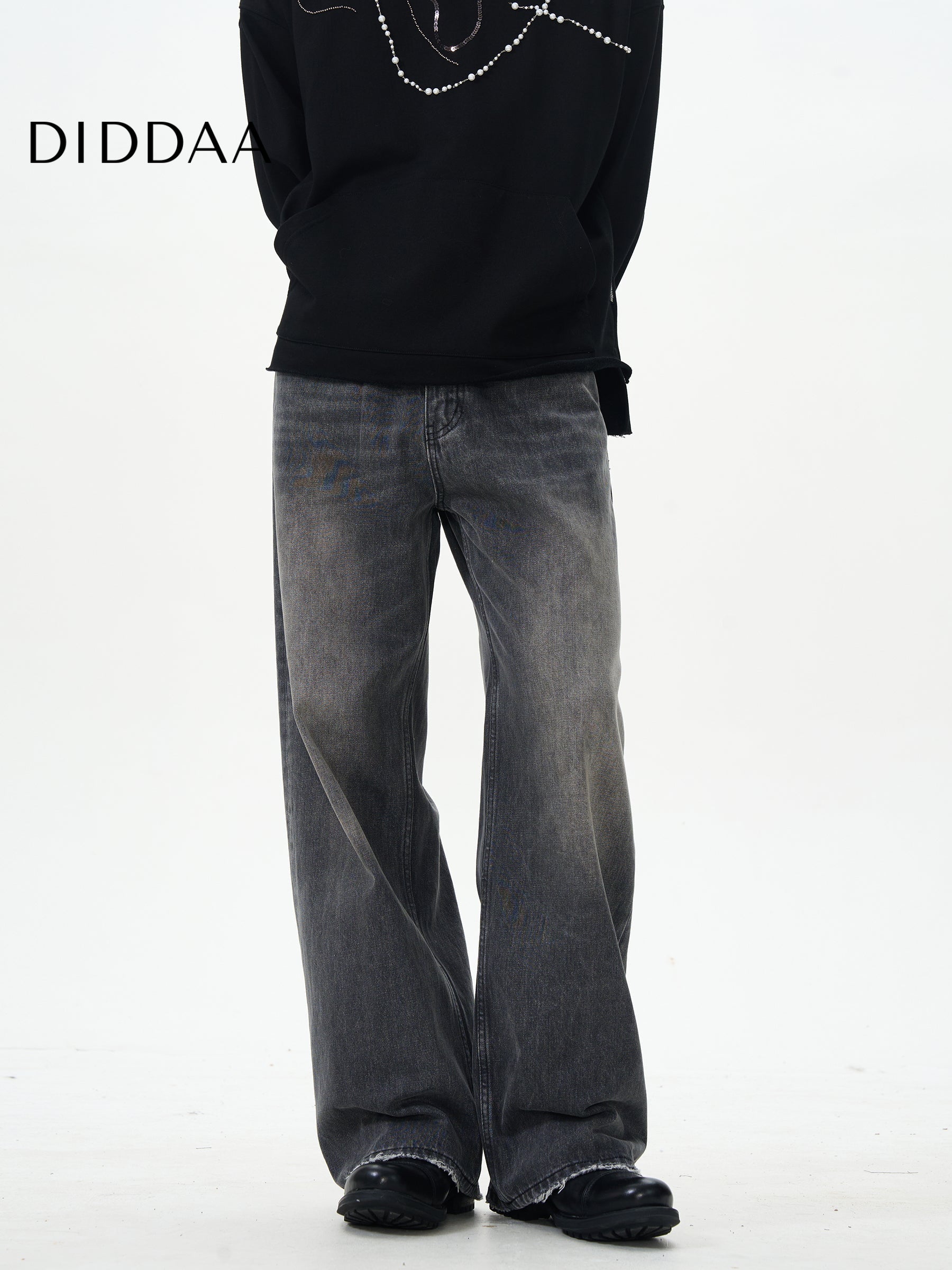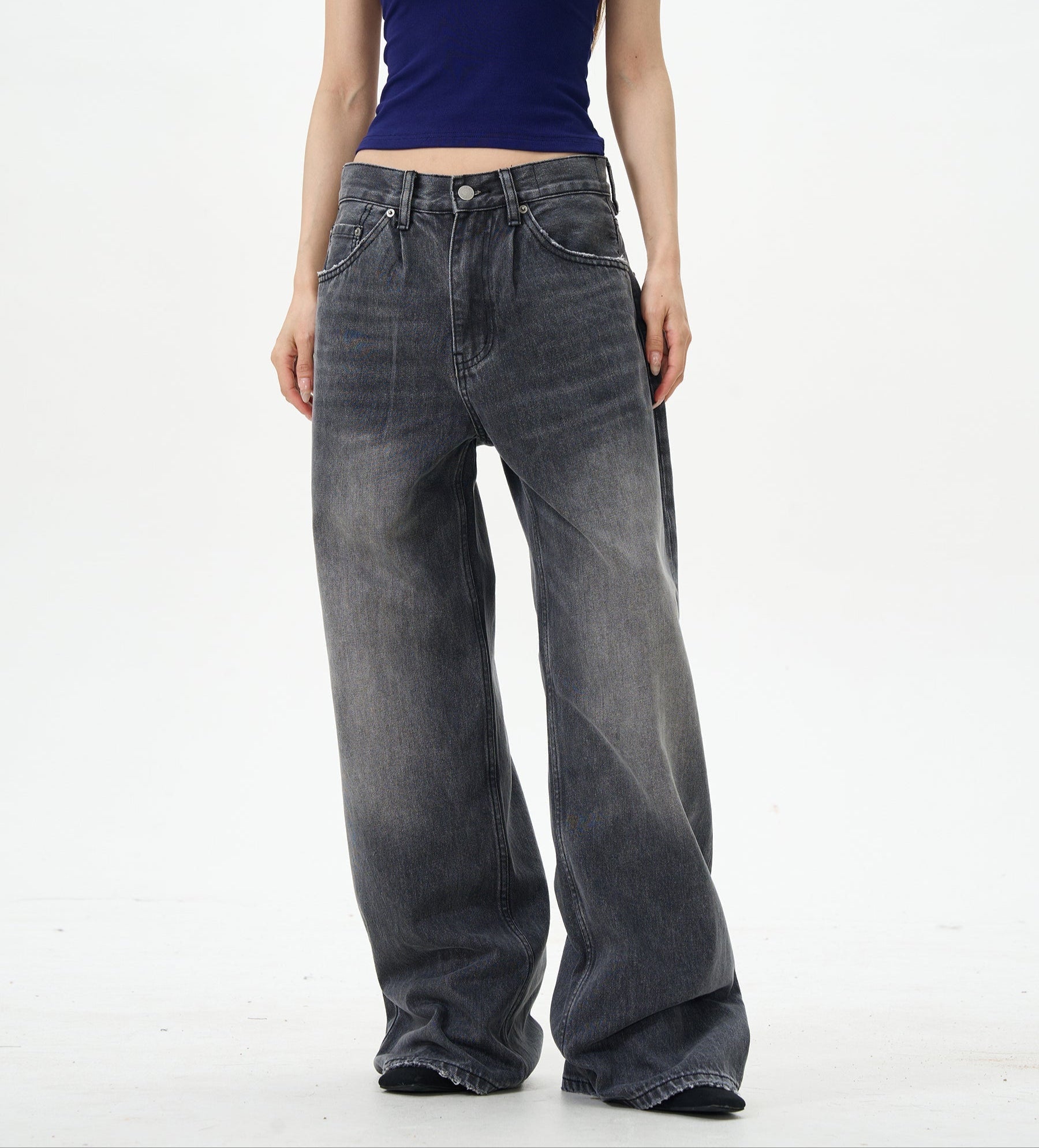 Dark Blue Loose Design Straight-Leg Mop Pants