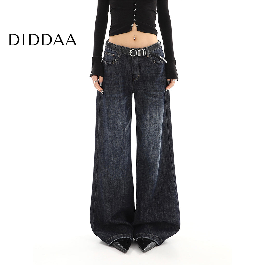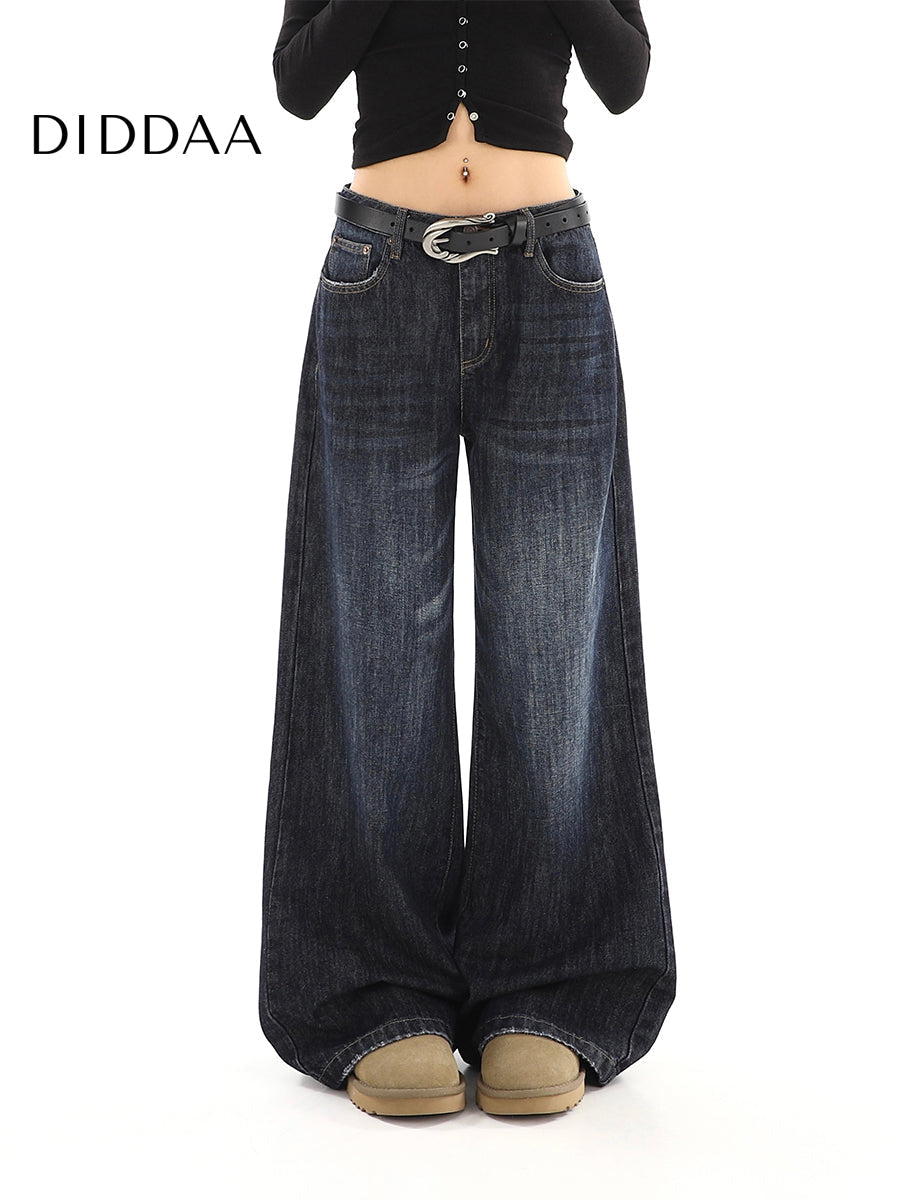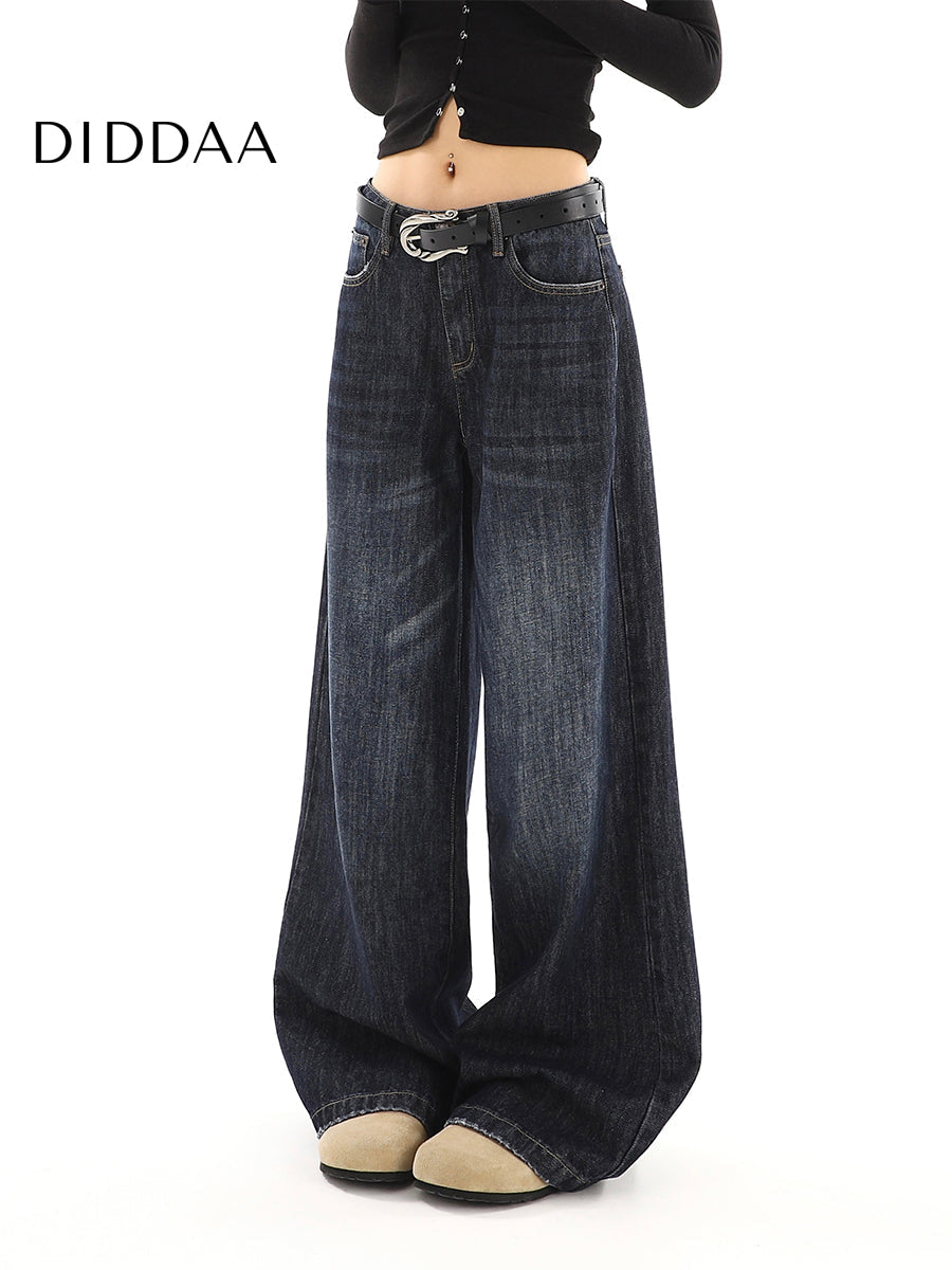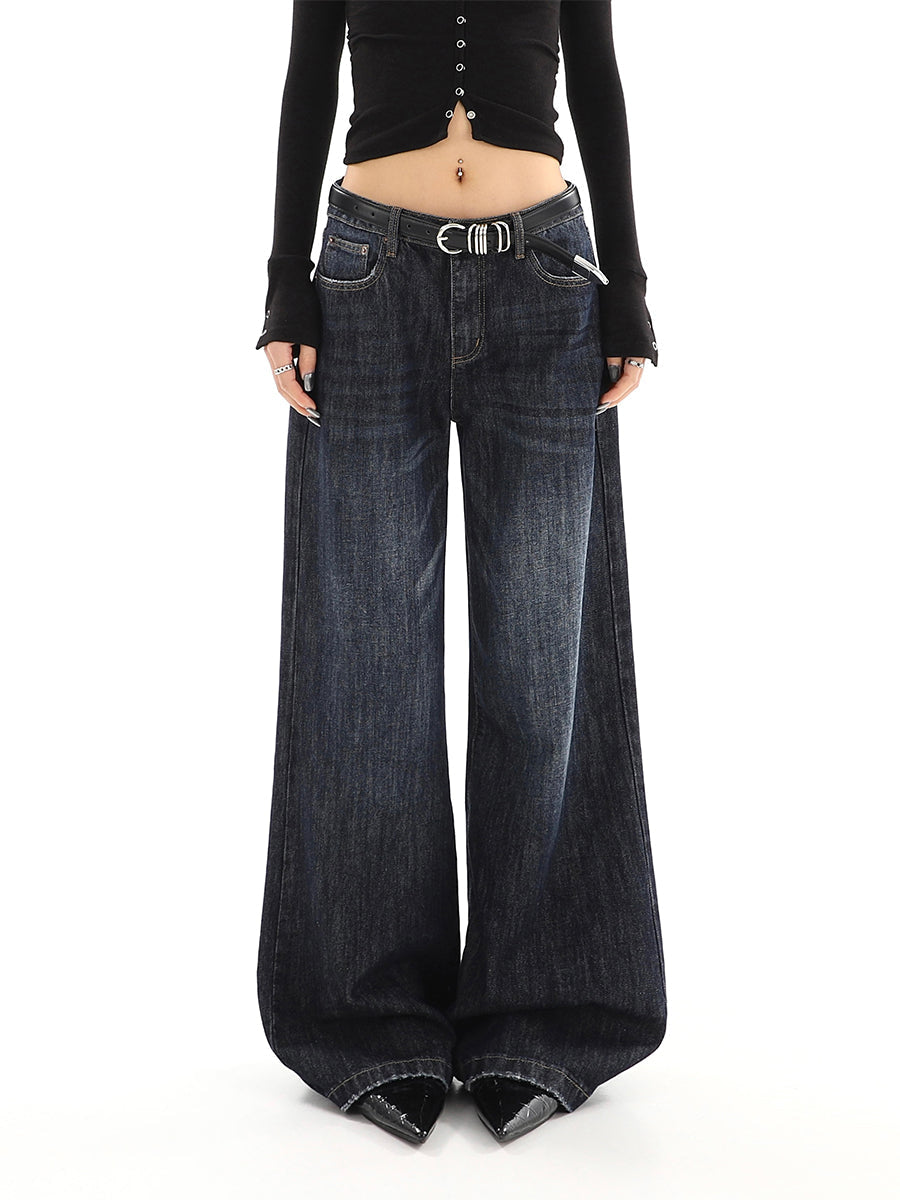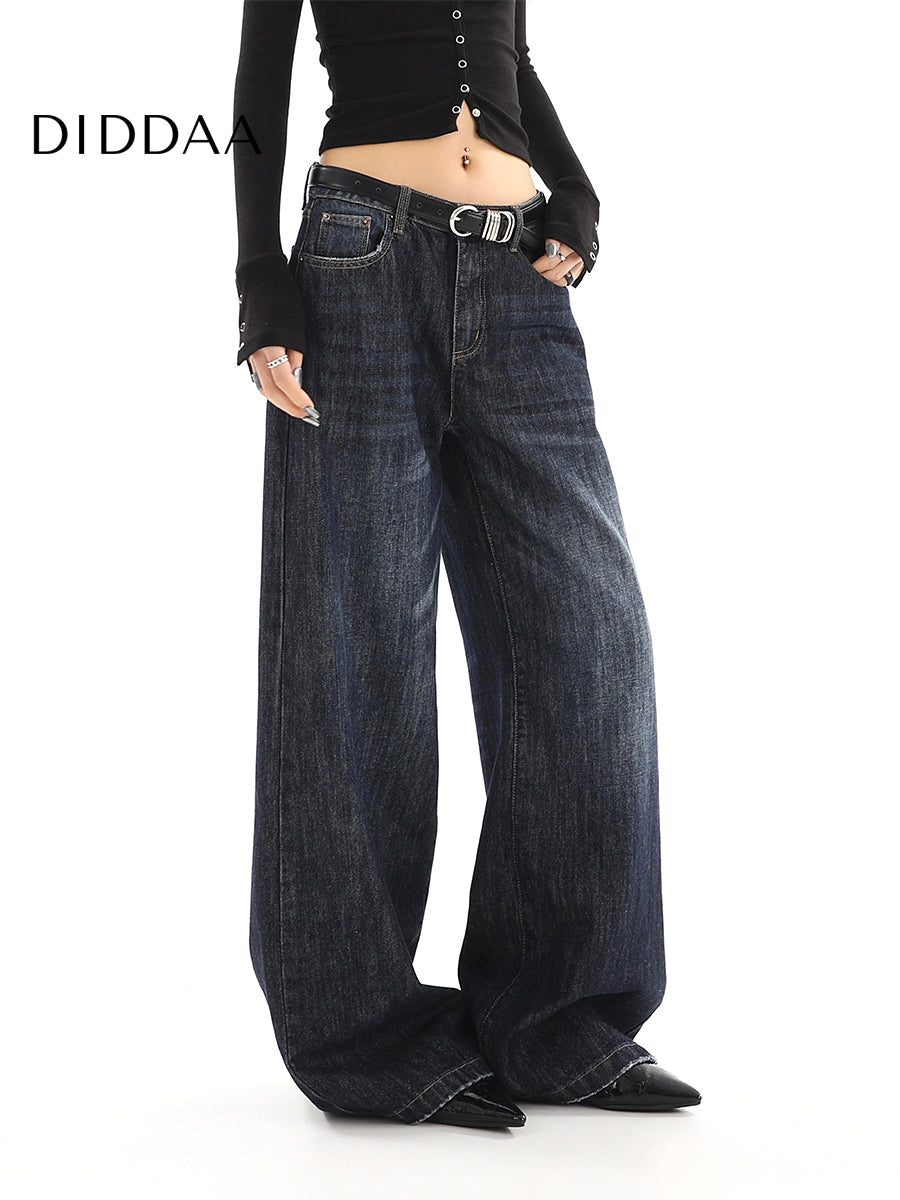 Dark Blue Loose Drape Wide-Leg Jeans for Women