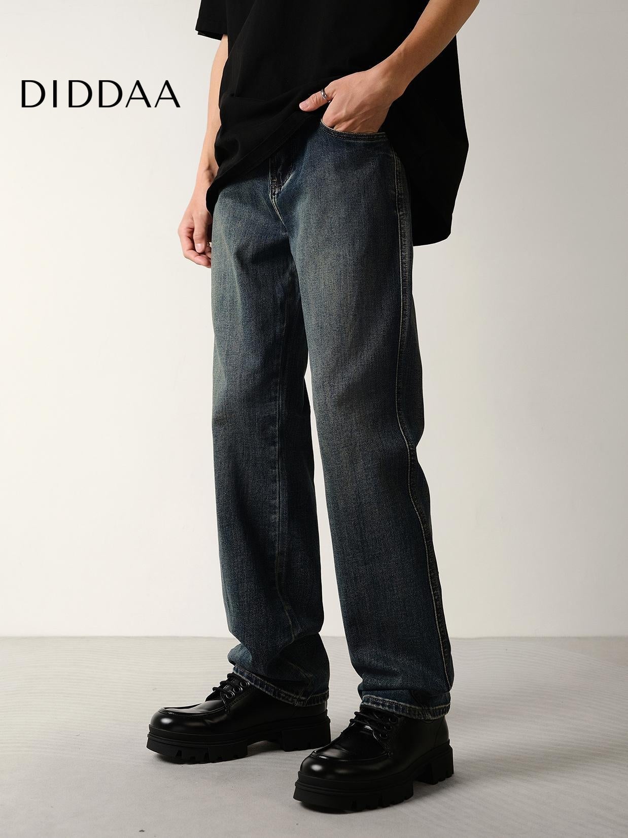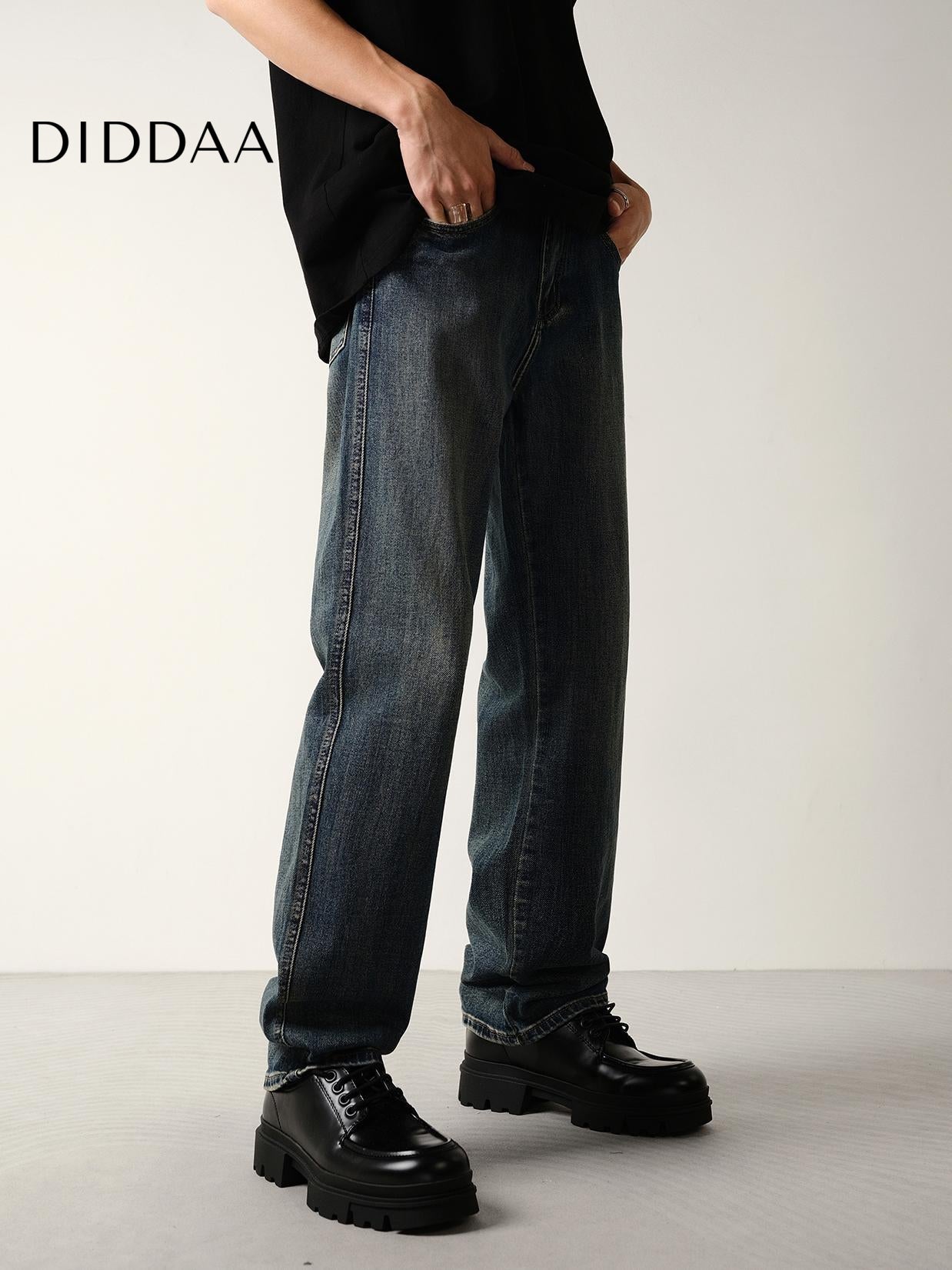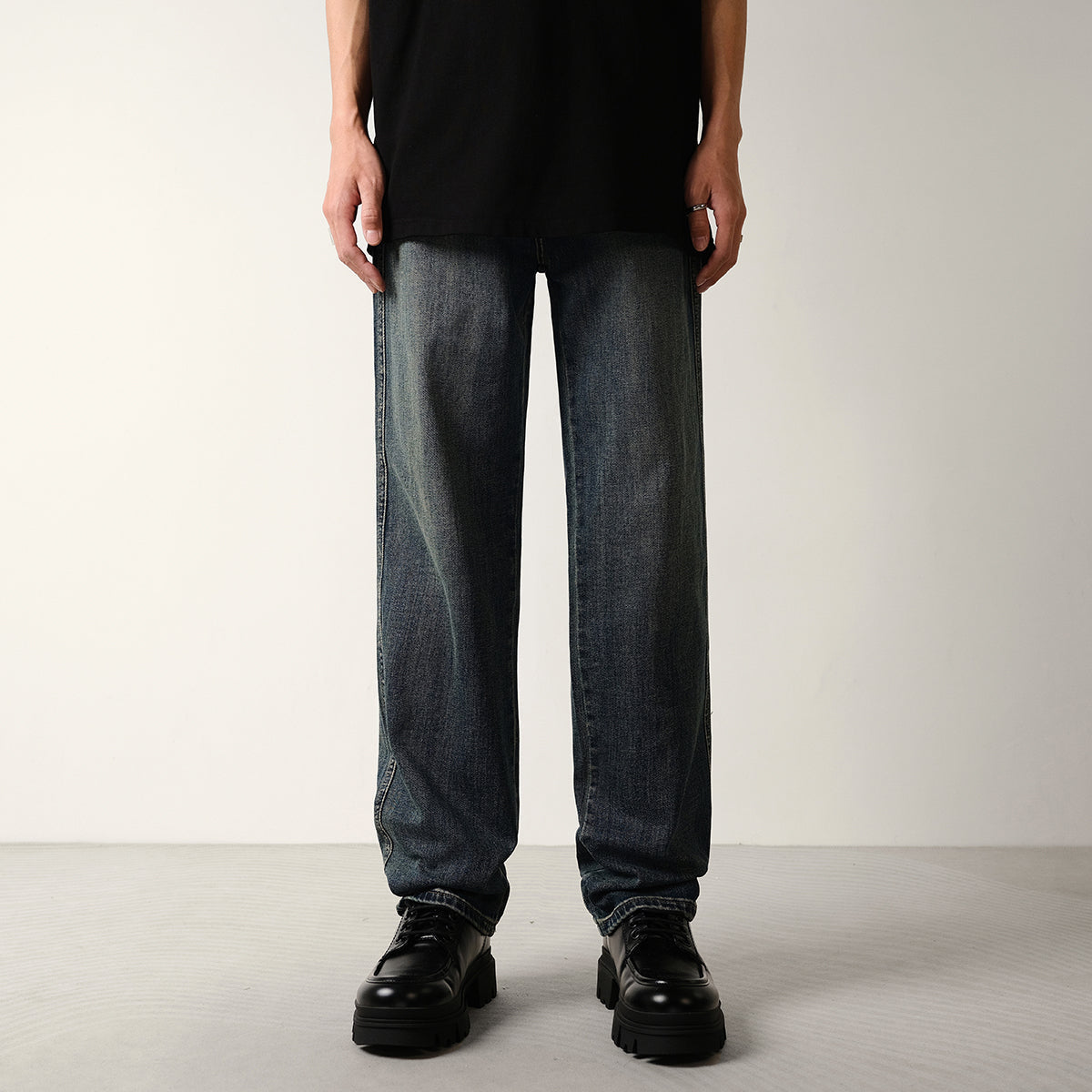 Dark Blue Loose Stretch Straight-Leg Jeans for Men