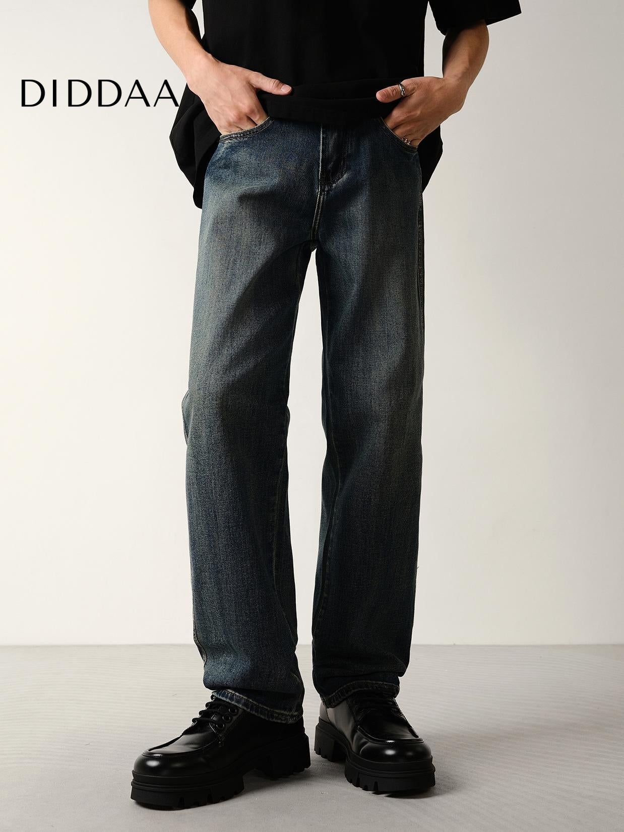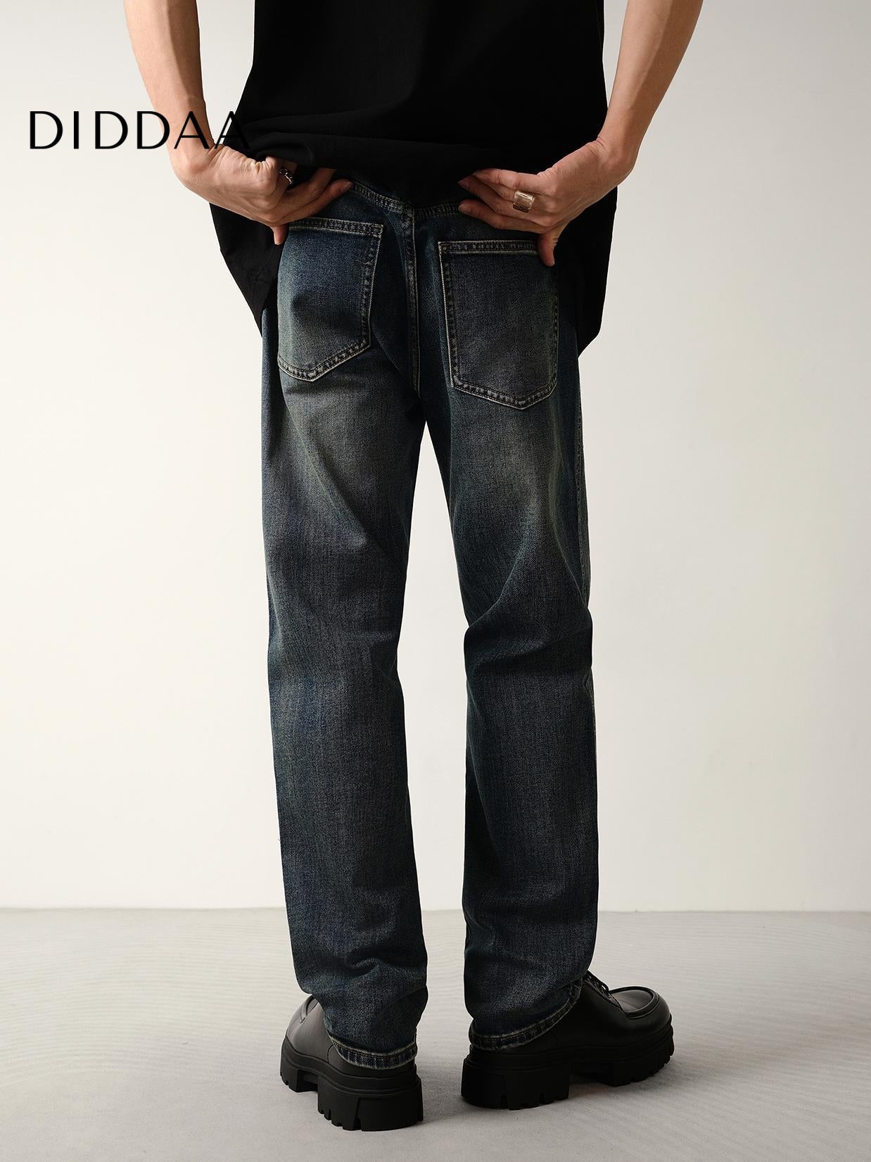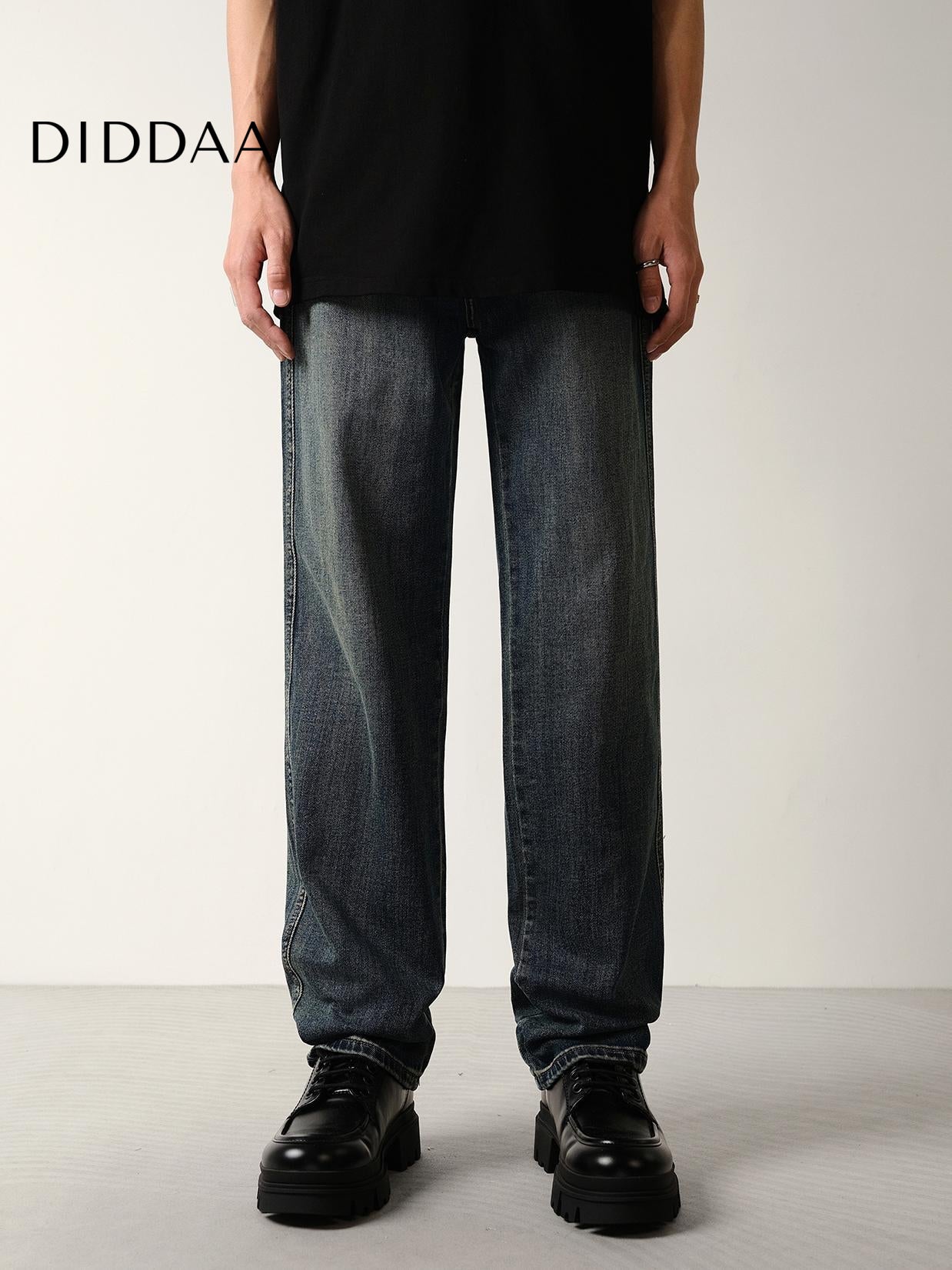 Dark Blue Loose Stretch Straight-Leg Jeans for Men