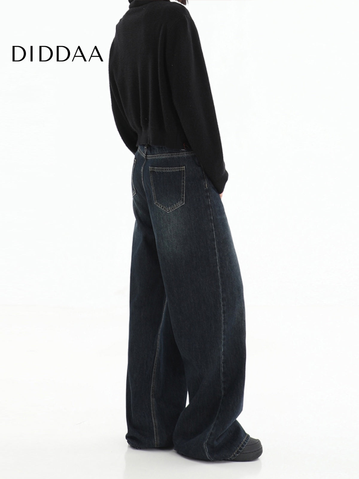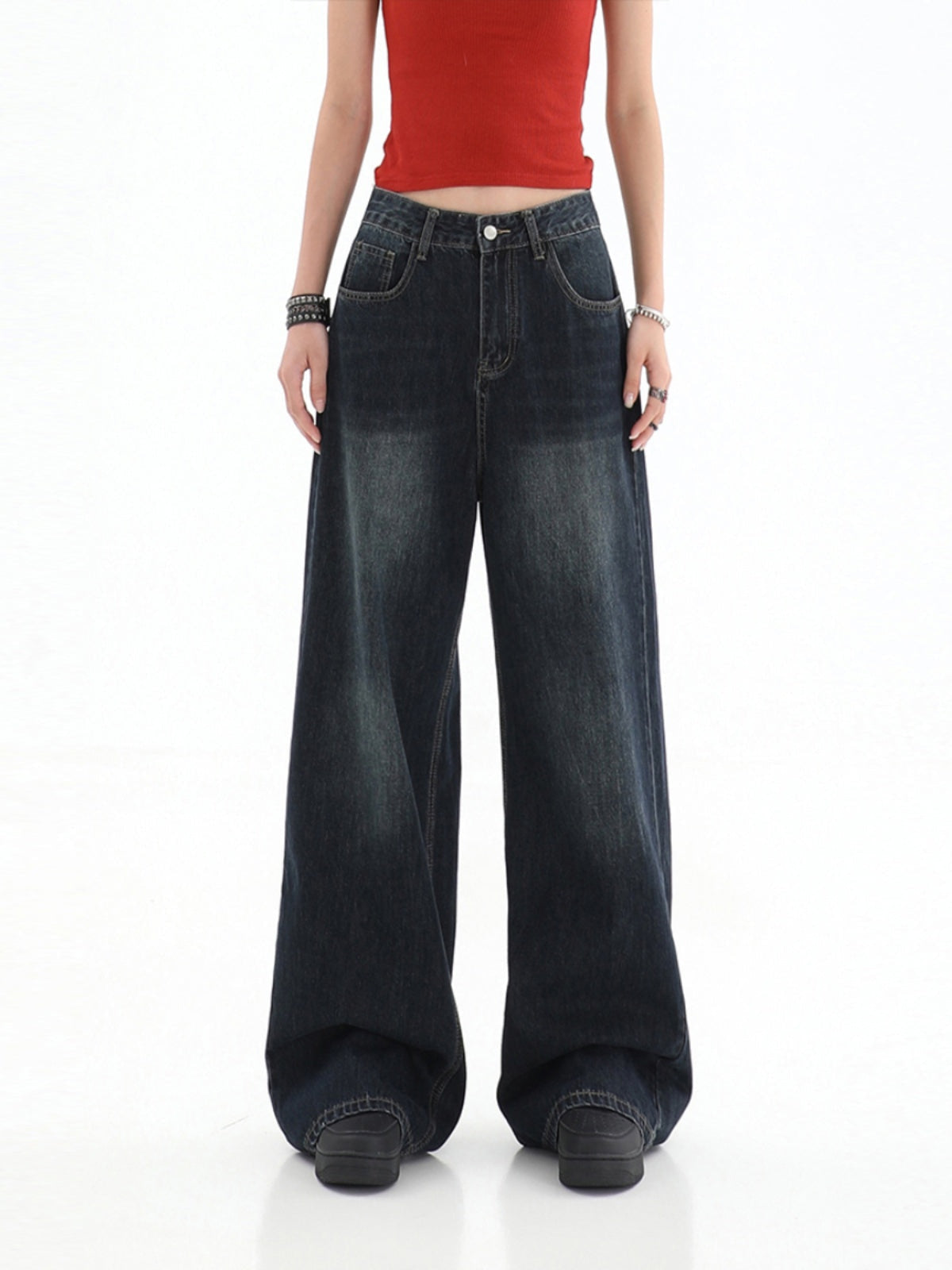 Dark Blue Vintage High Waist Wide Leg Jeans
