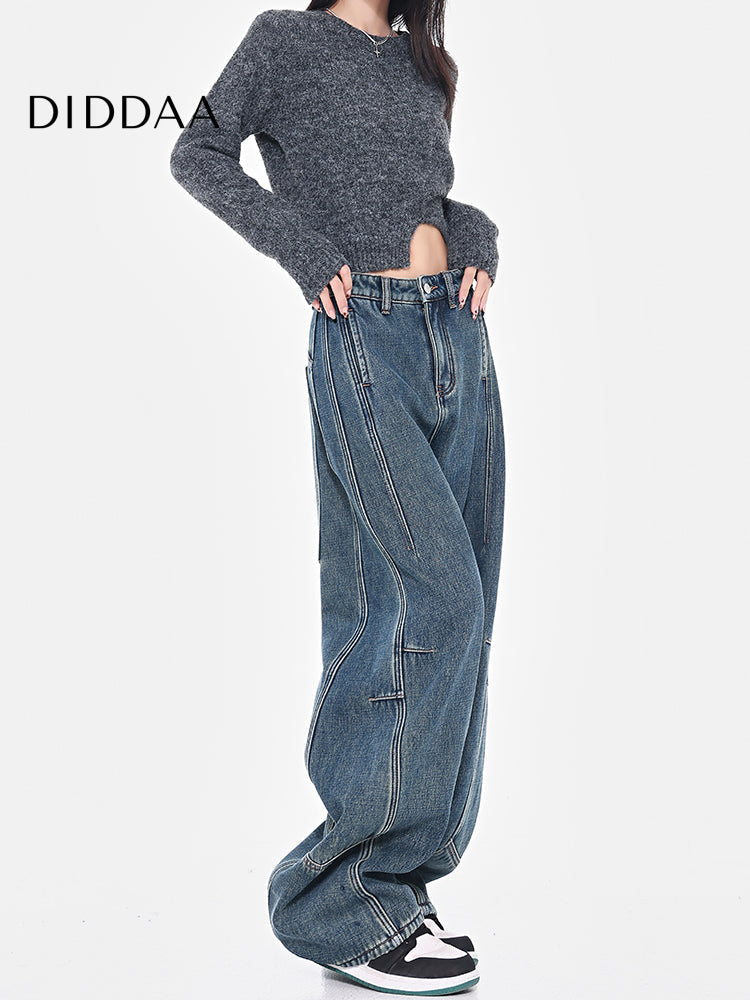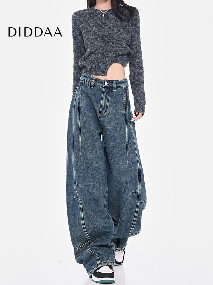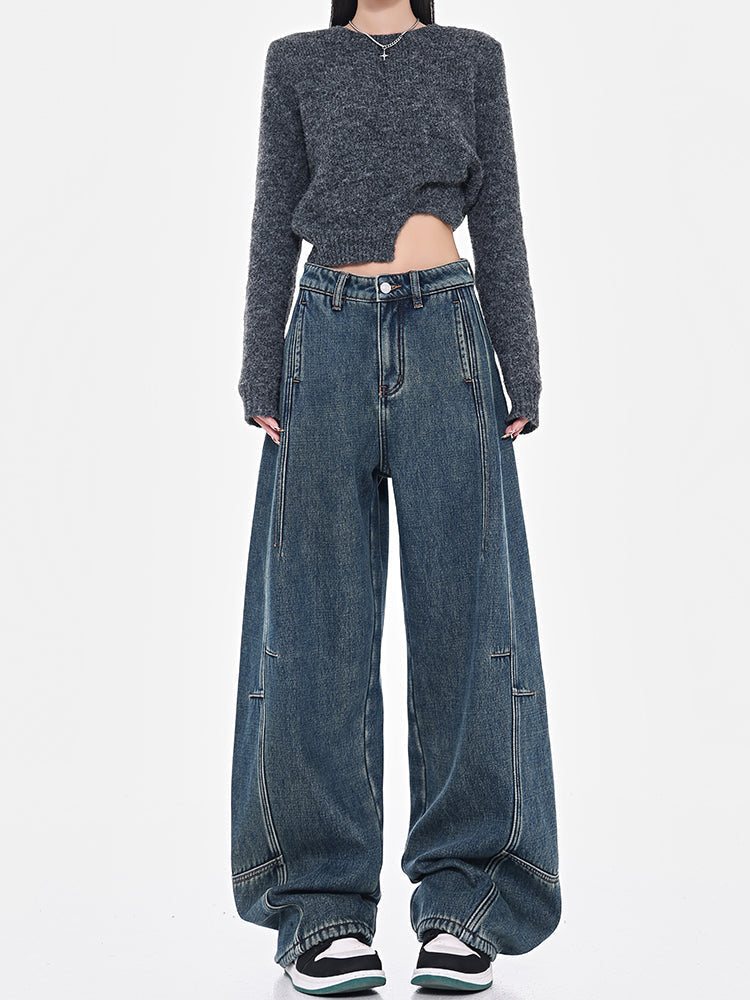Dark Loose Fit Wide-leg Sickle Jeans for Tall Women