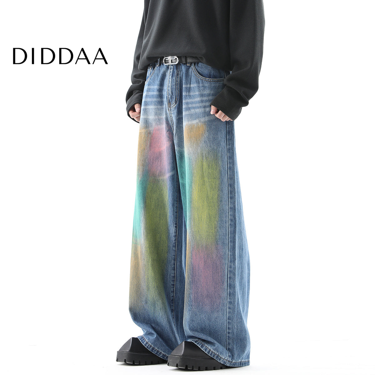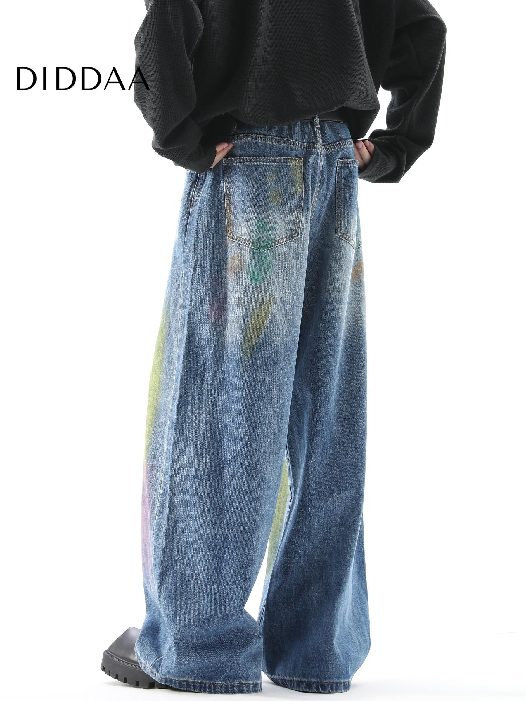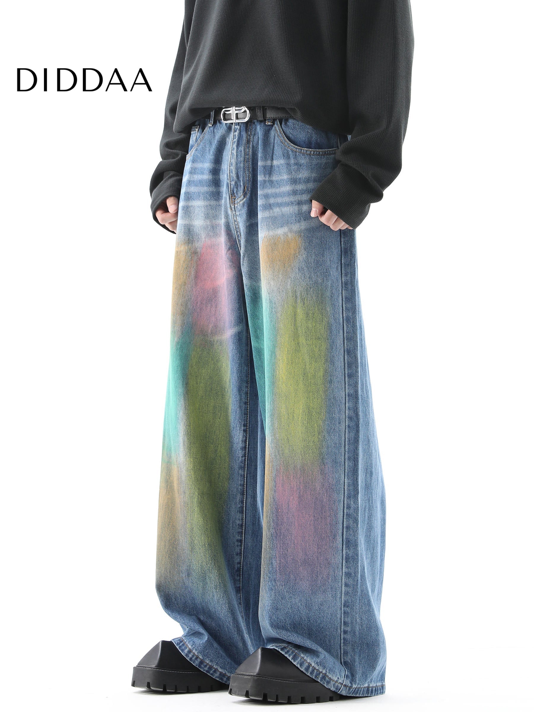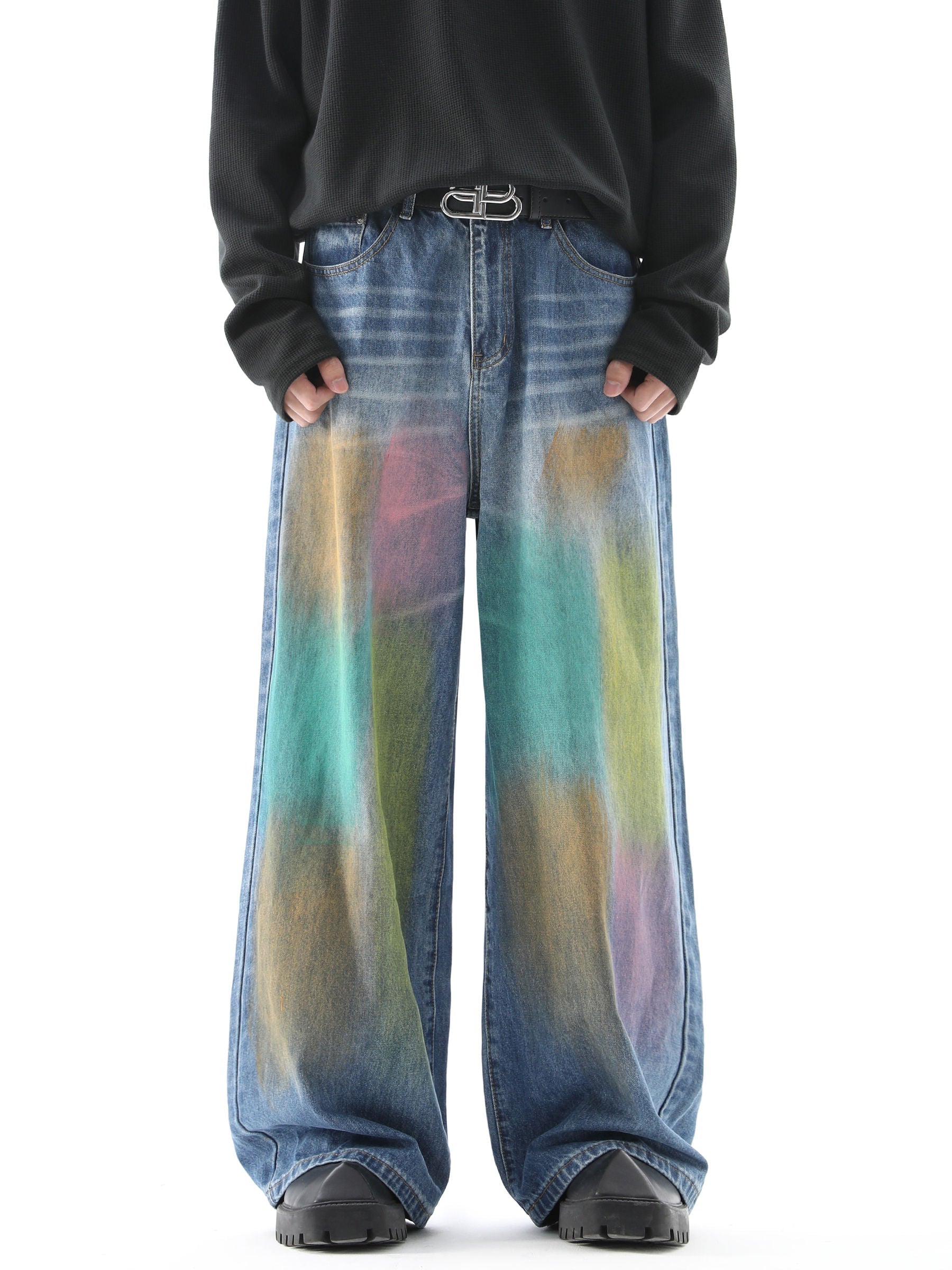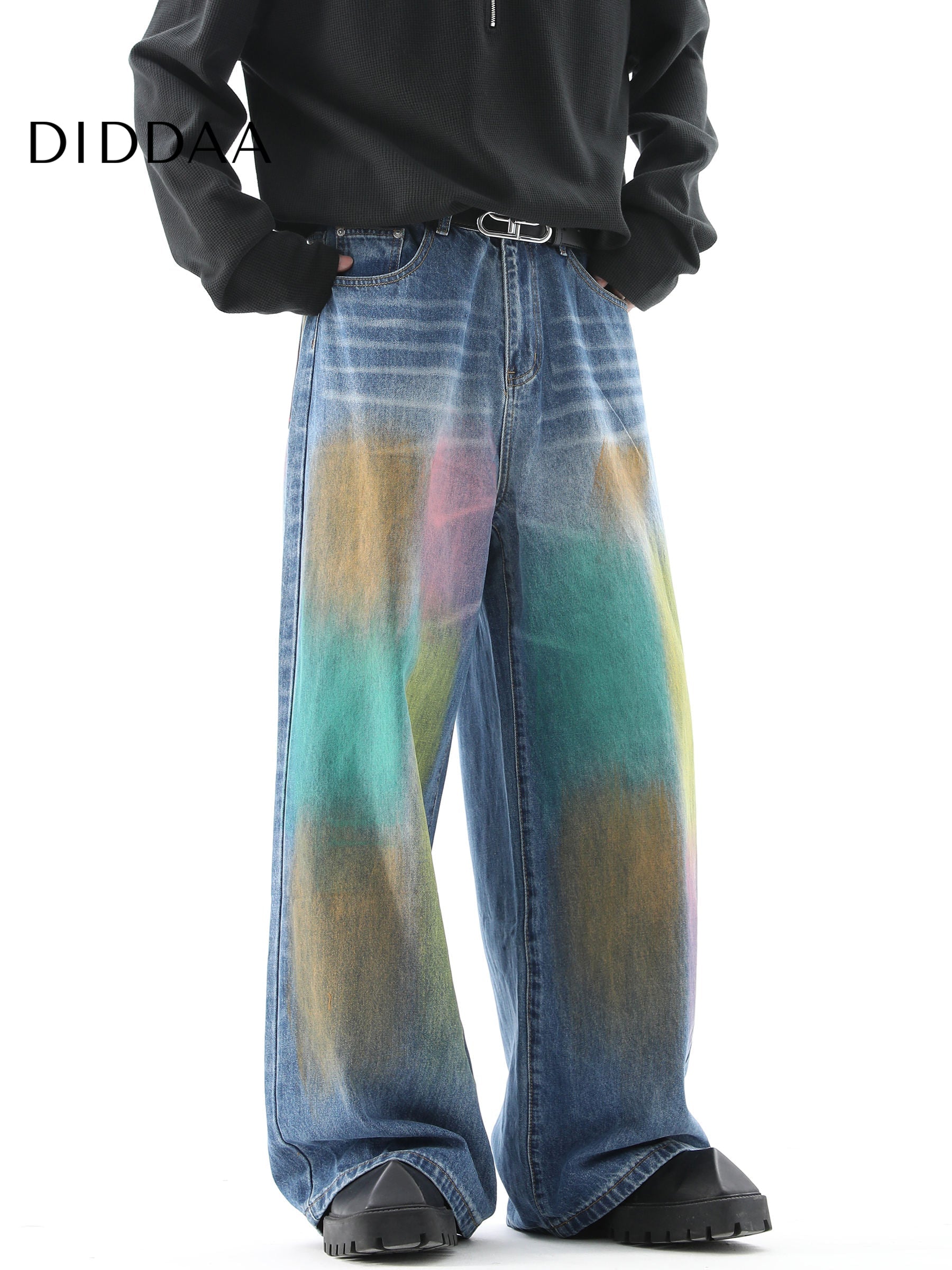 Gradient Loose Fit Wide Leg Jeans for Men