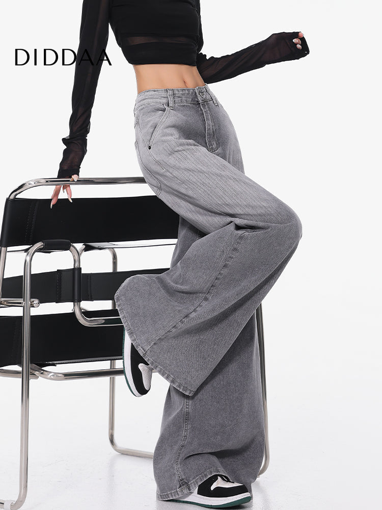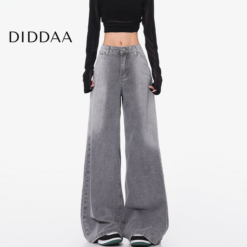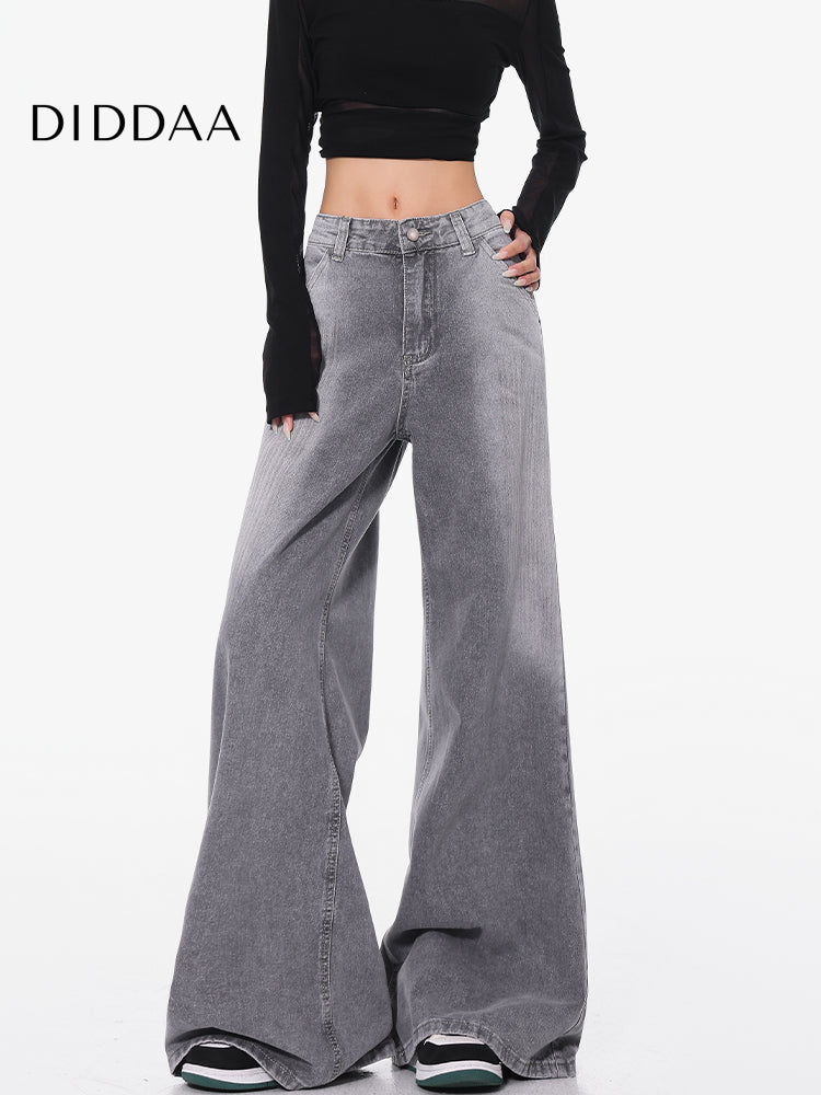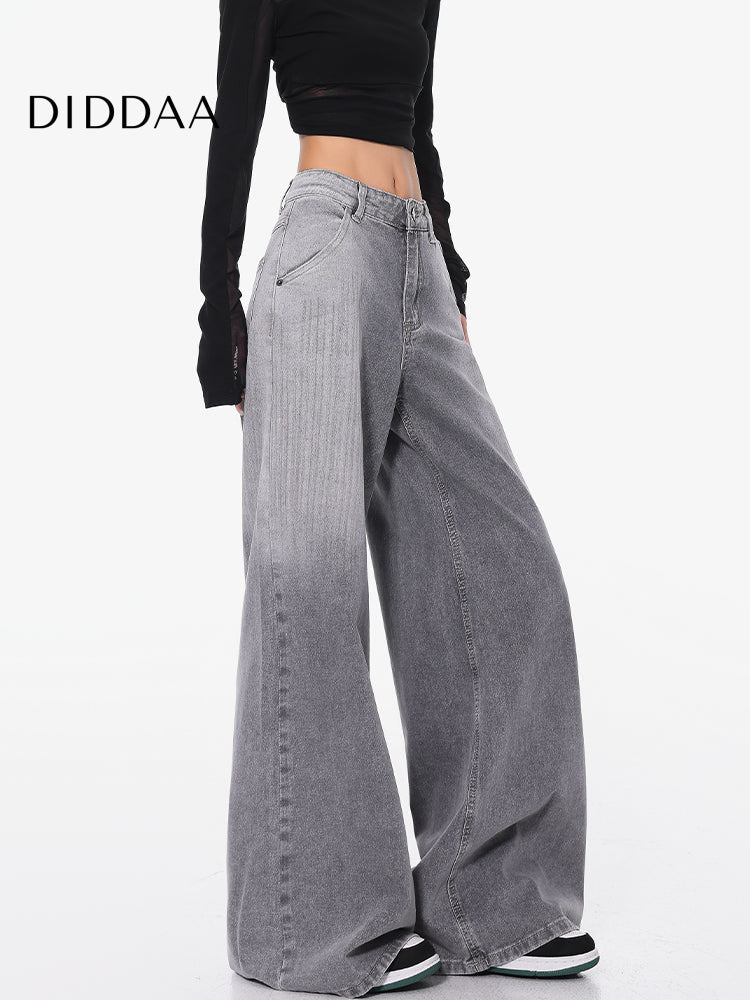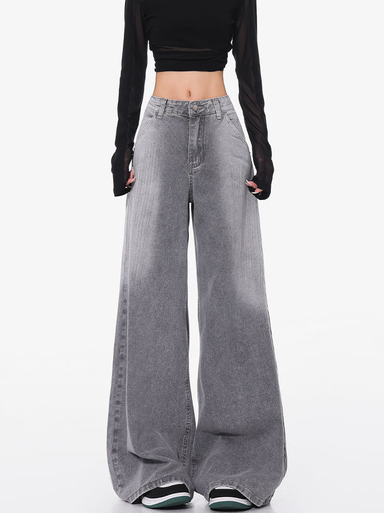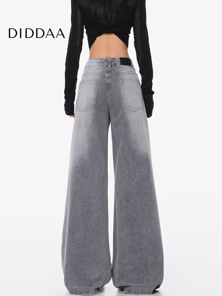 Gray Gradient Loose Wide-Leg Jeans for Women