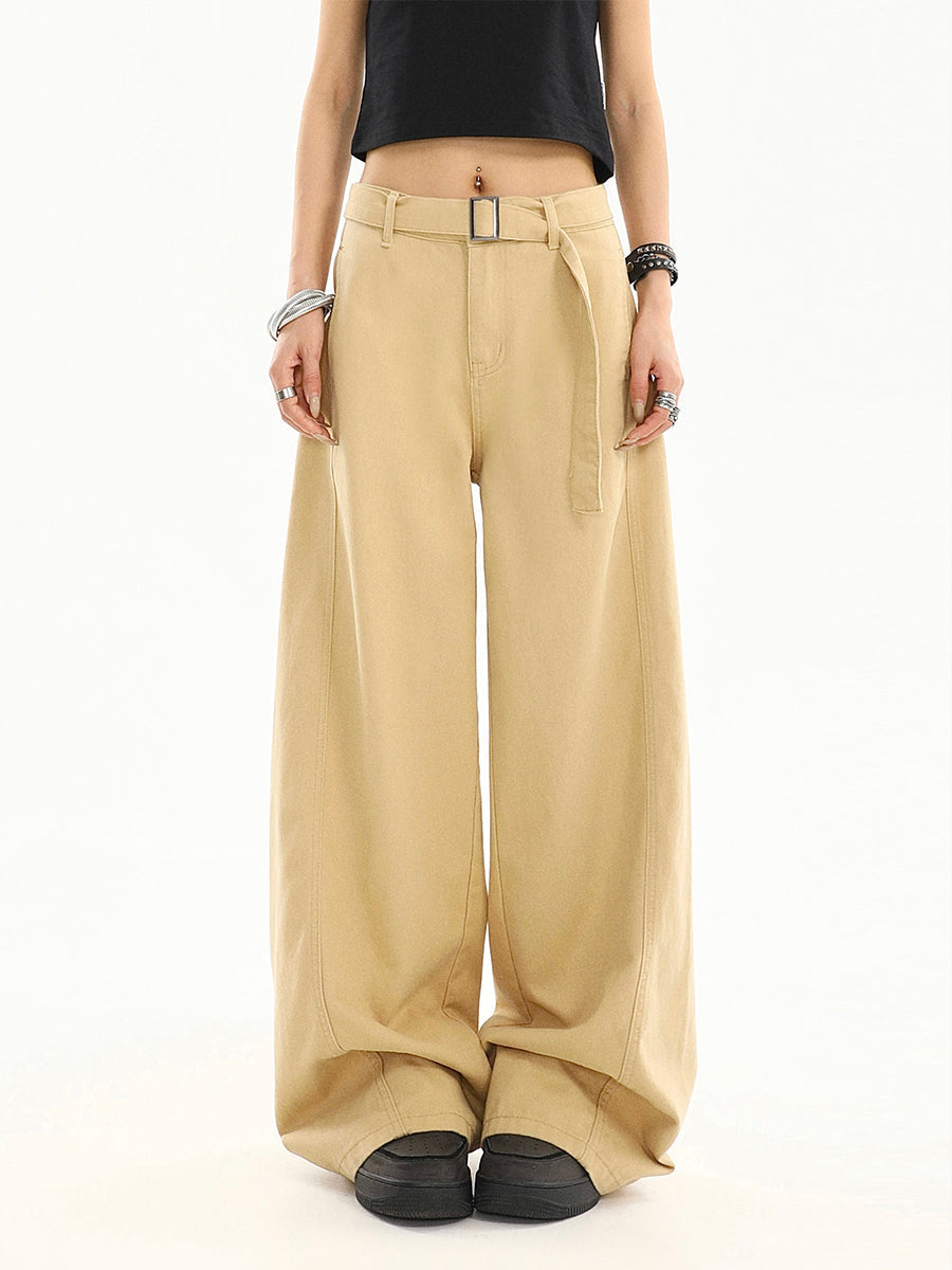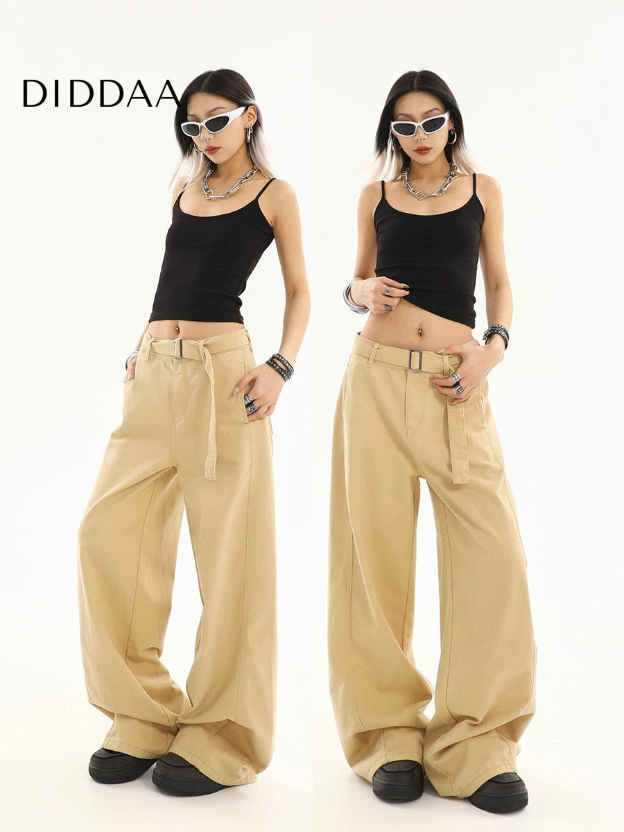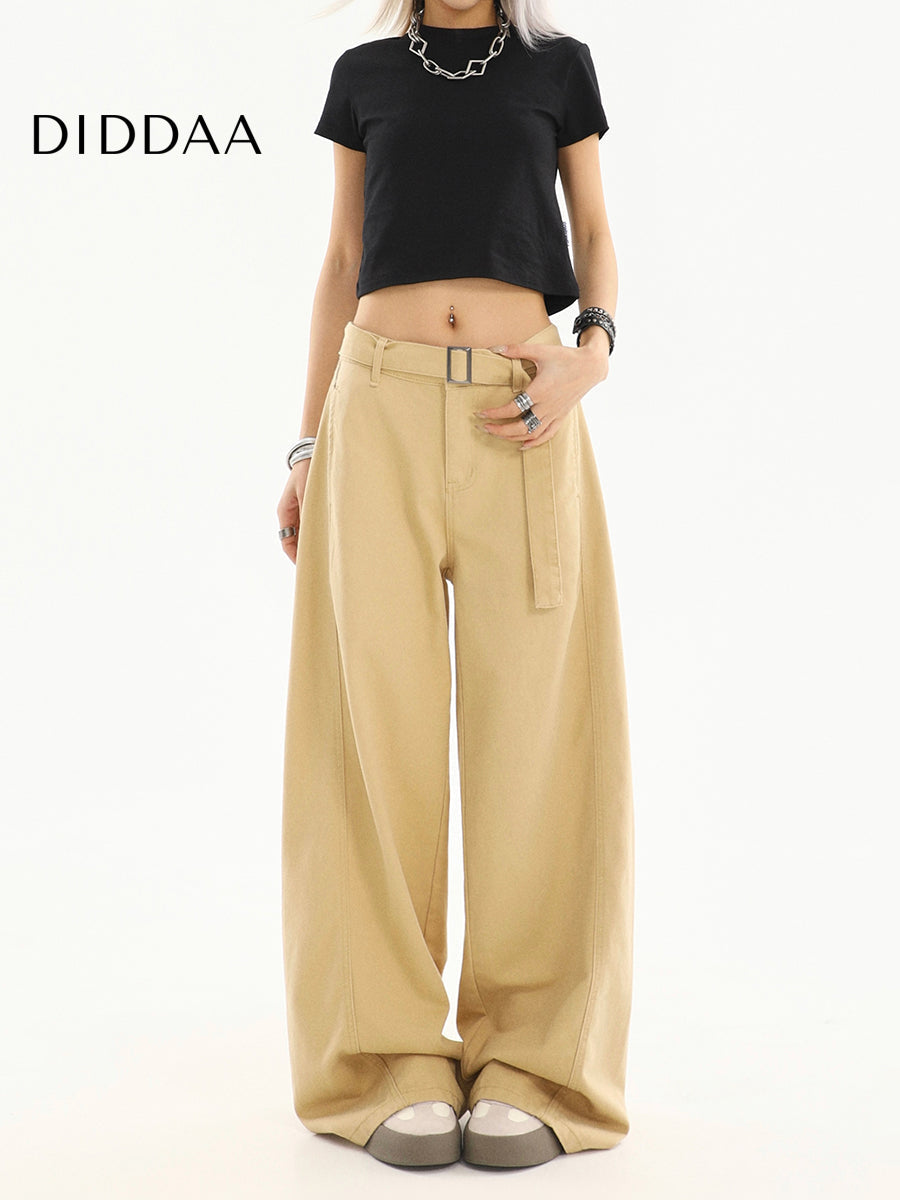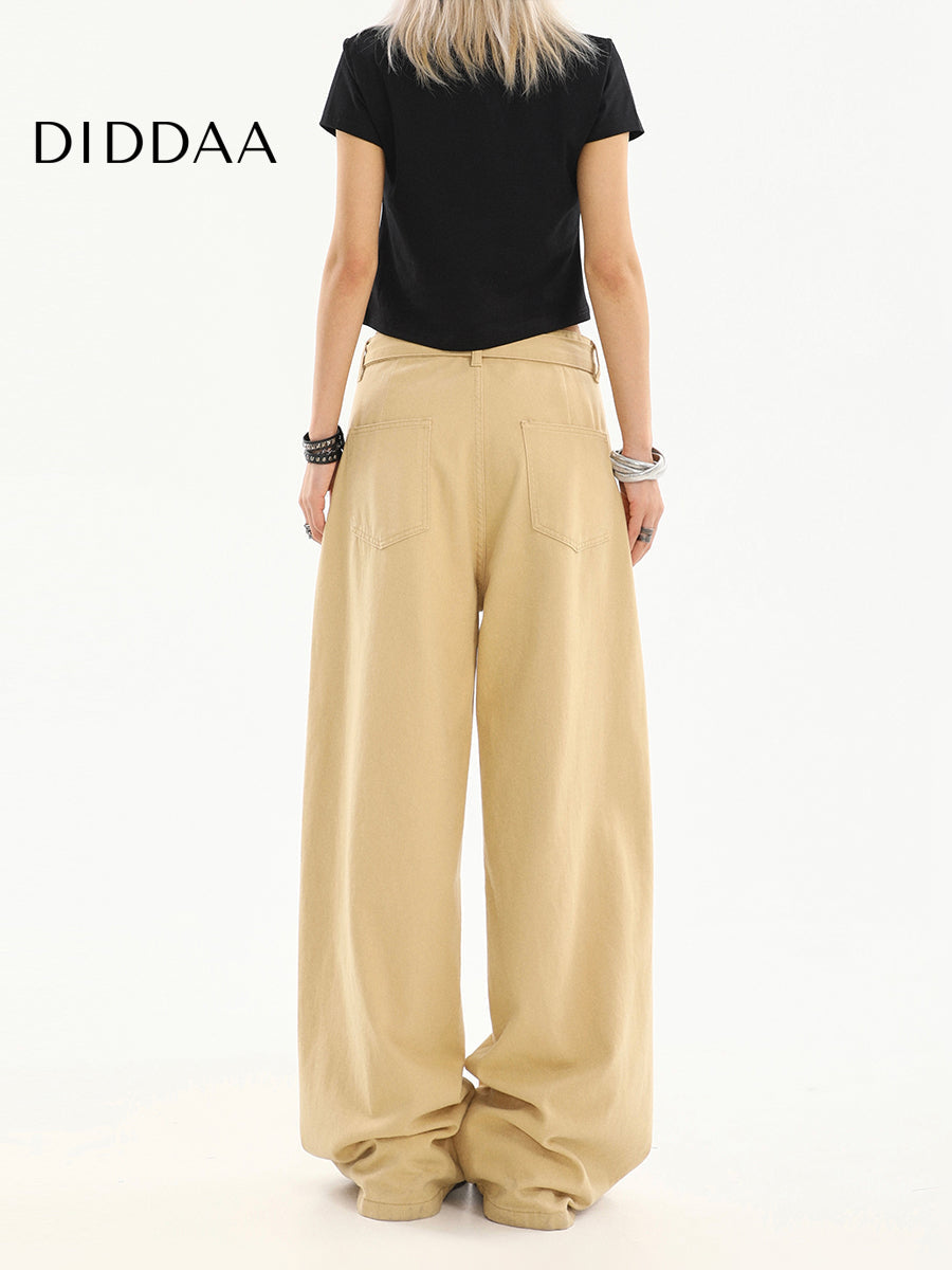 Khaki High-Waisted Loose Fit Wide-Leg Jeans for Women