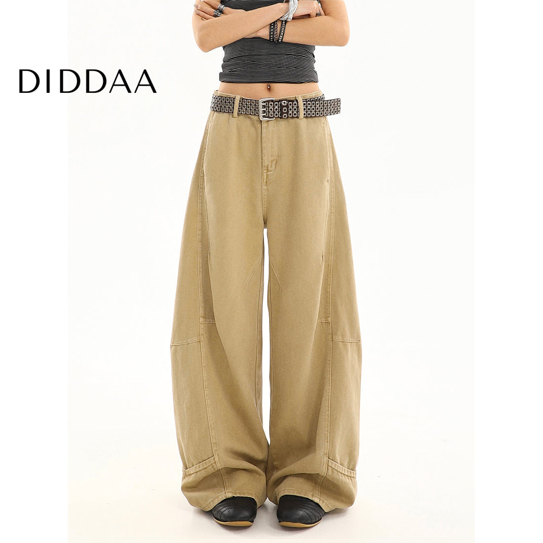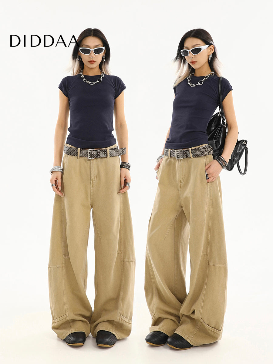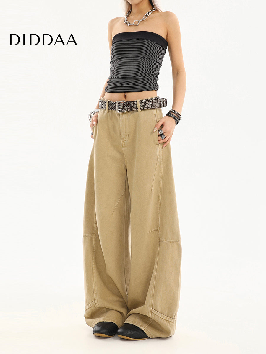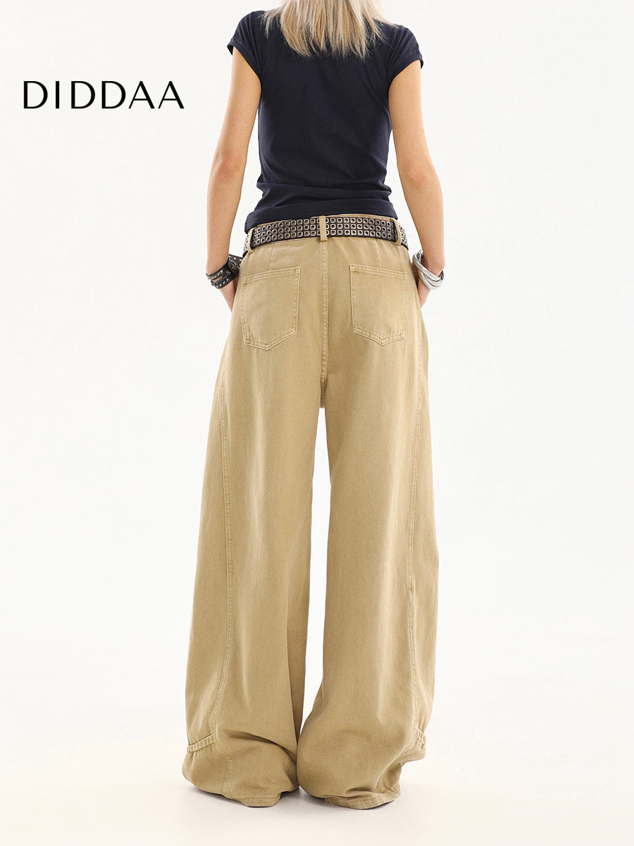 Khaki Loose Fit Cargo Jeans Women's Summer Wide-Leg Pants