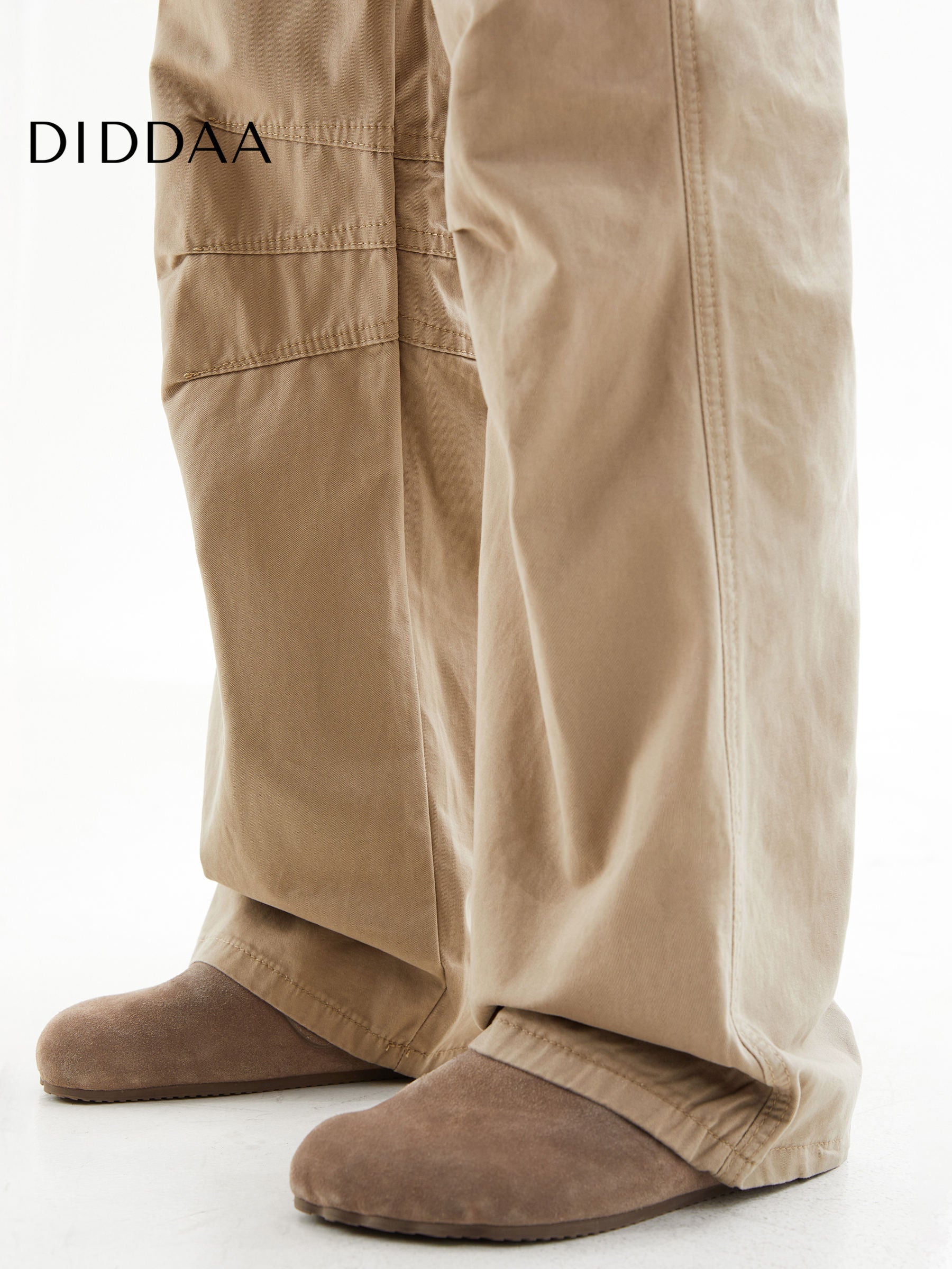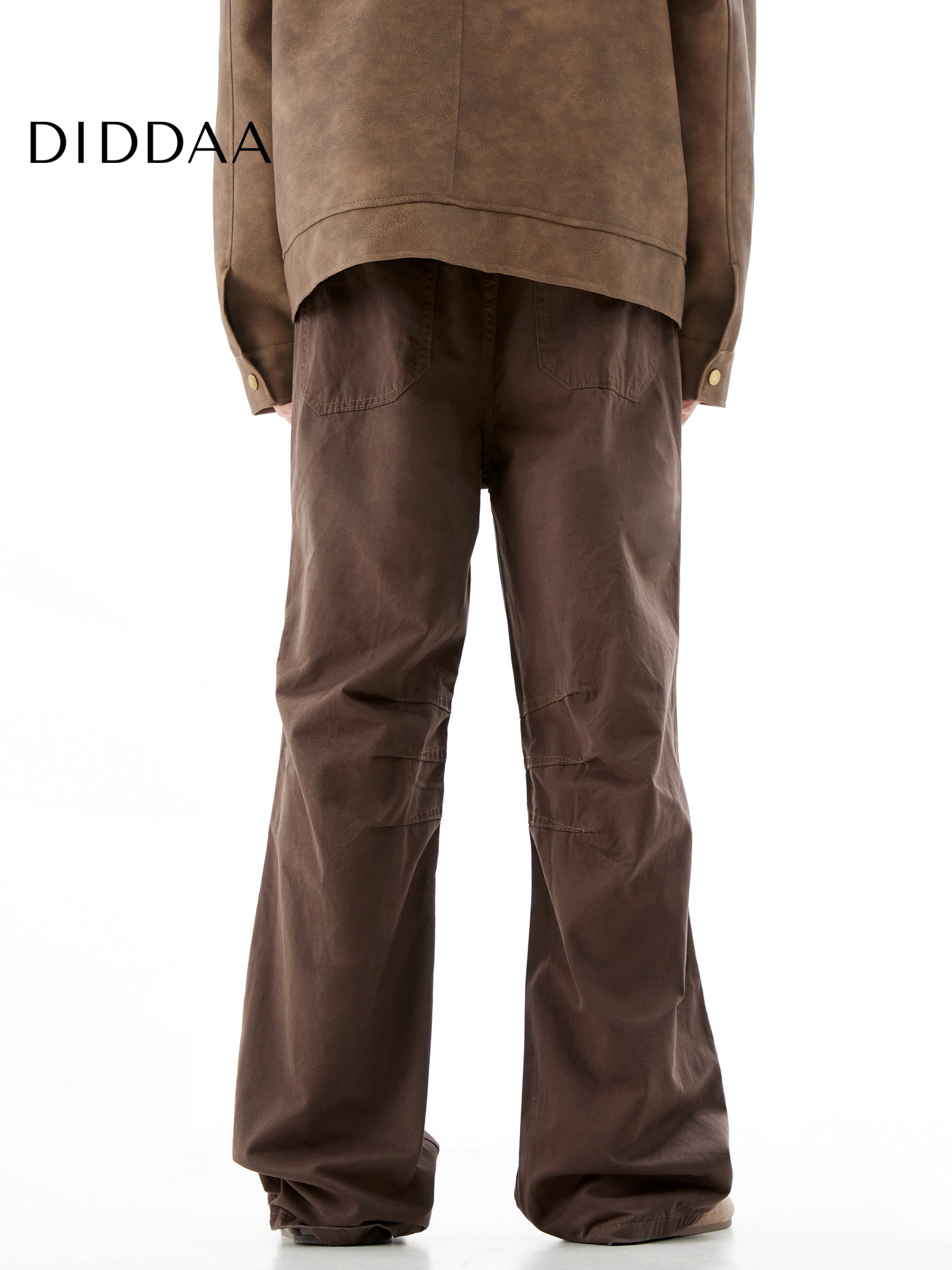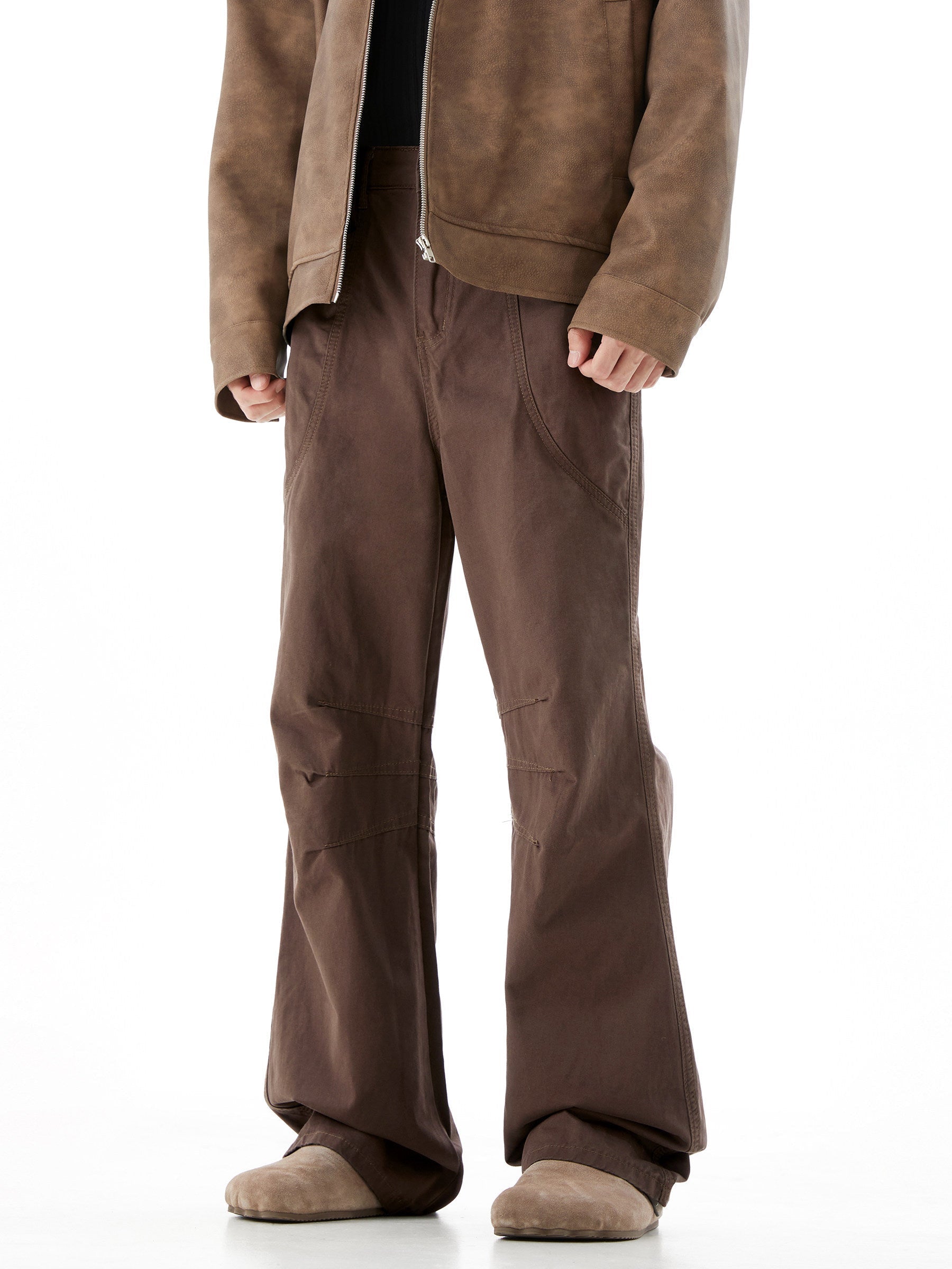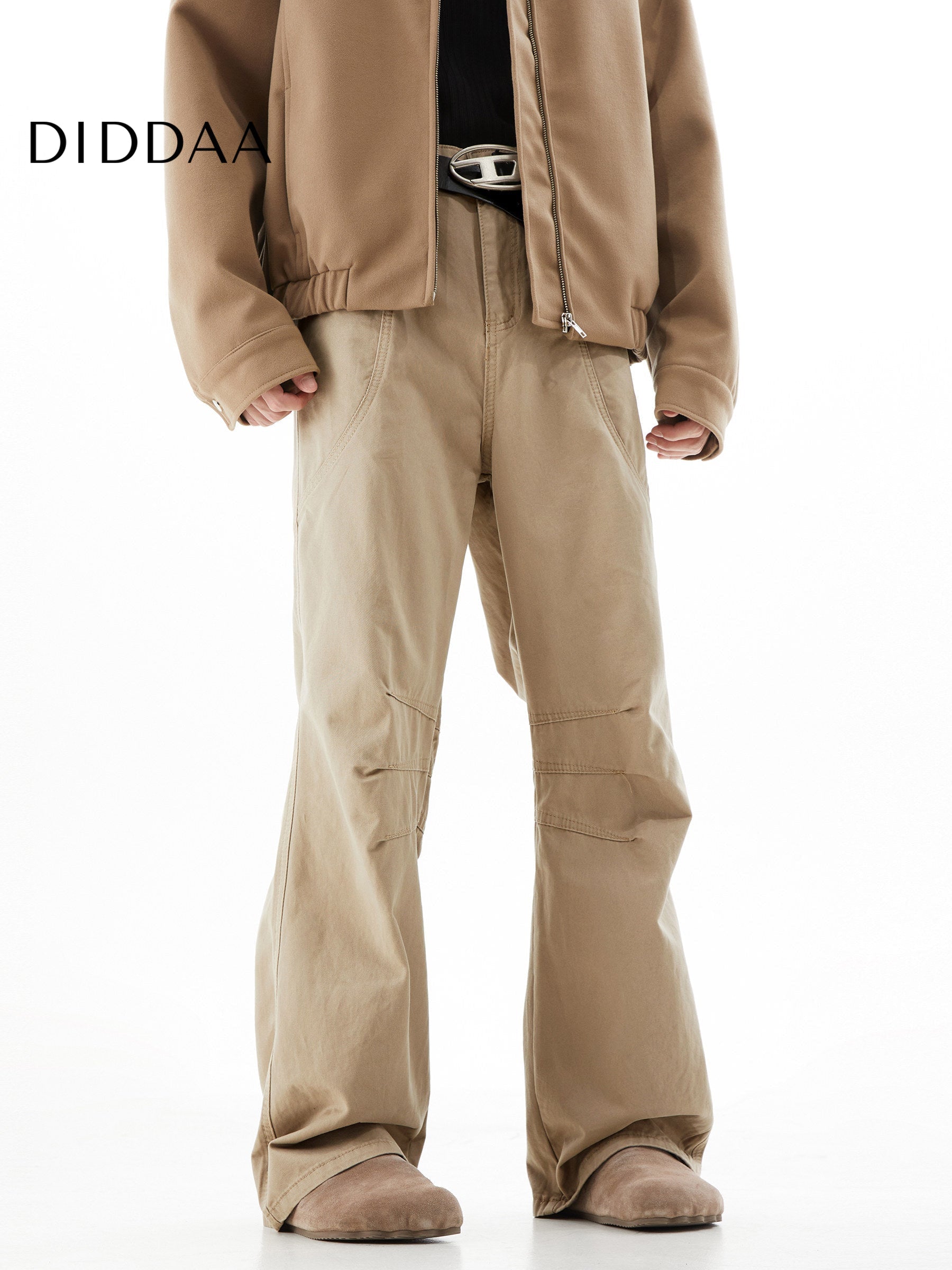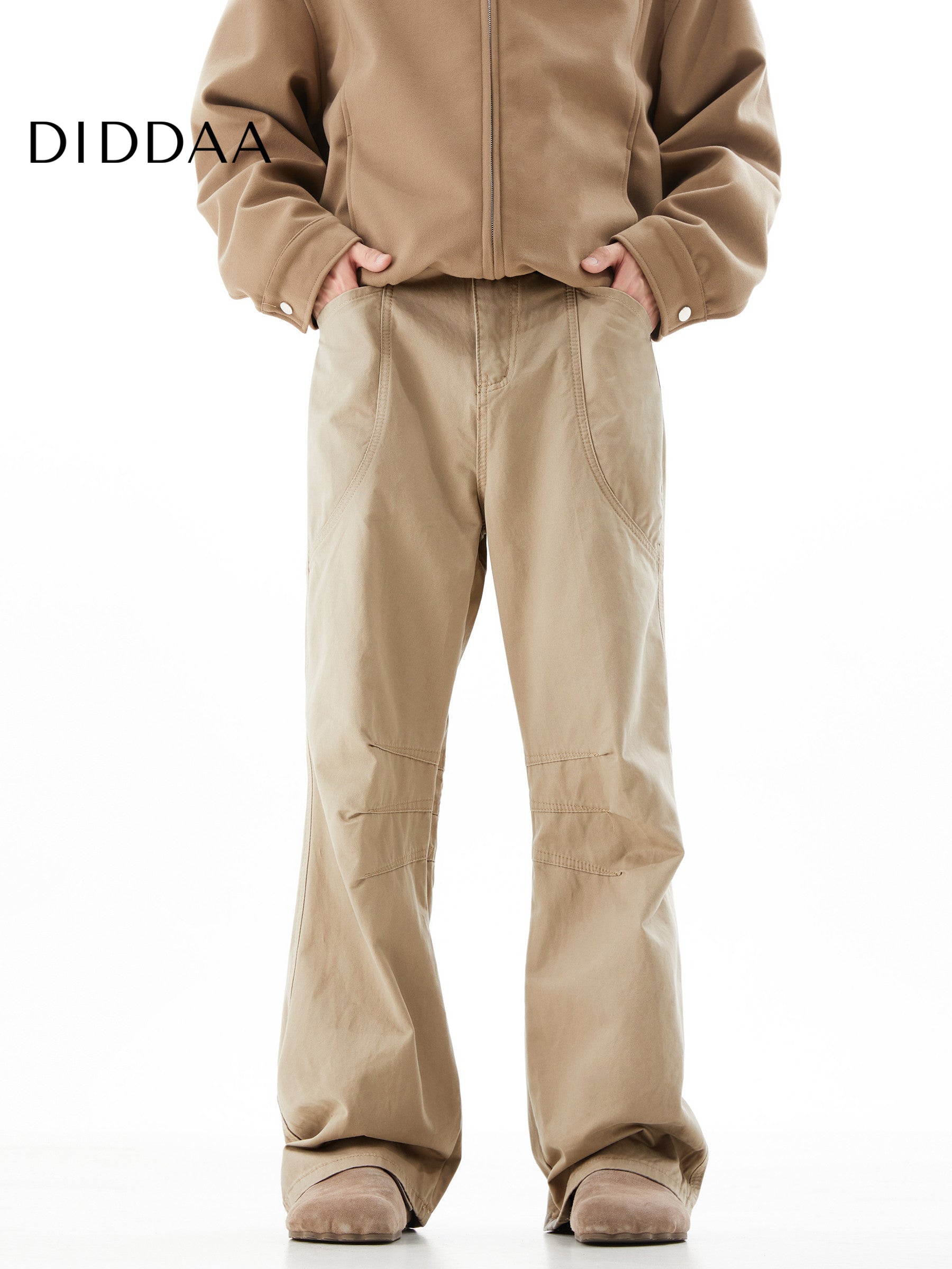 Khaki Vintage Wash Cargo Pants for Men Bootcut Fit