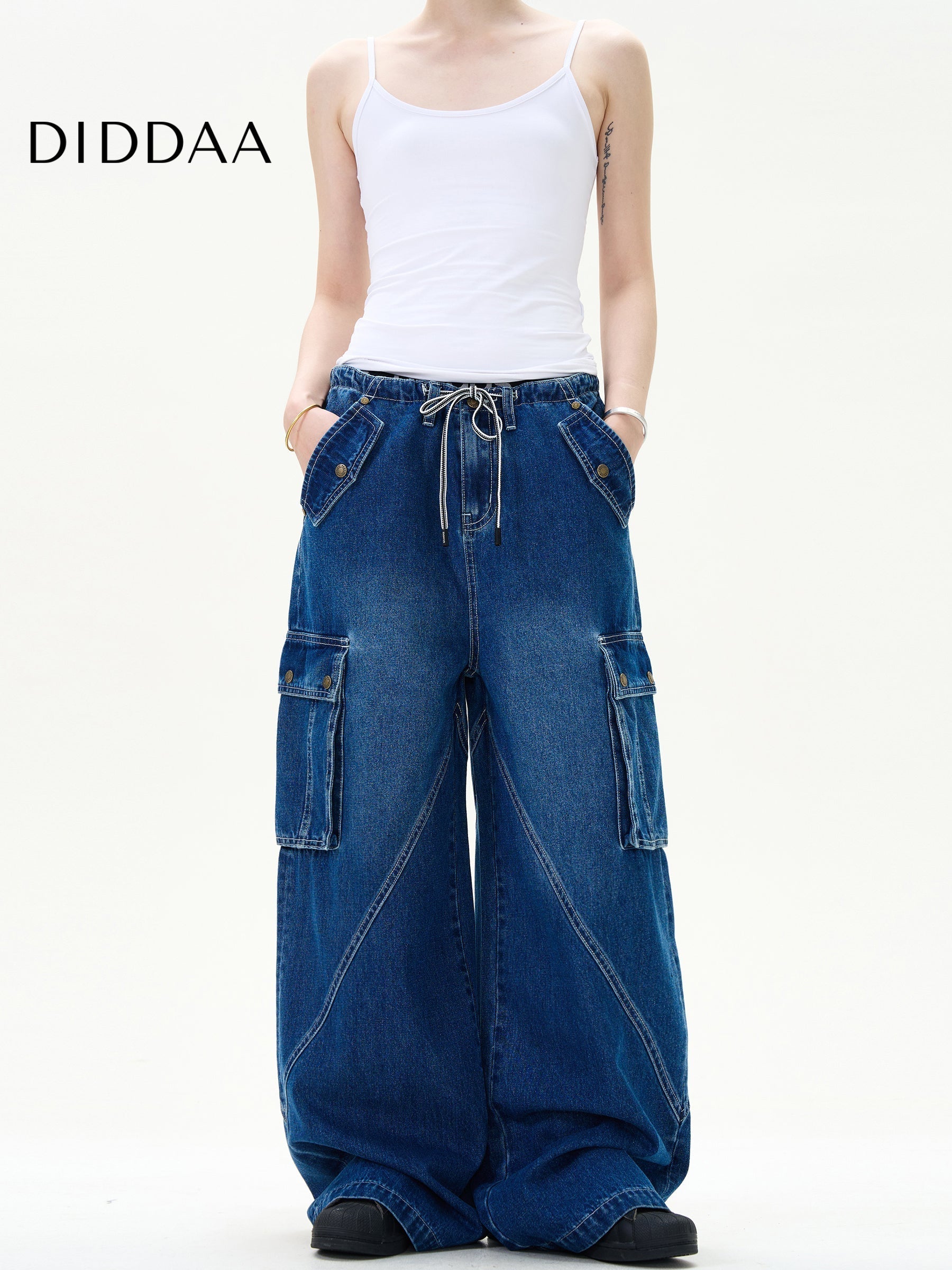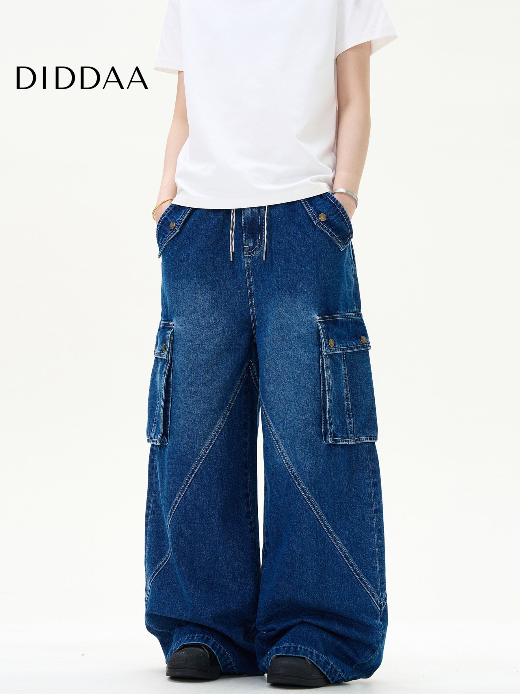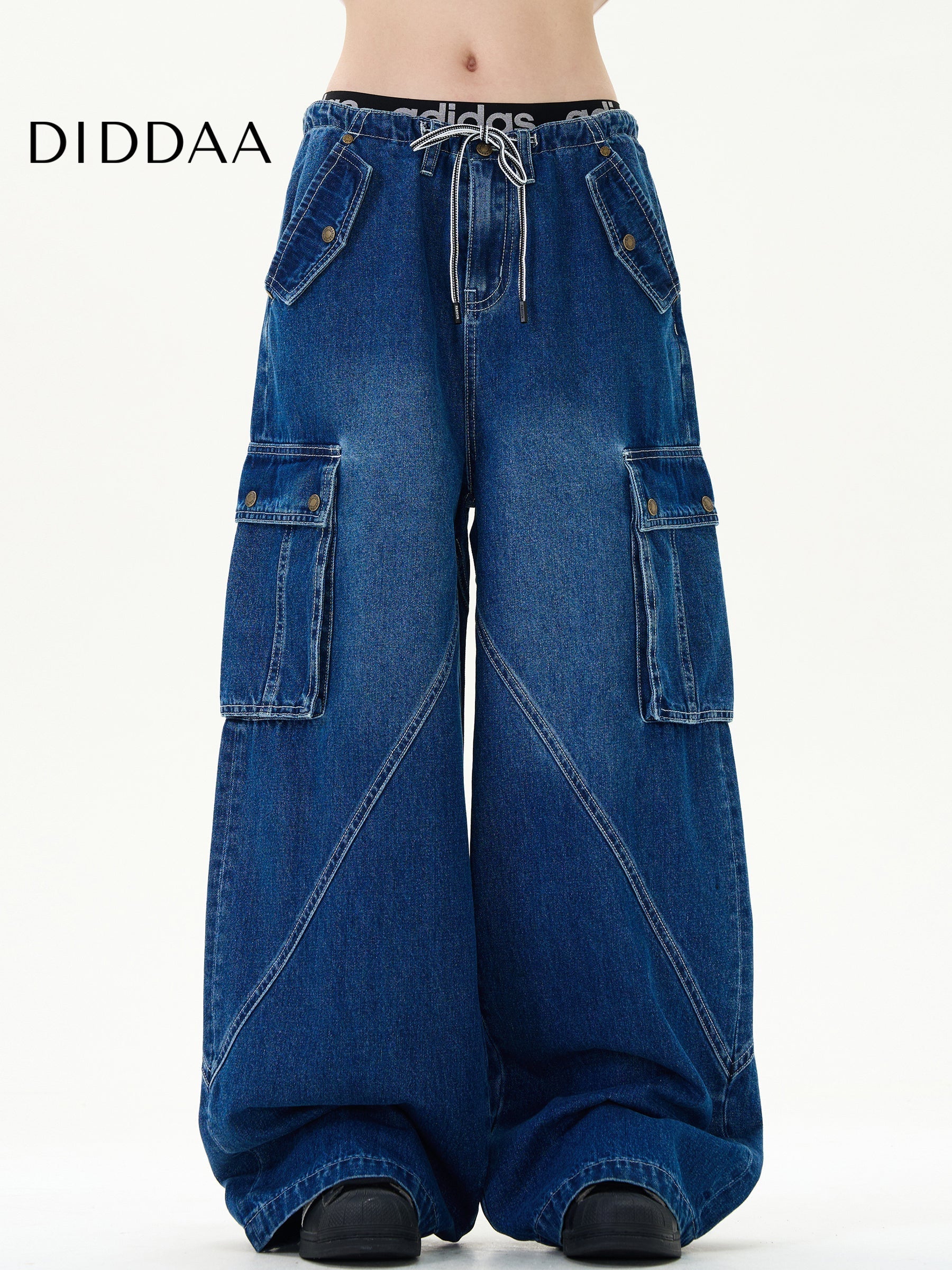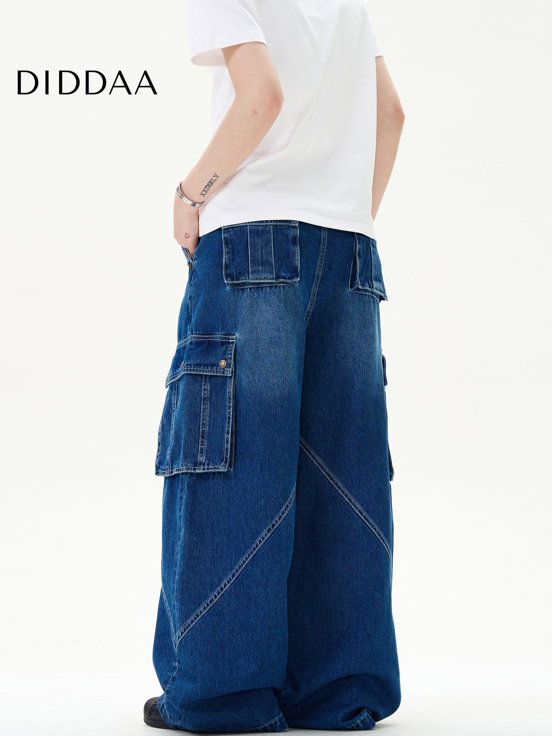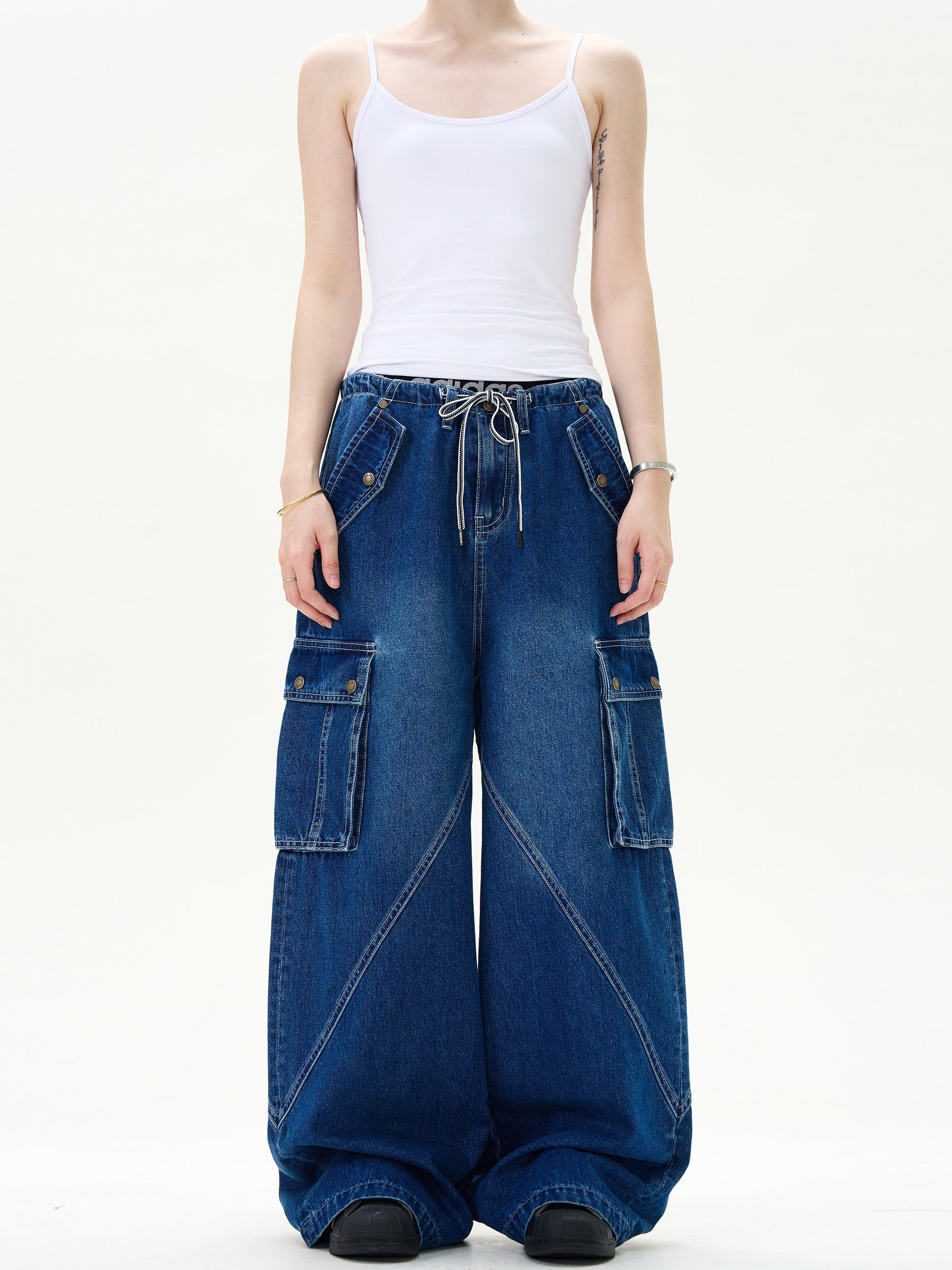 Light Blue Deconstructed Wide Leg Multi Pocket Jeans