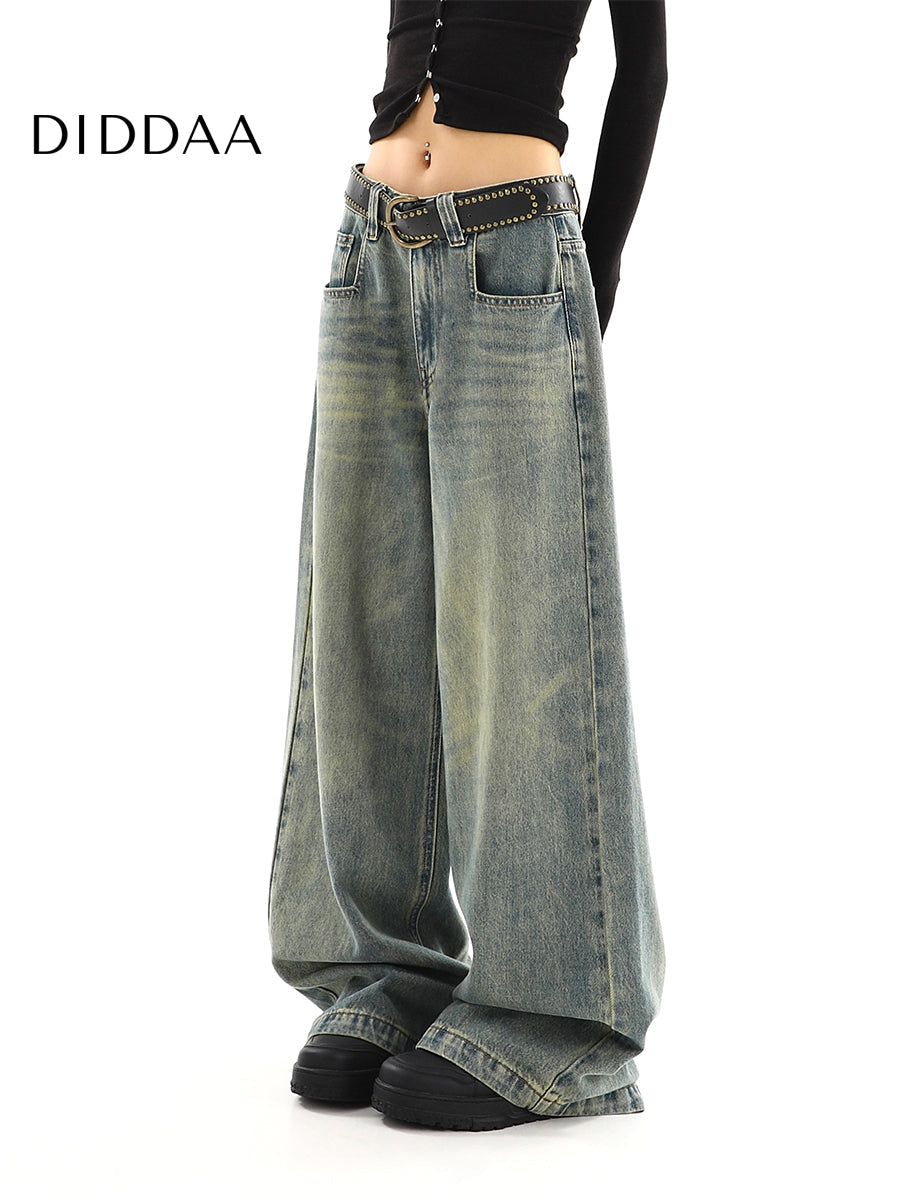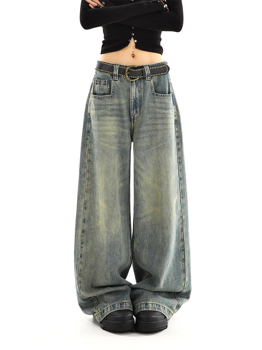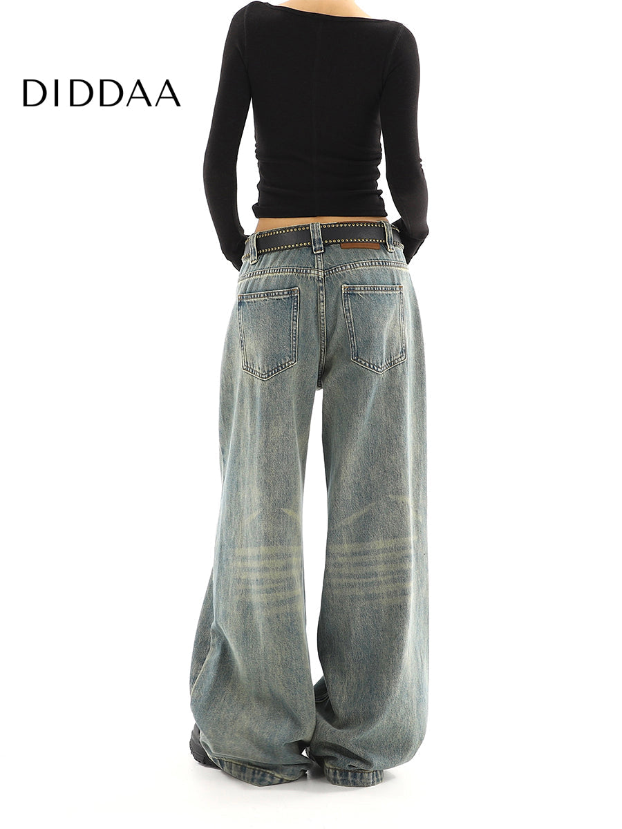 Light Blue Distressed Low-Rise Wide-Leg Jeans