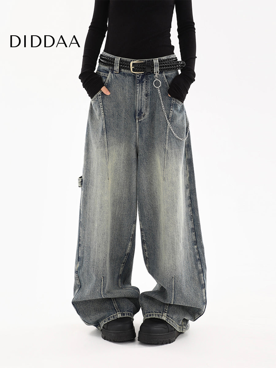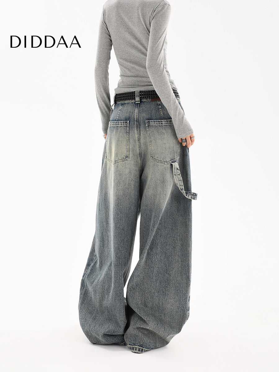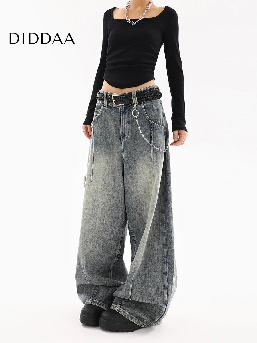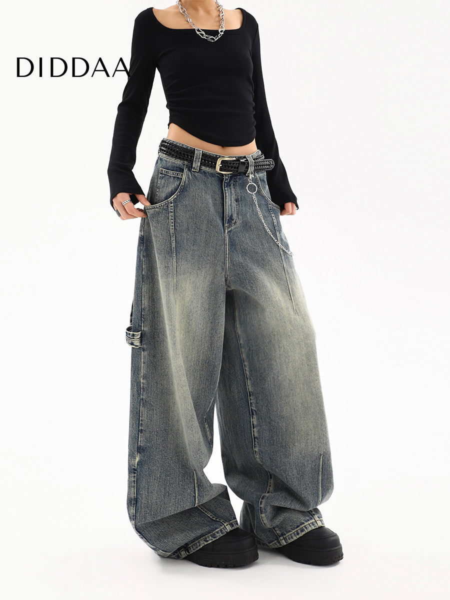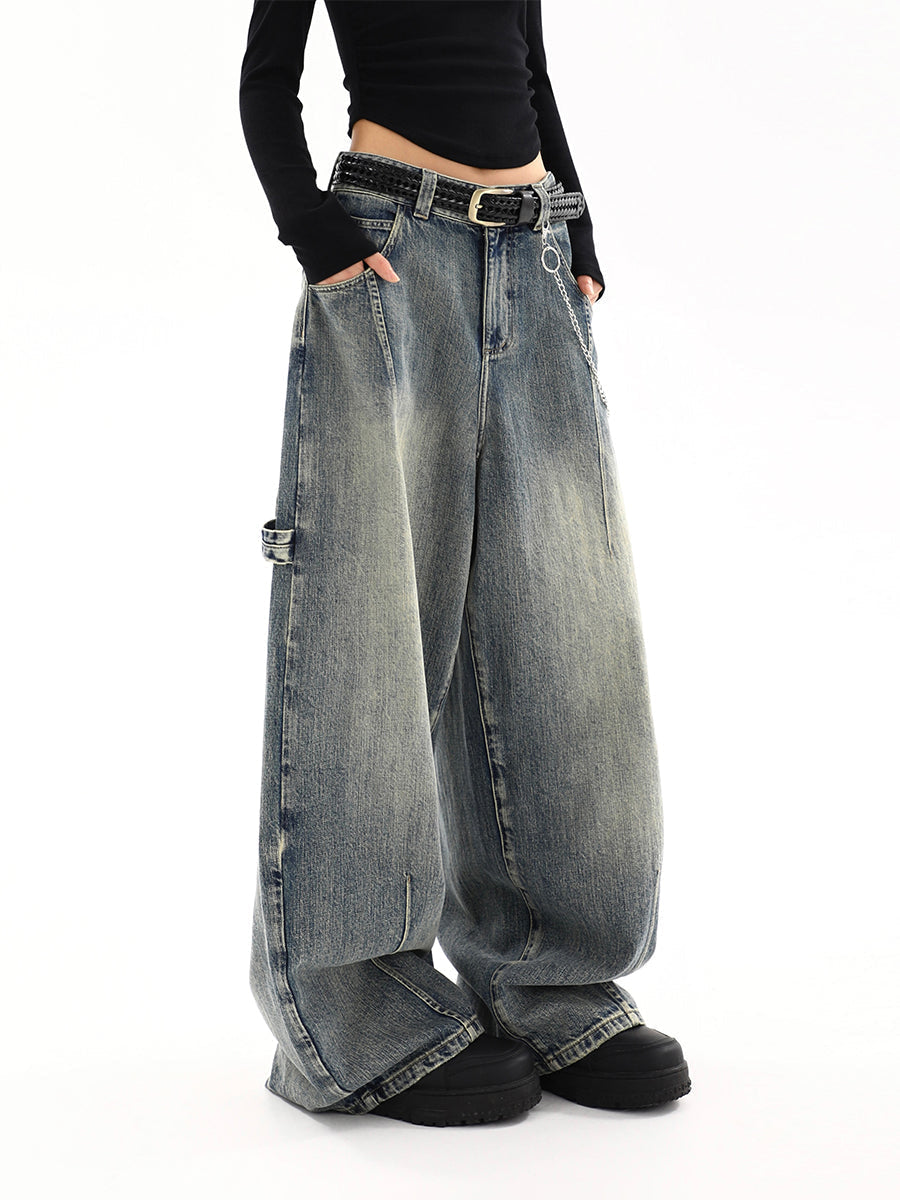 Light Blue Distressed Wide-Leg Cargo Jeans Women