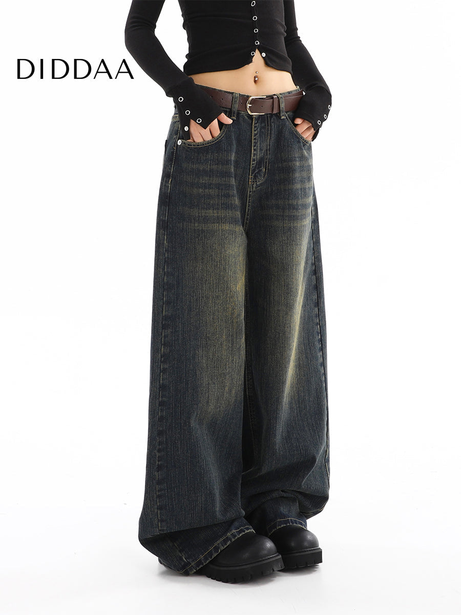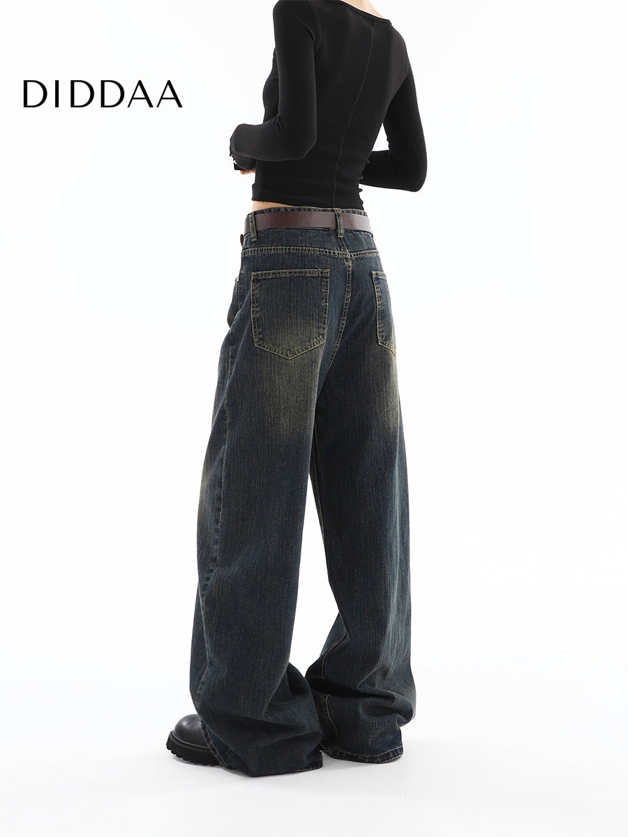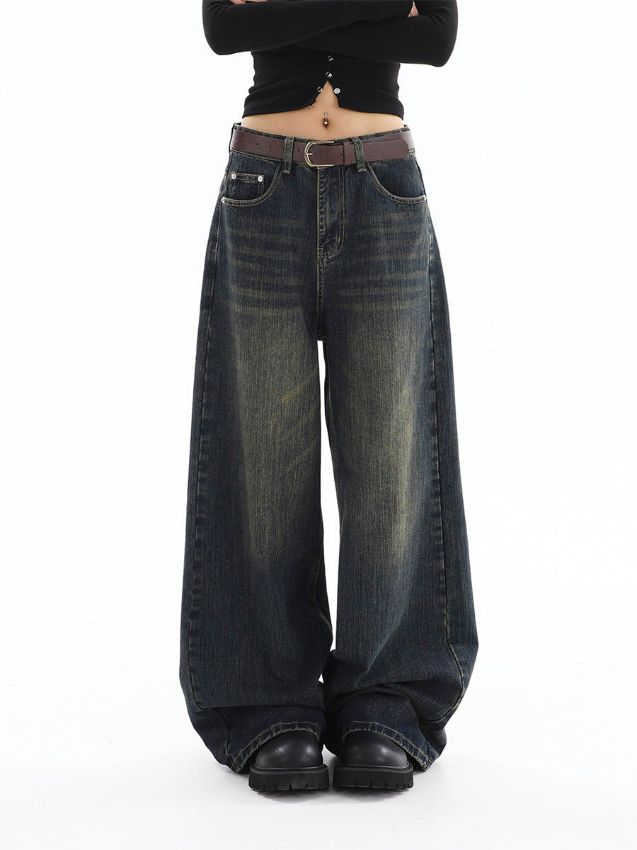 Light Blue Distressed Wide-Legged Straight-Leg Jeans