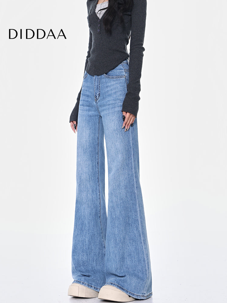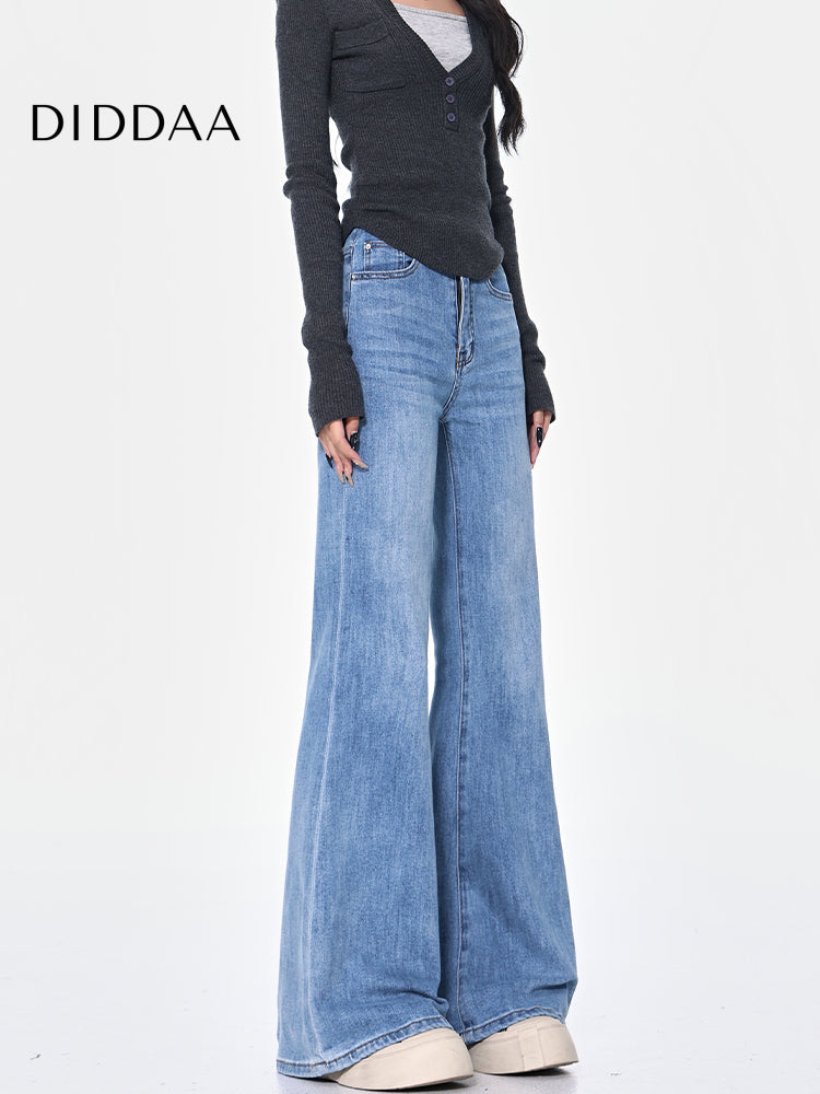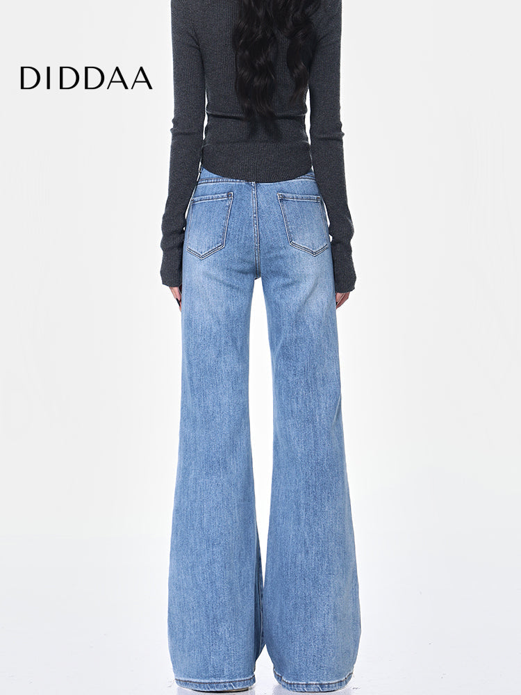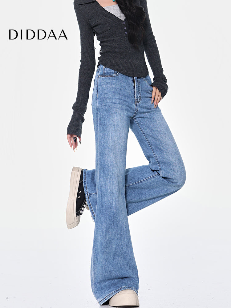 Light Blue High Waist Bootcut Jeans Women's Stretch Flared