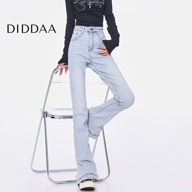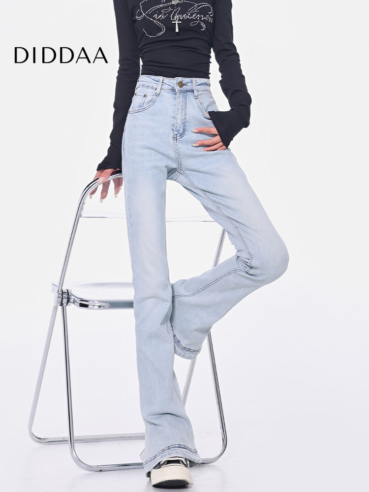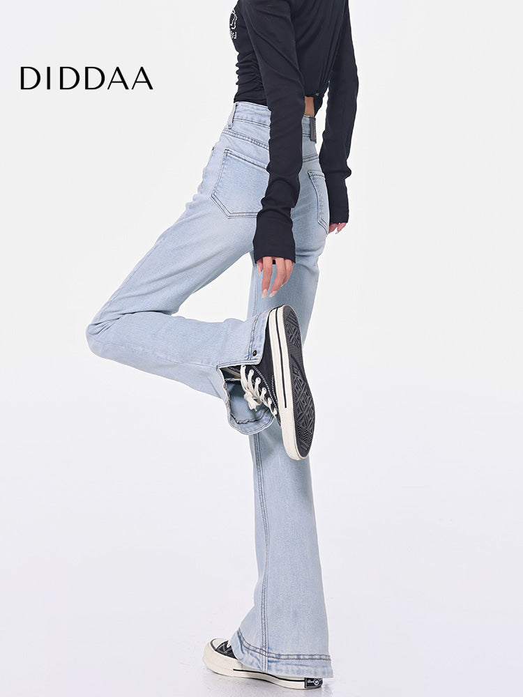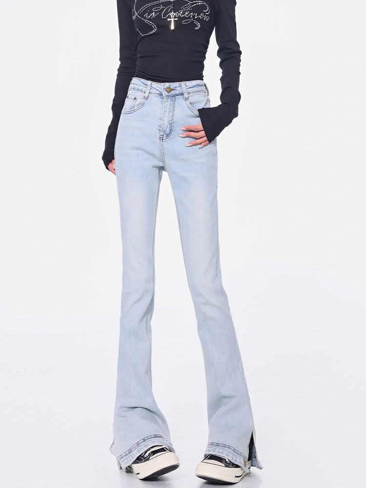 Light Blue High-Waisted Slit Design Jeans