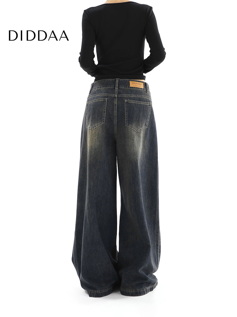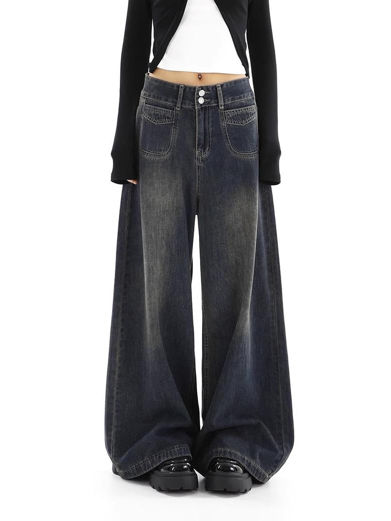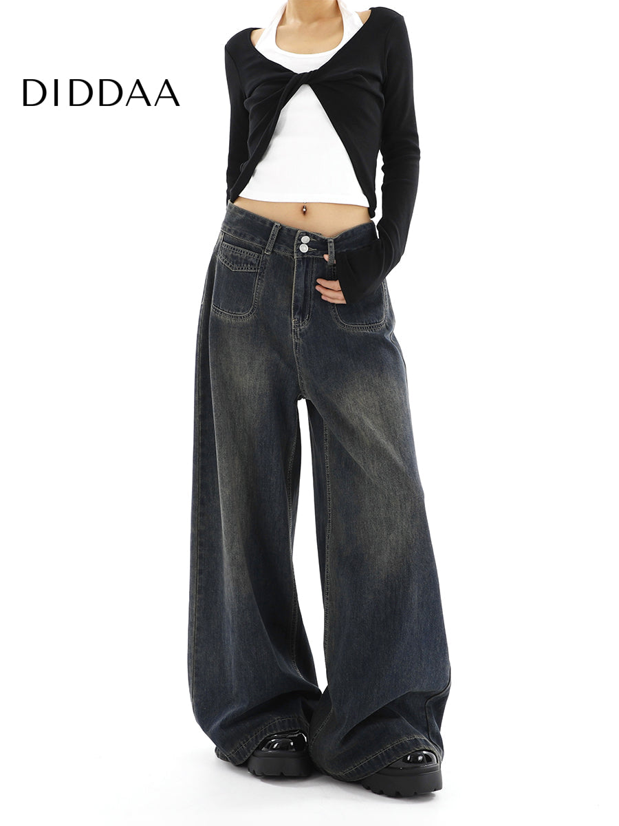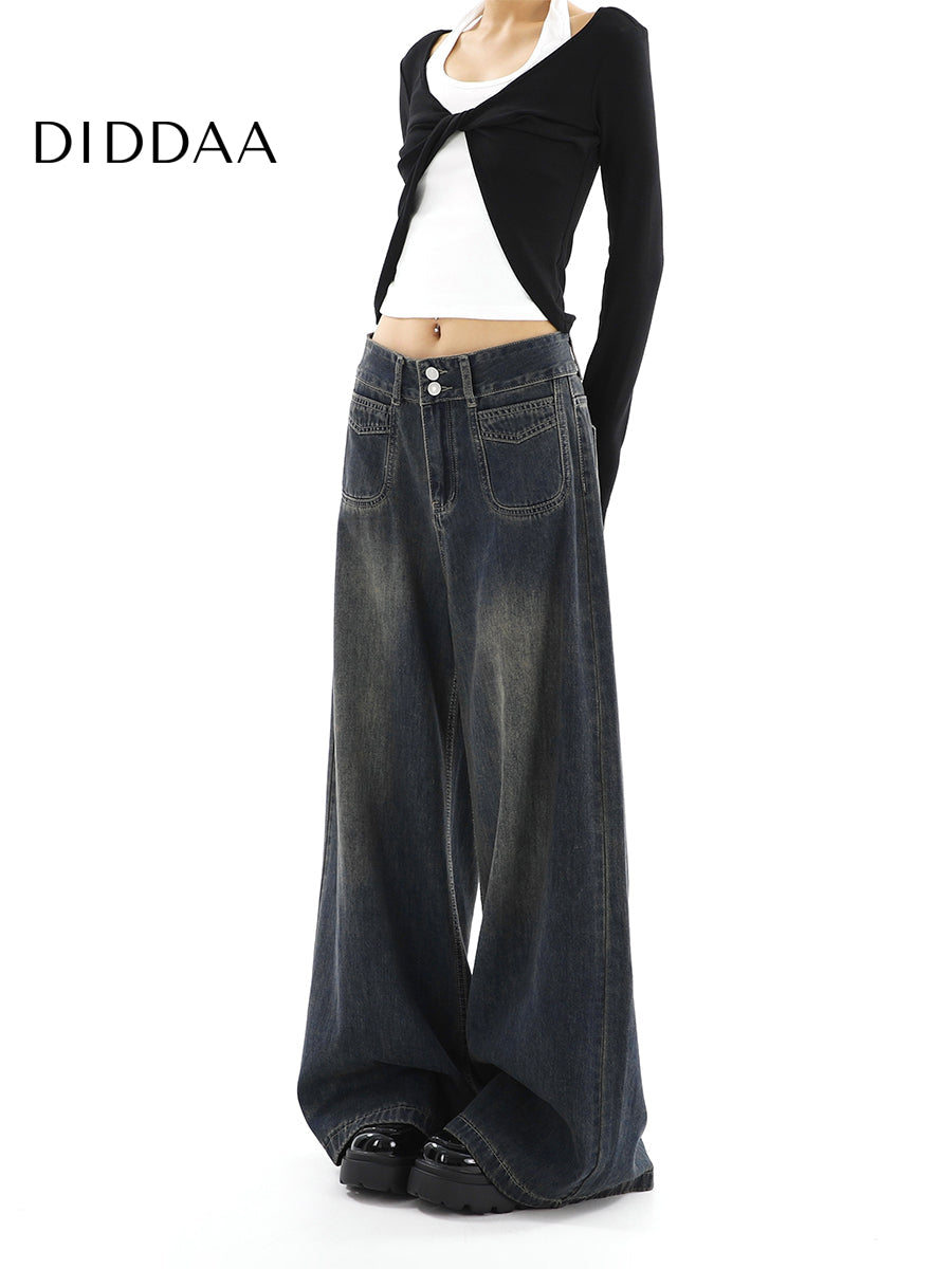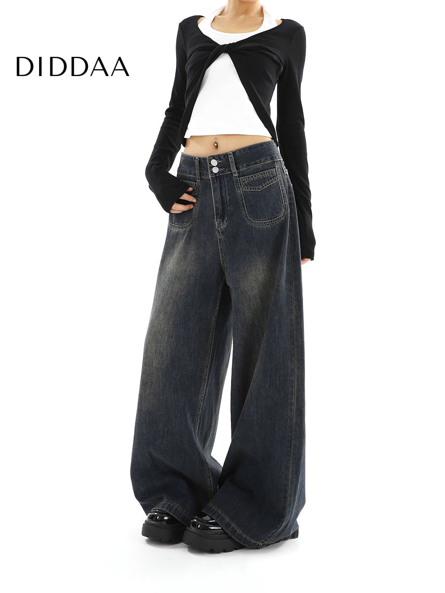 Light Blue Loose Drape Wide-Leg Jeans for Women