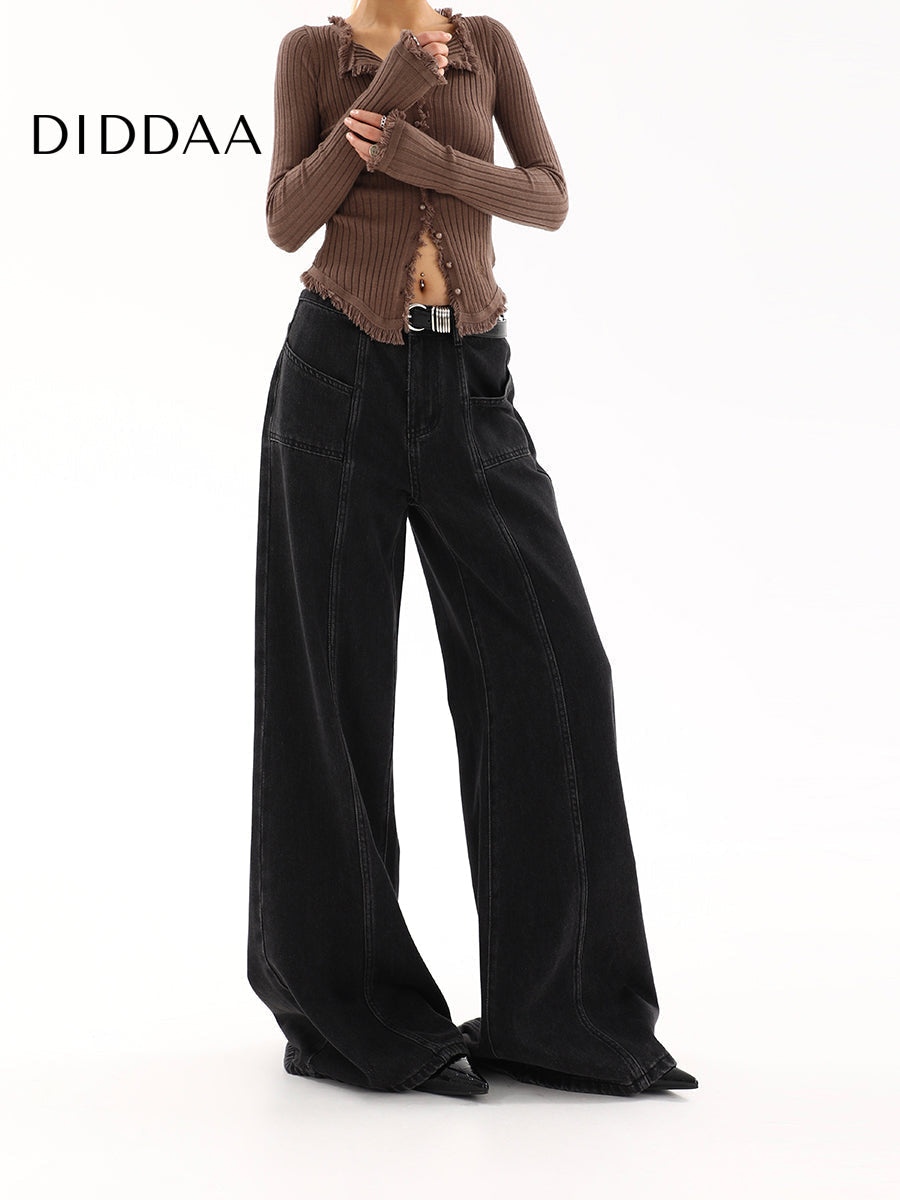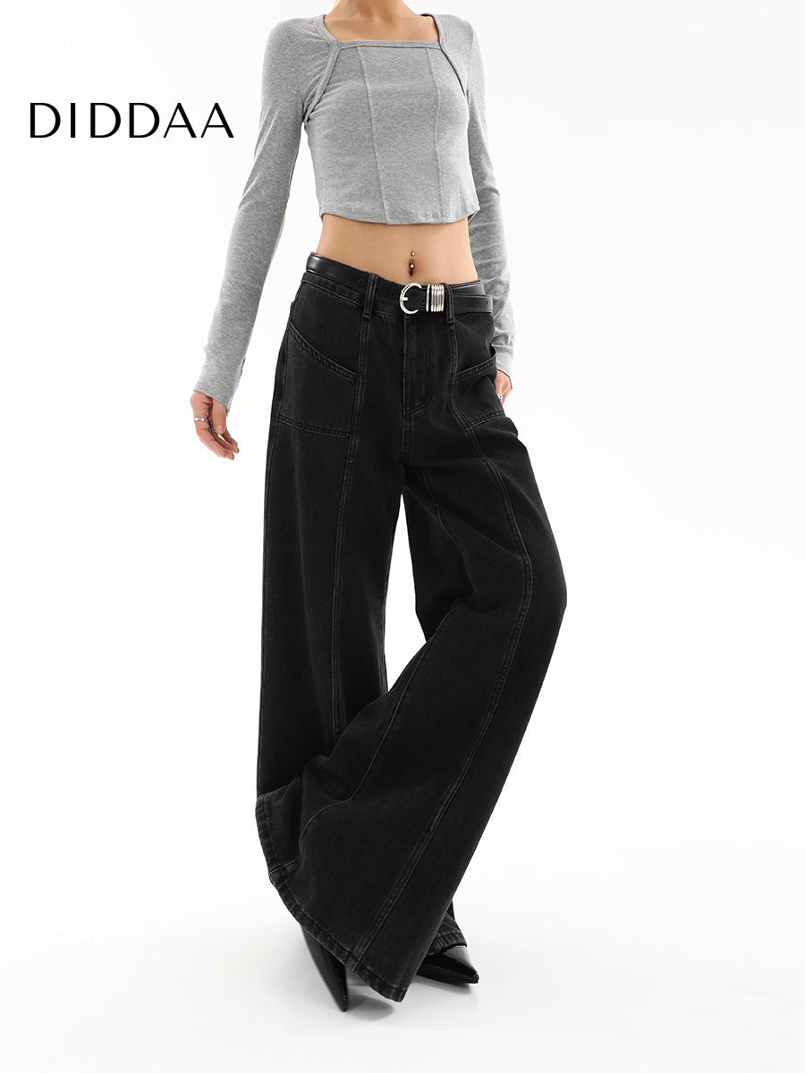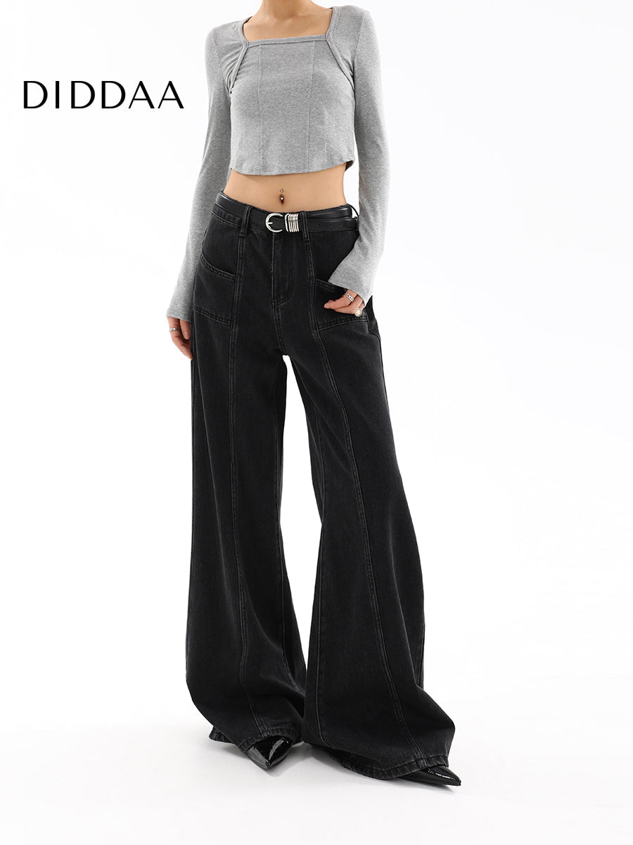 Light Blue Loose Fit Flare Wide Leg Jeans for Women