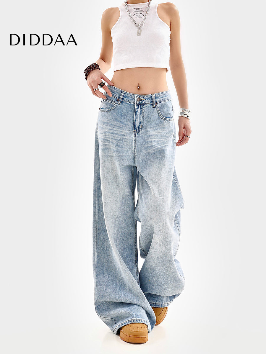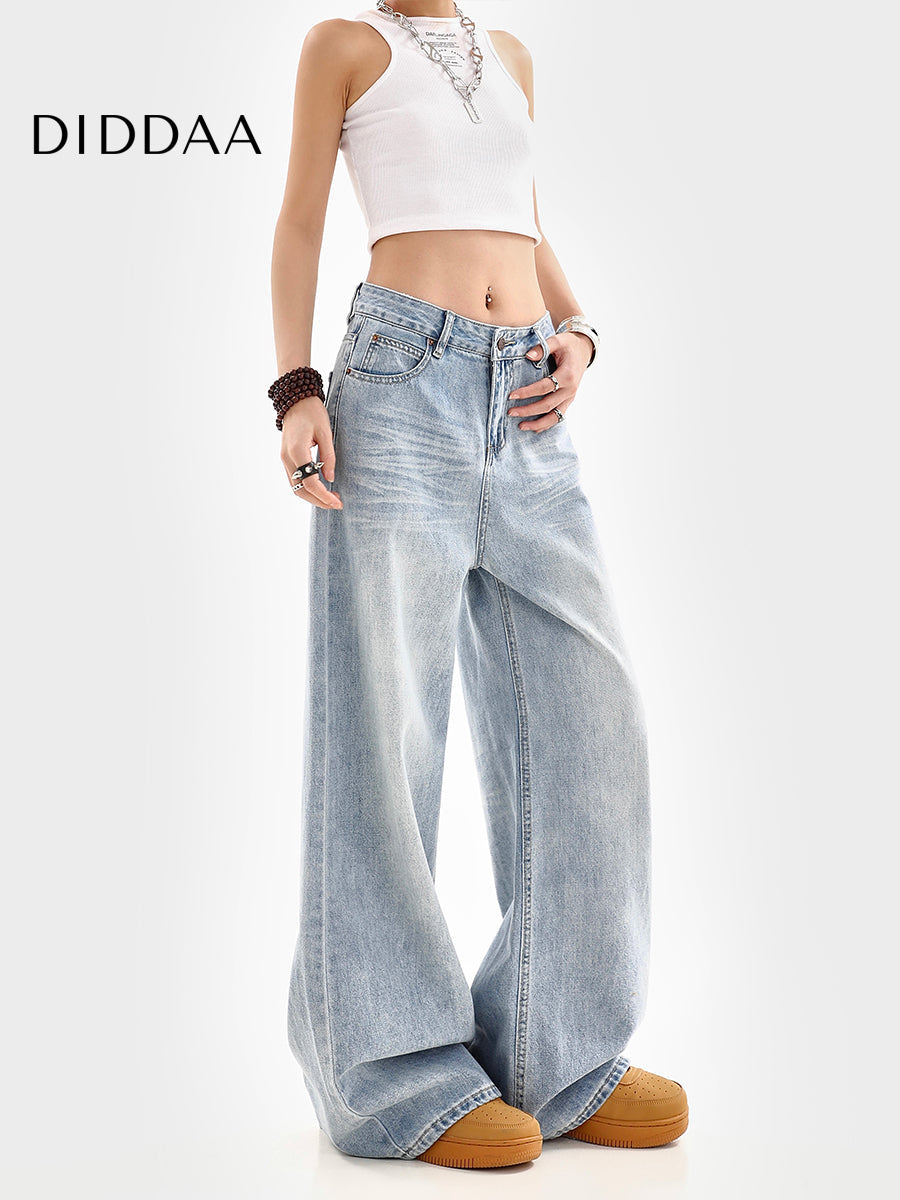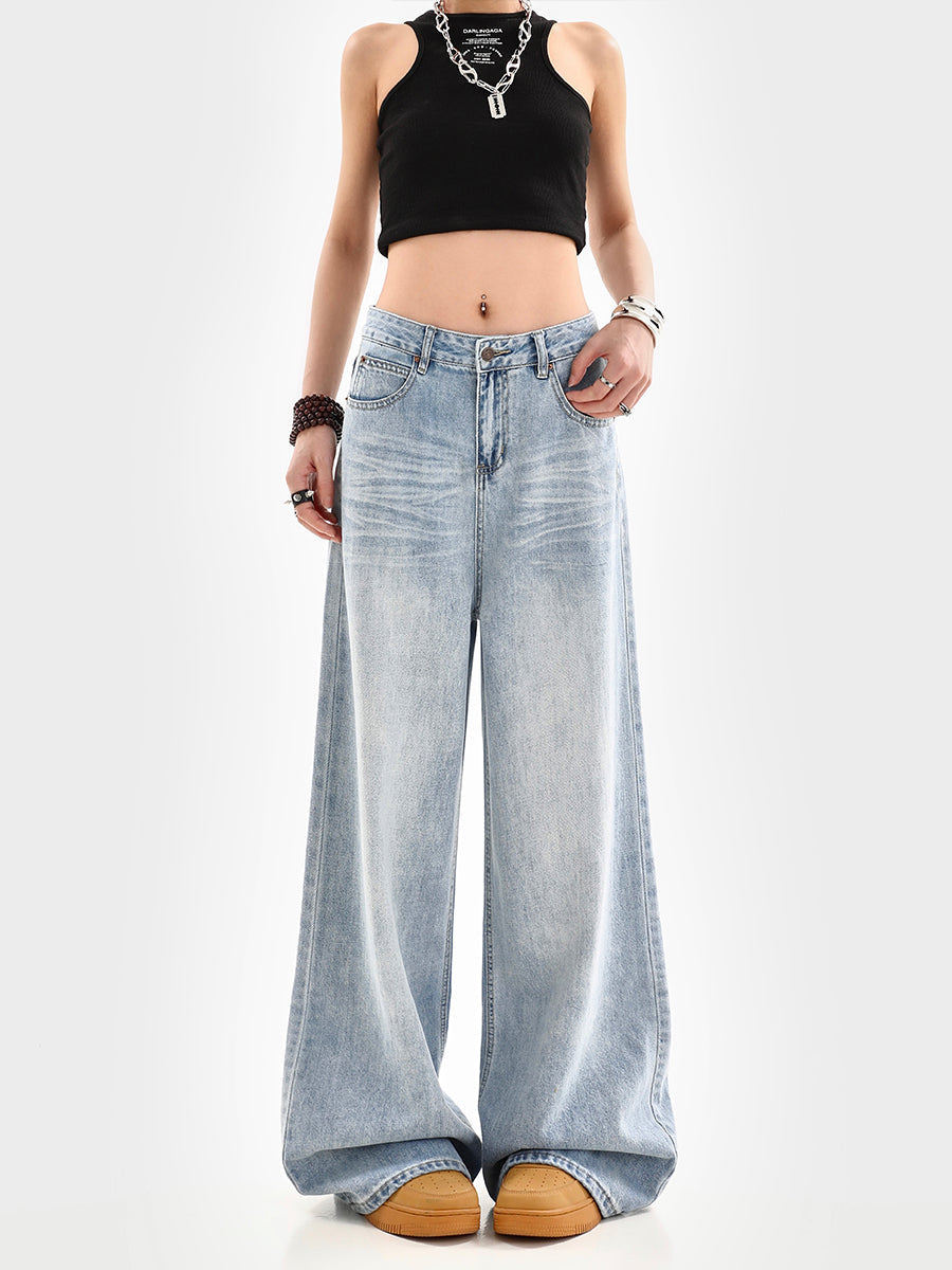 Light Blue Loose Fit Straight Leg Jeans for Women
