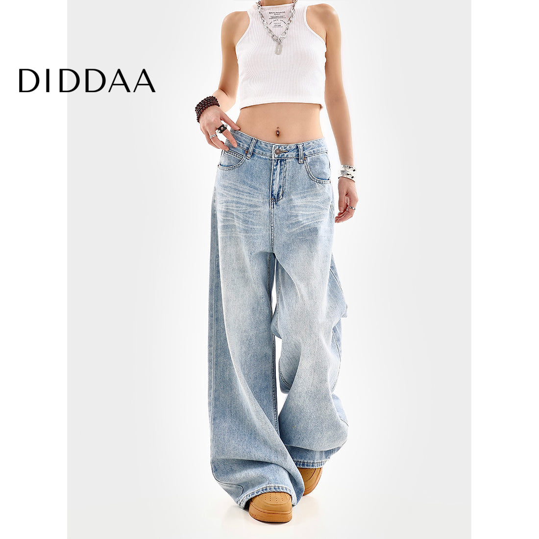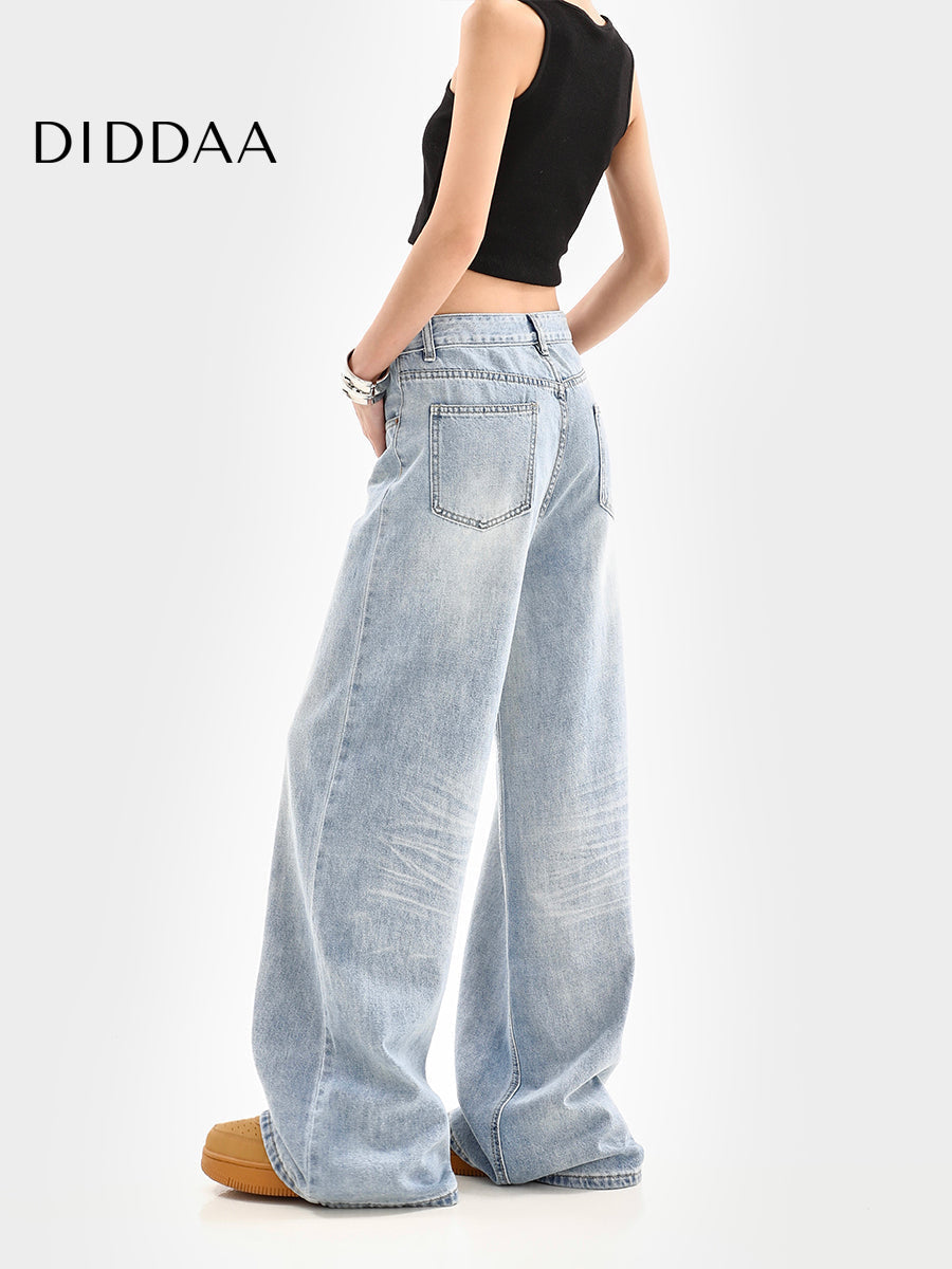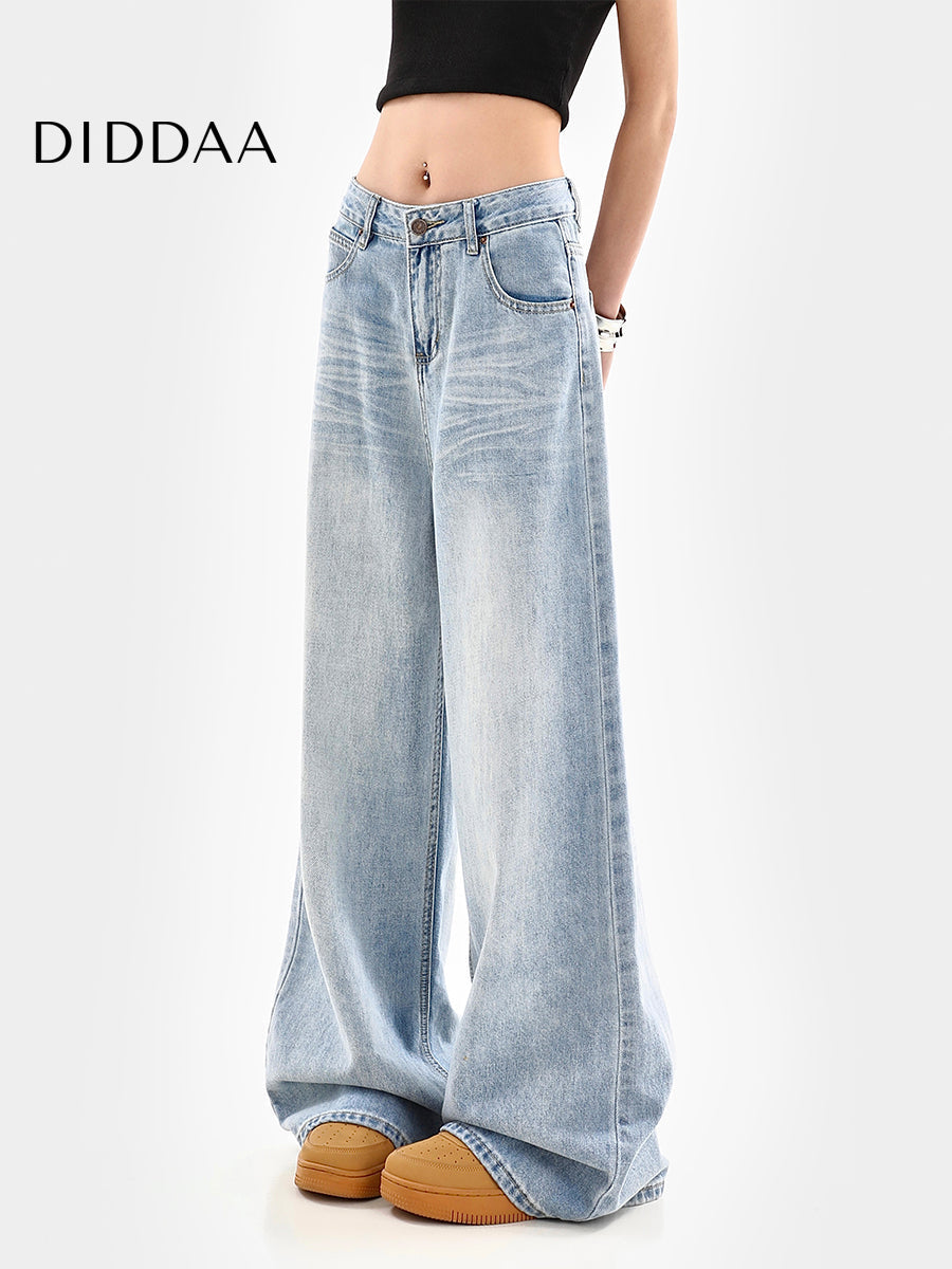 Light Blue Loose Fit Straight Leg Jeans for Women