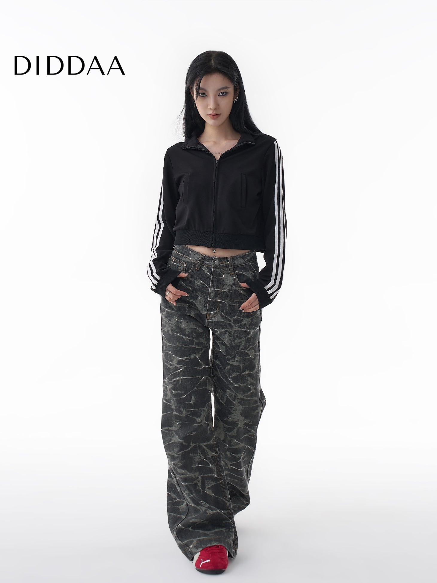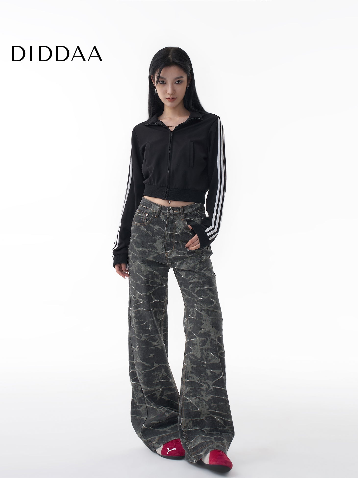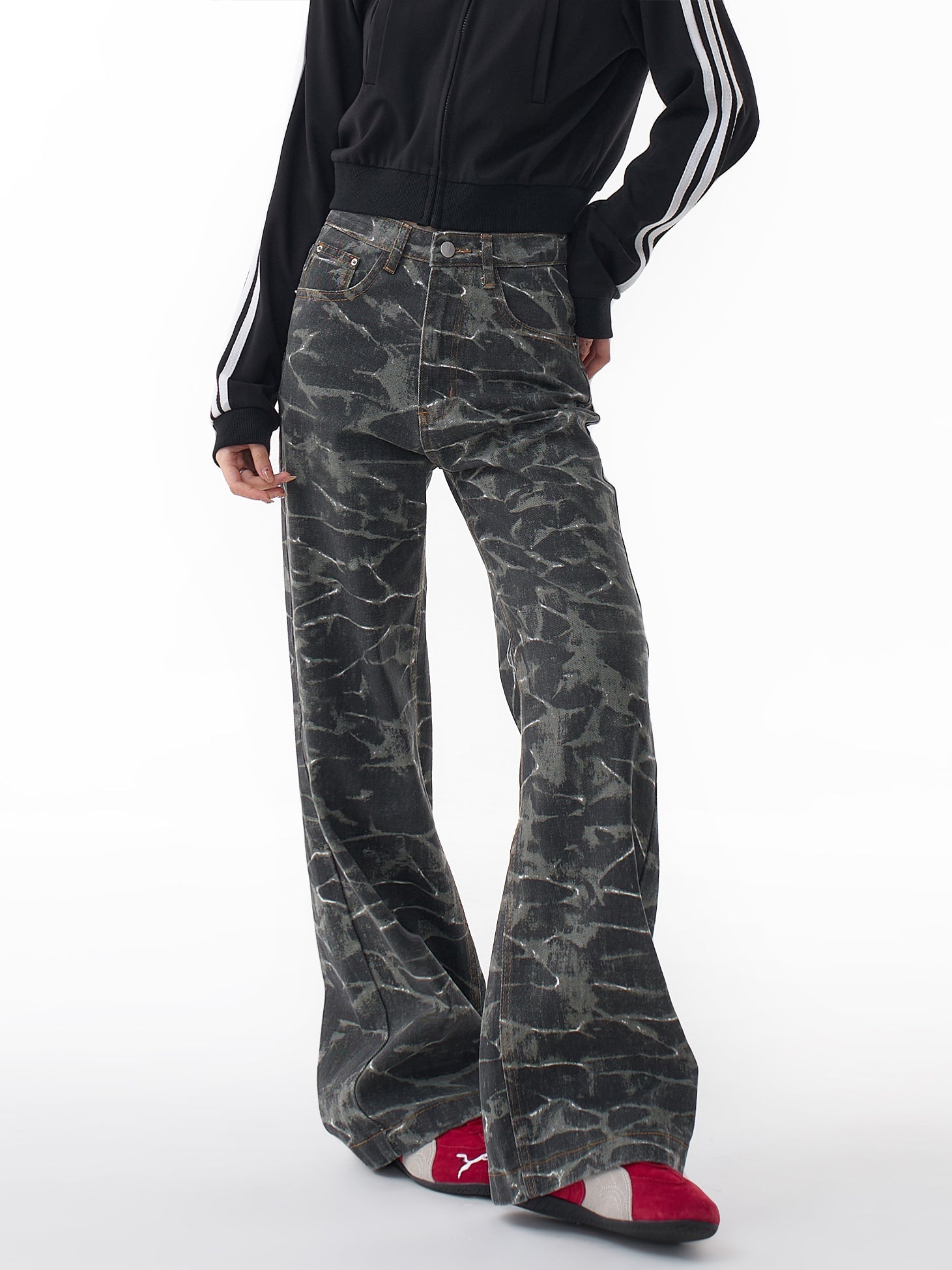 Light Blue Loose Fit Water Ripple Wide-Leg Jeans