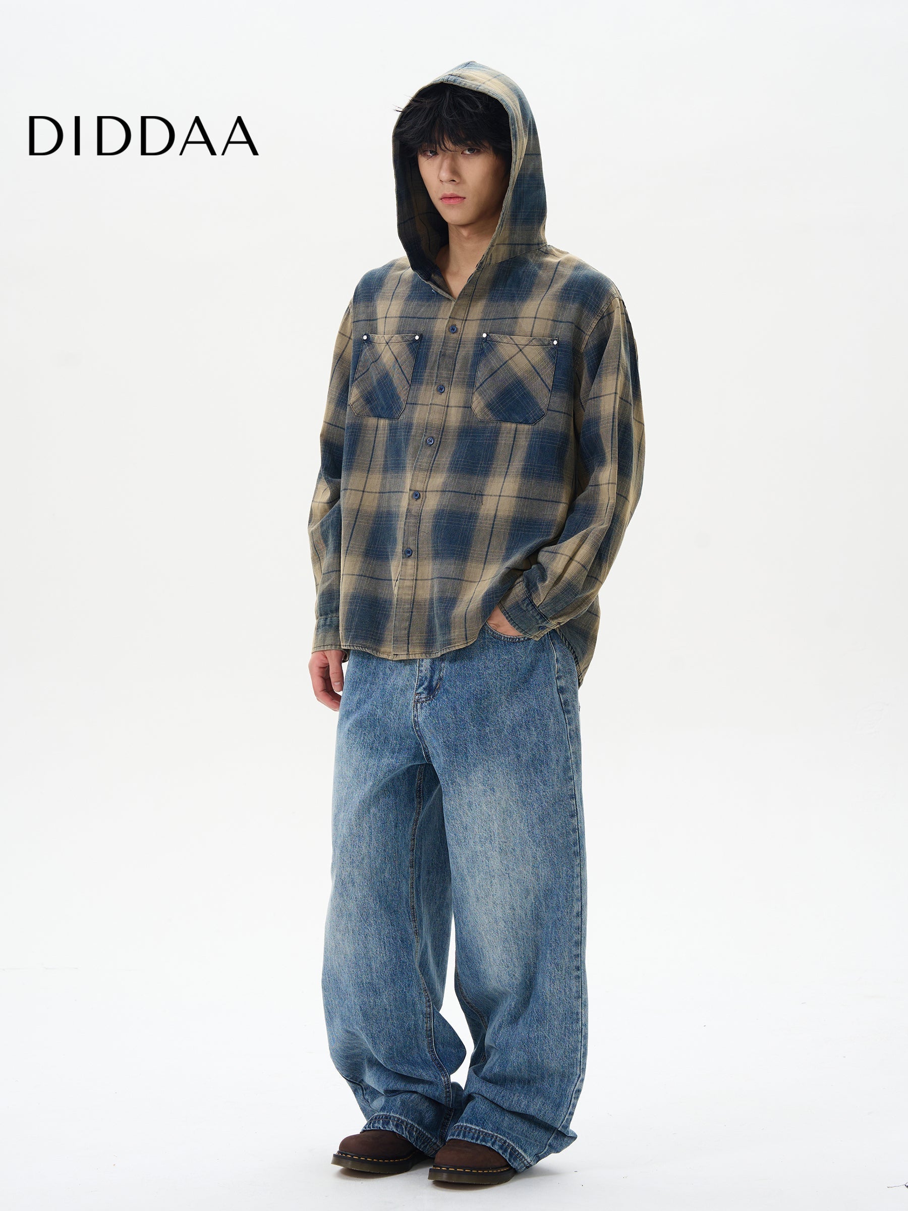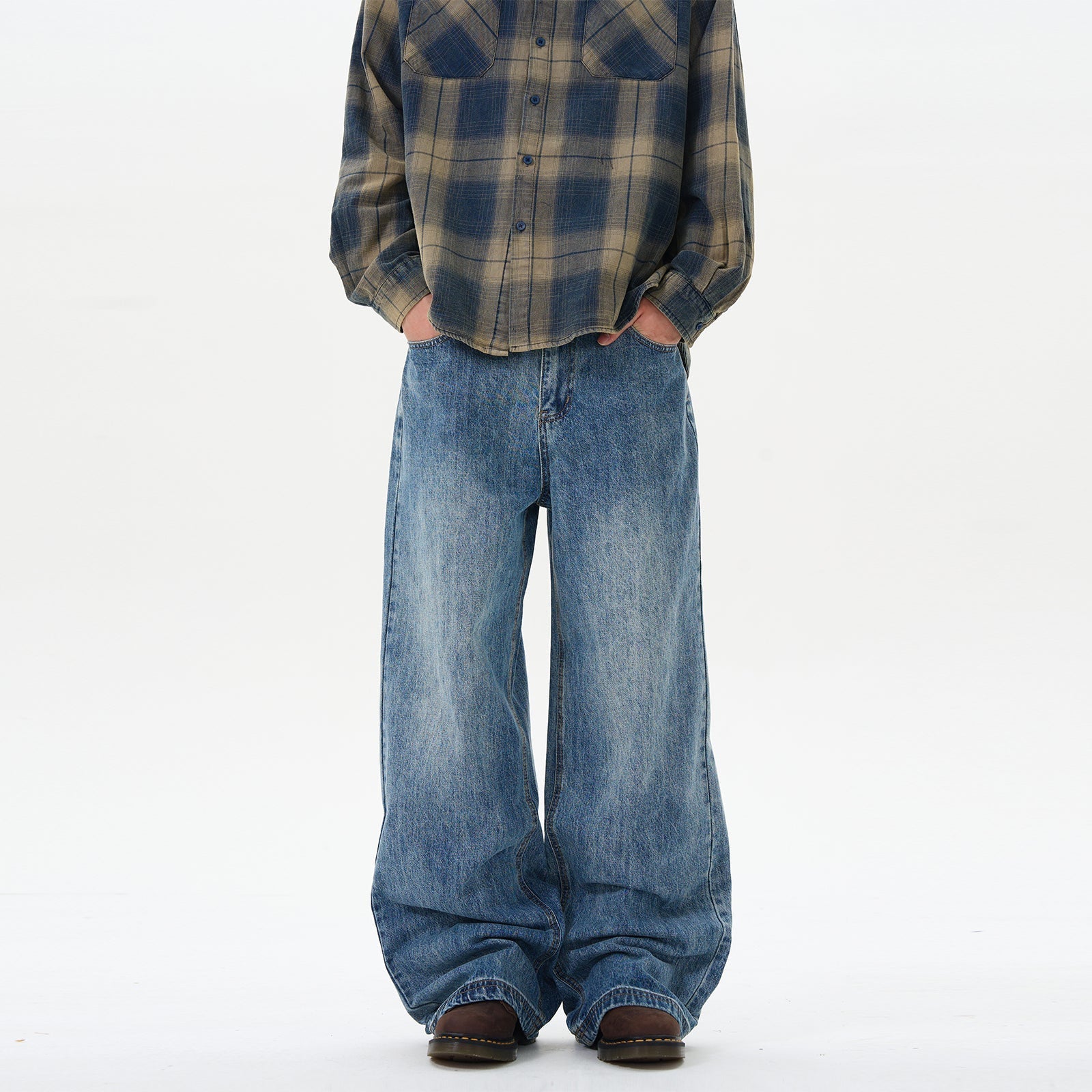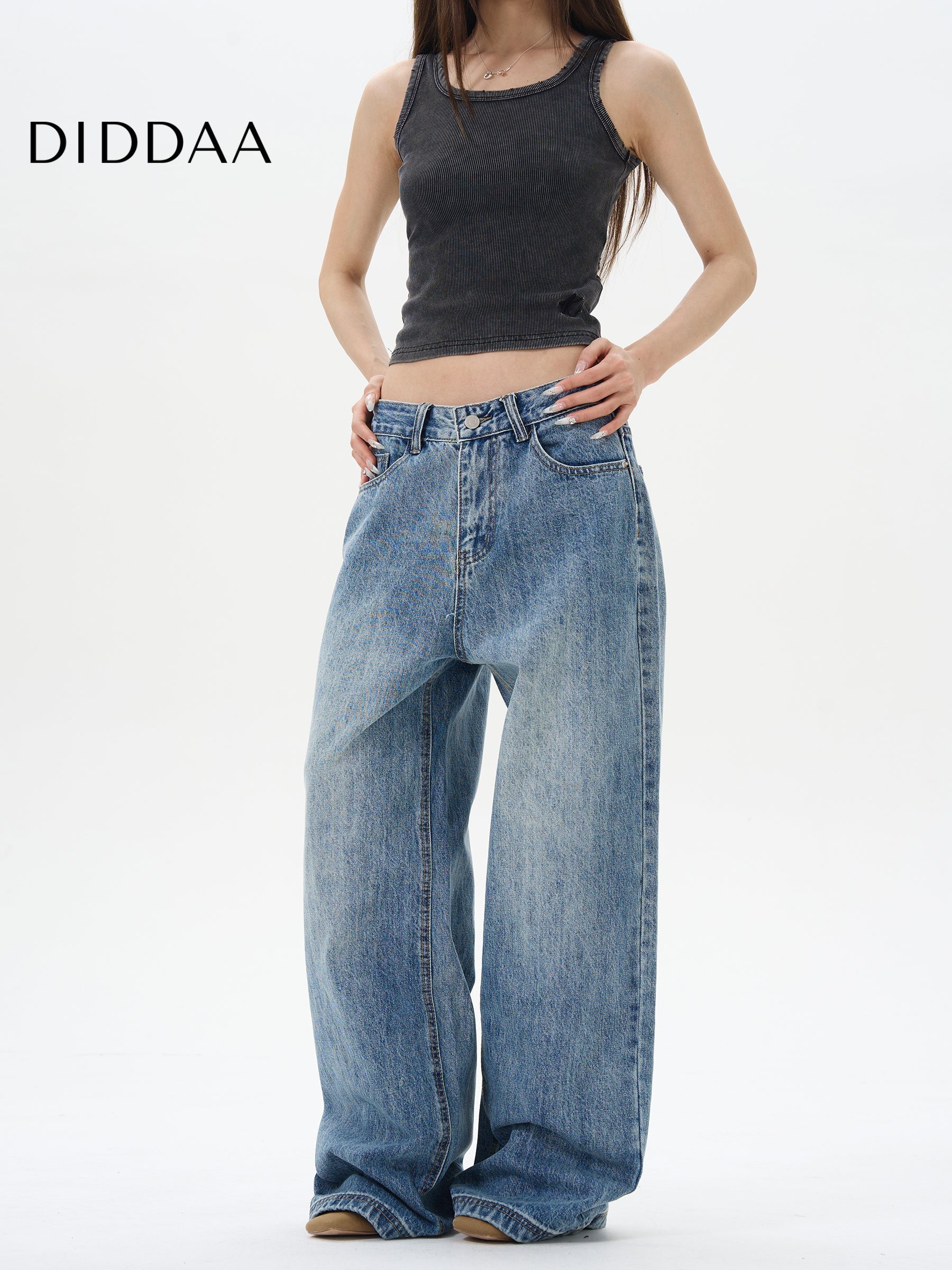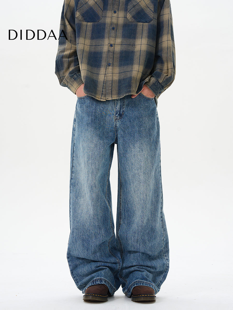 Light Blue Loose Fit Wide-Leg Jeans for Couples