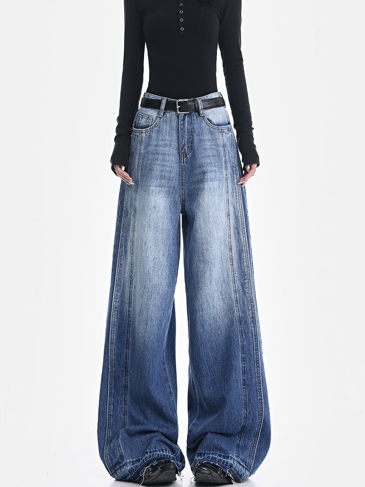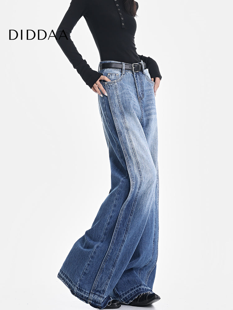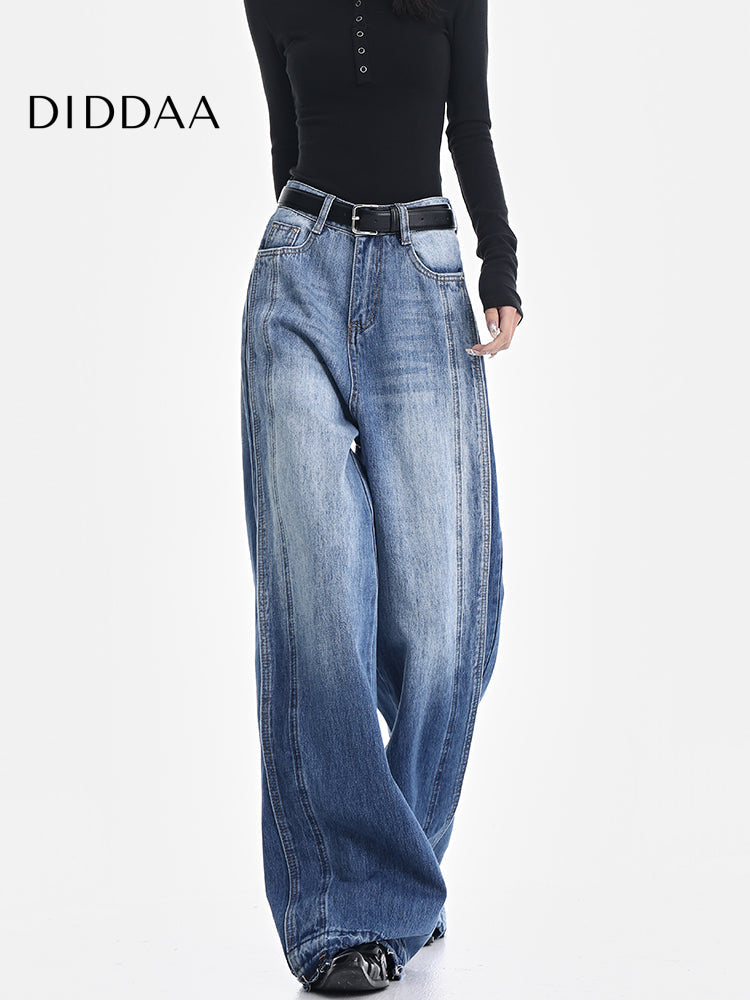 Light Blue Loose Fit Wide-leg Jeans KEN STUDIO Women's Design