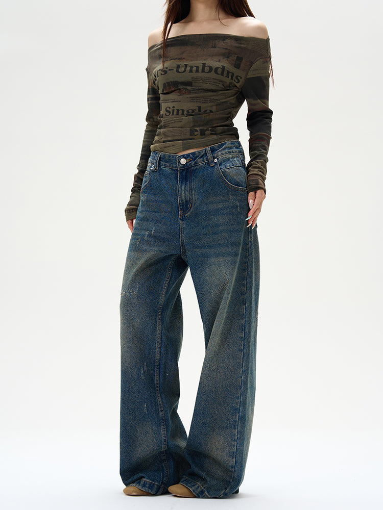 Light Blue Relaxed Loose Straight-Leg Jeans