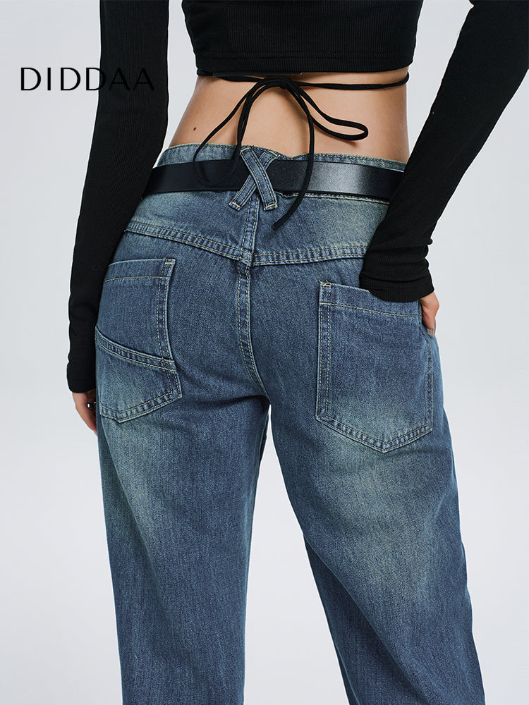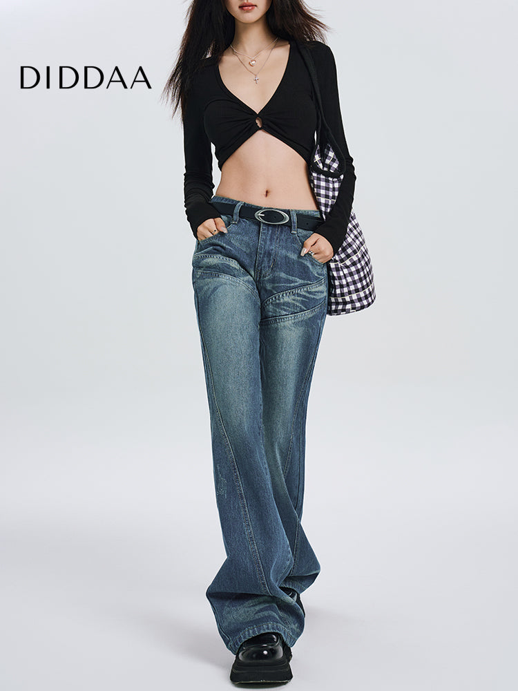 Light Blue Retro Frayed Bootcut Jeans for Women