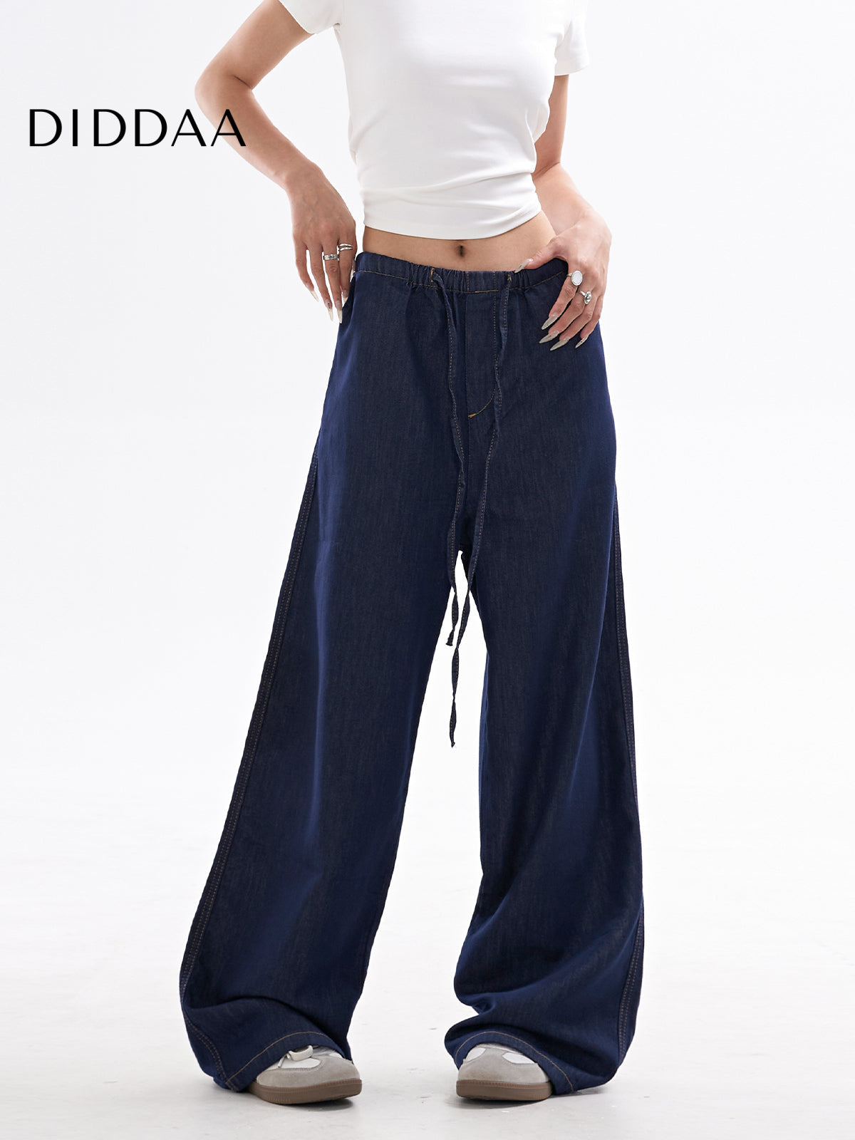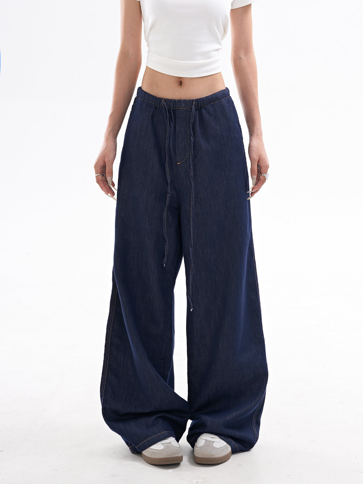 Light Blue Retro Loose Wide Leg Jeans for Women