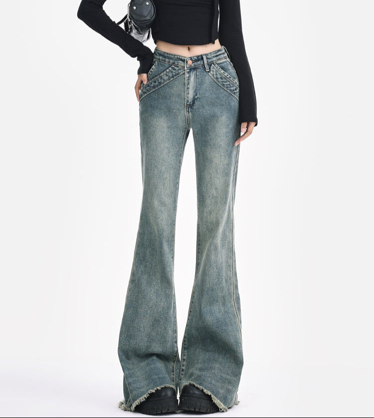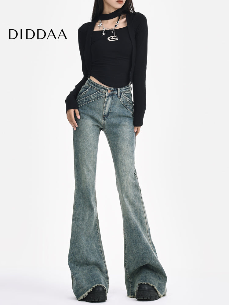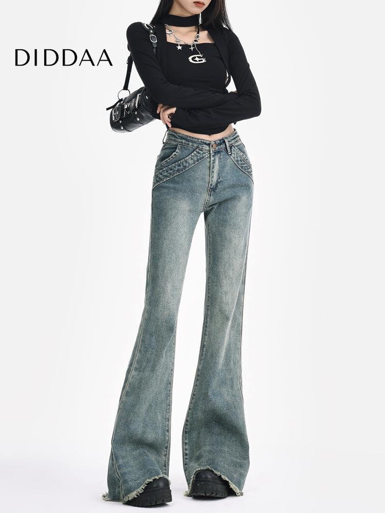 Light Blue Retro Low-Rise Flared Jeans Women's 2025 Design