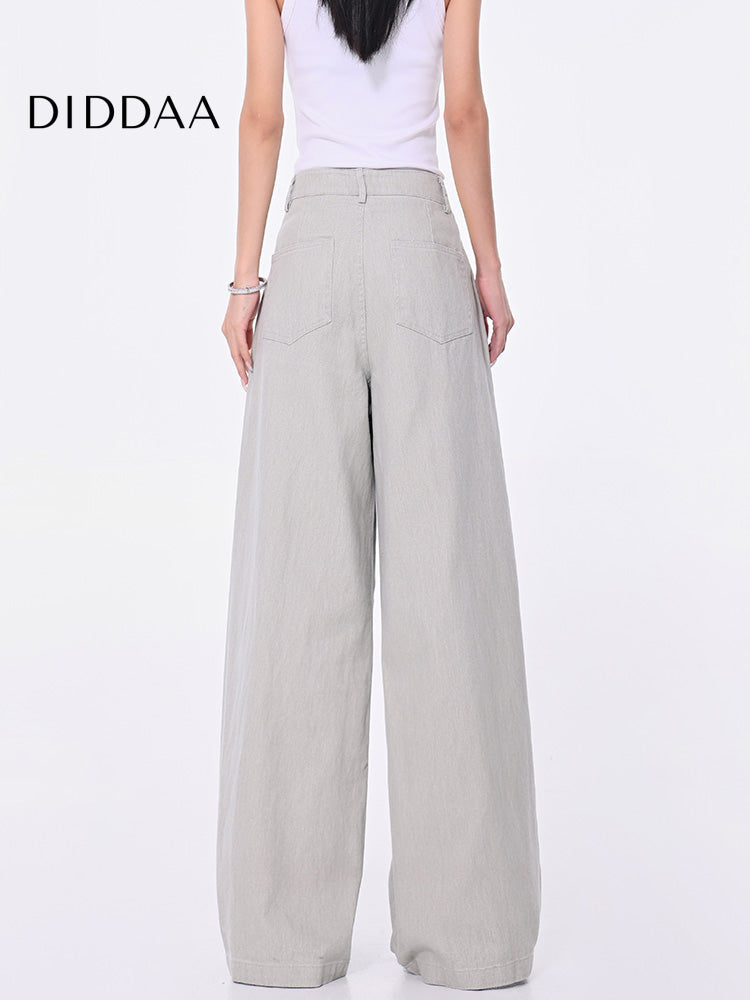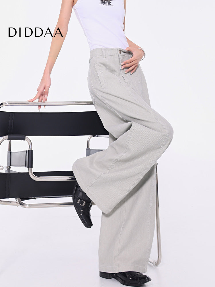Light Blue Retro Straight Jeans Women's Loose Casual Pants