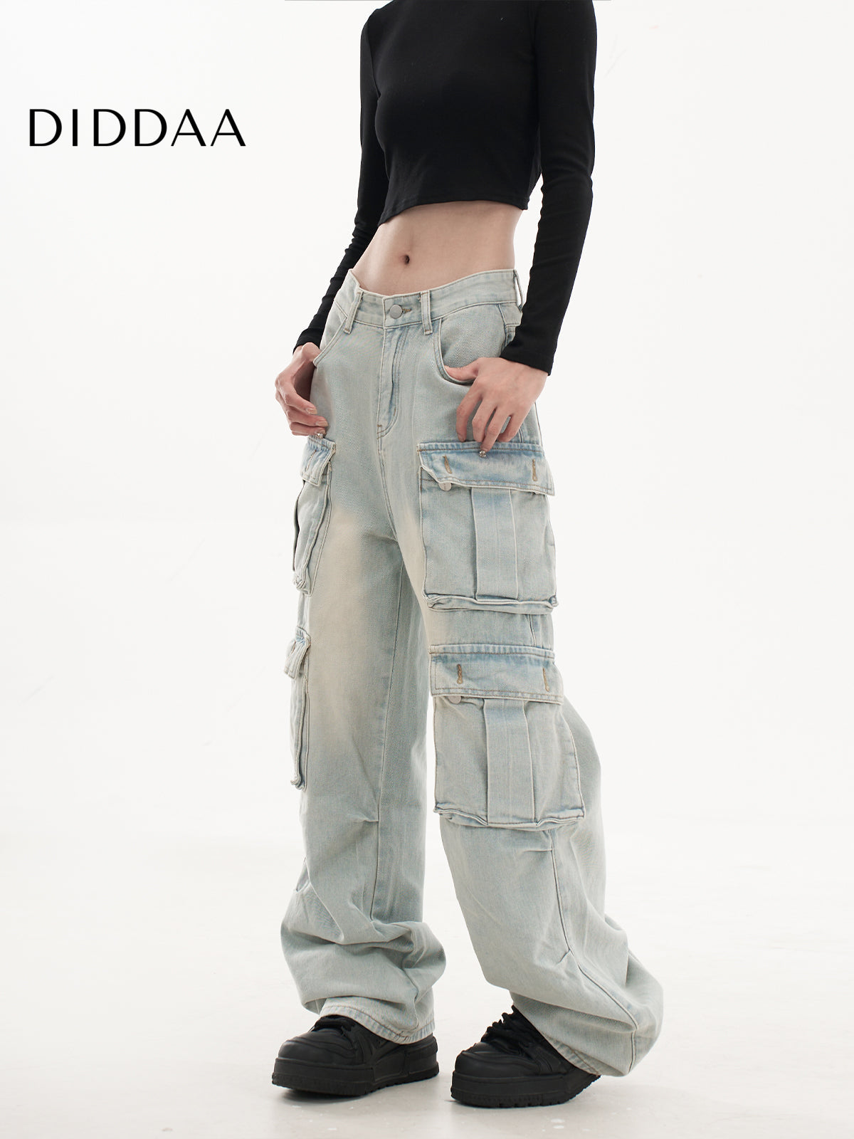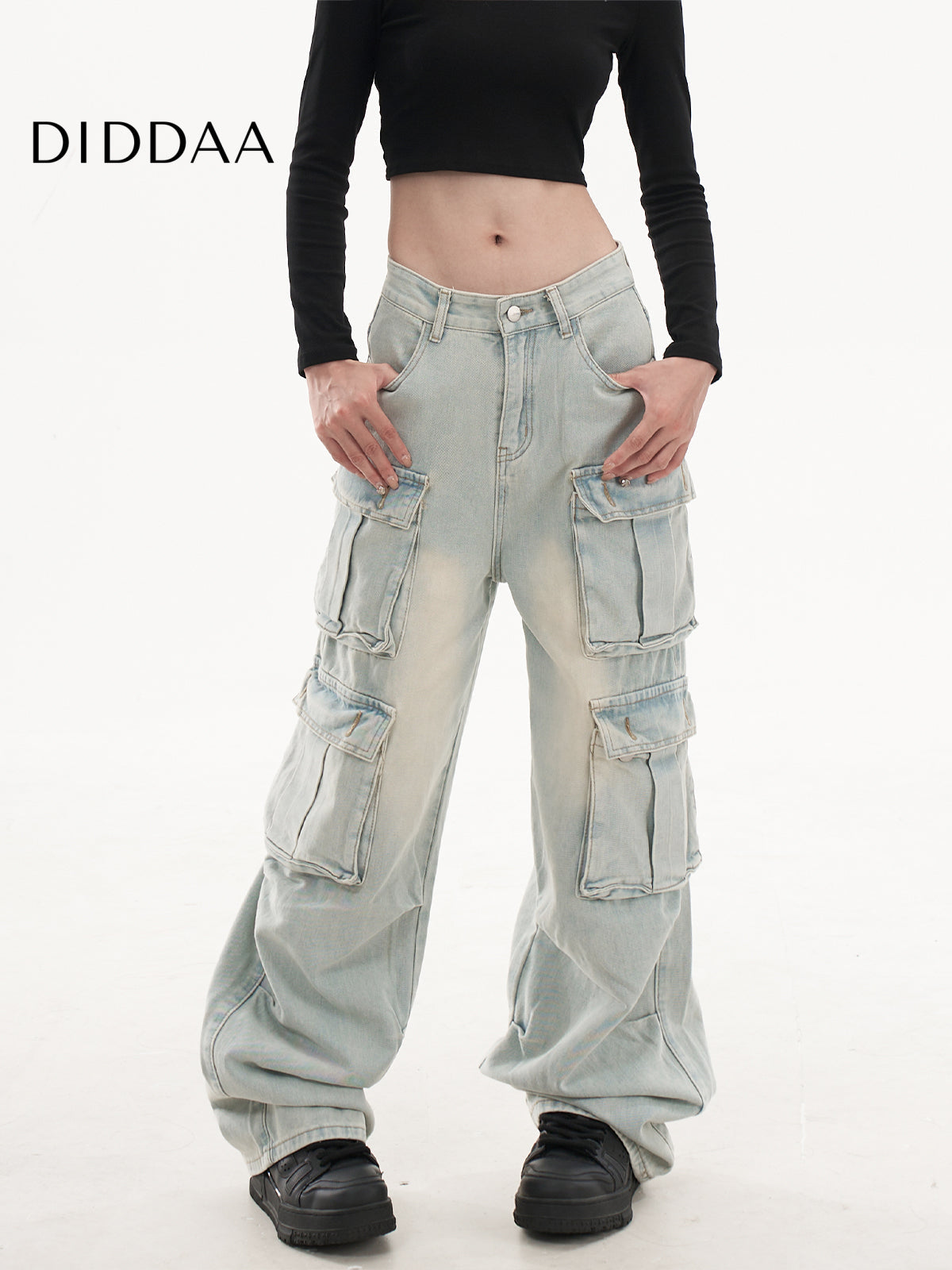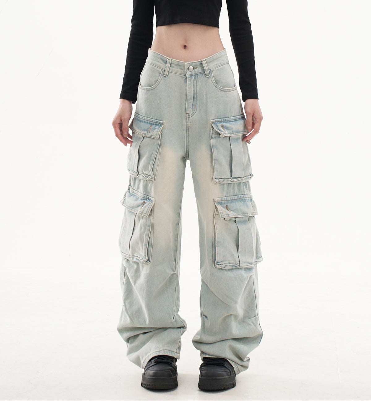 Light Blue Retro Washed Multi-Pocket Cargo Pants