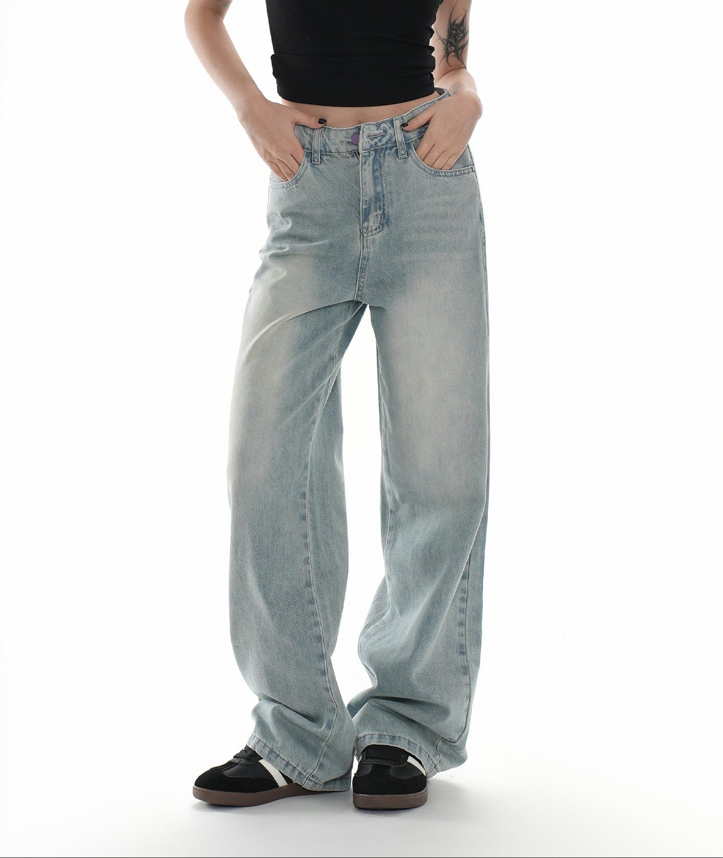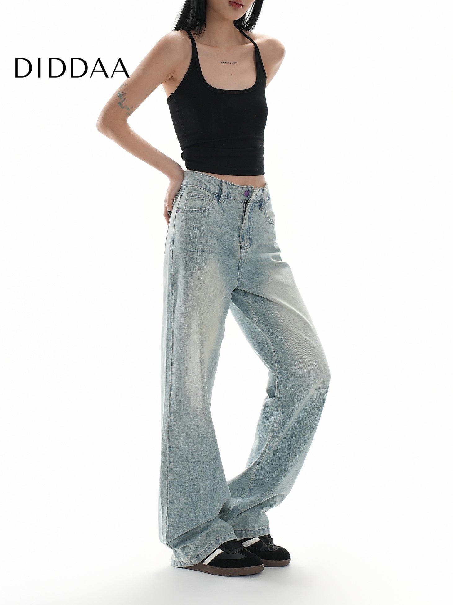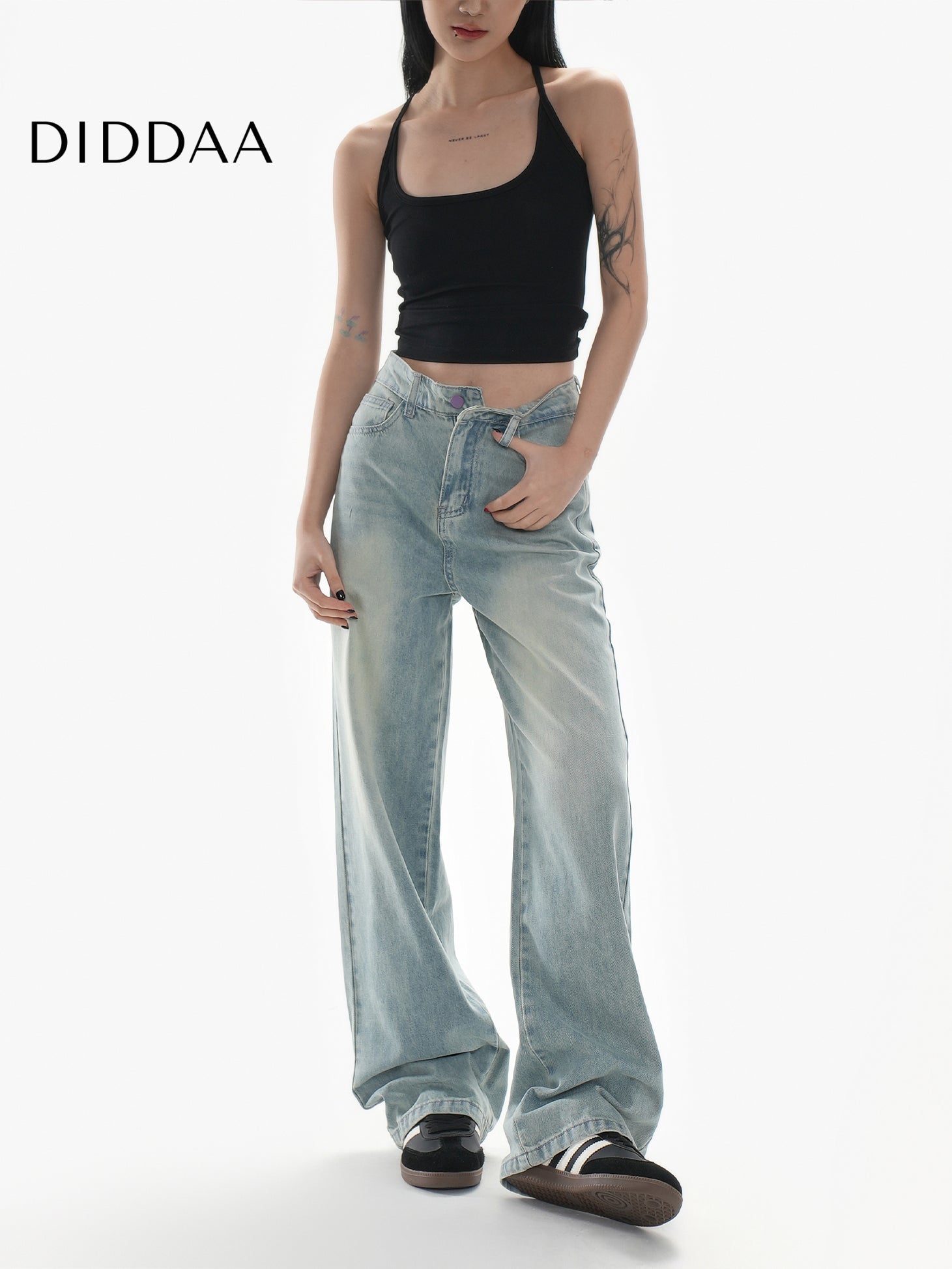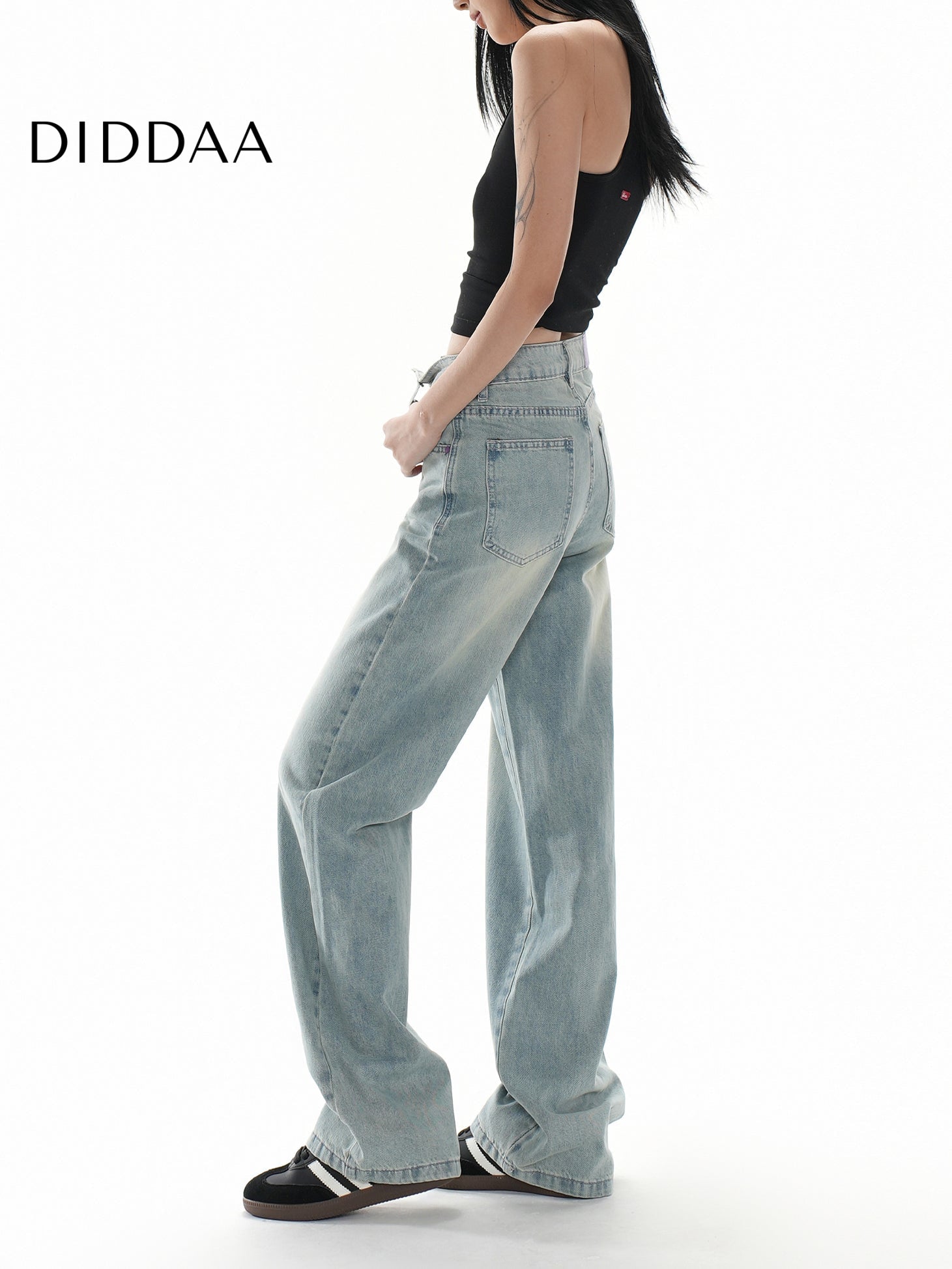 Light Blue Retro Wide-Leg Jeans for Women Spring 2025