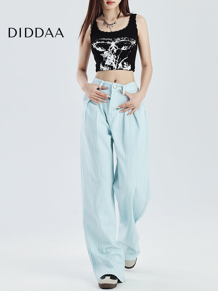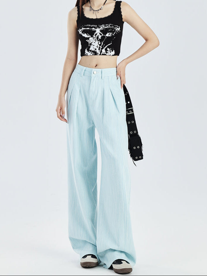 Light Blue High-Waisted Wide-Leg Pants for Women