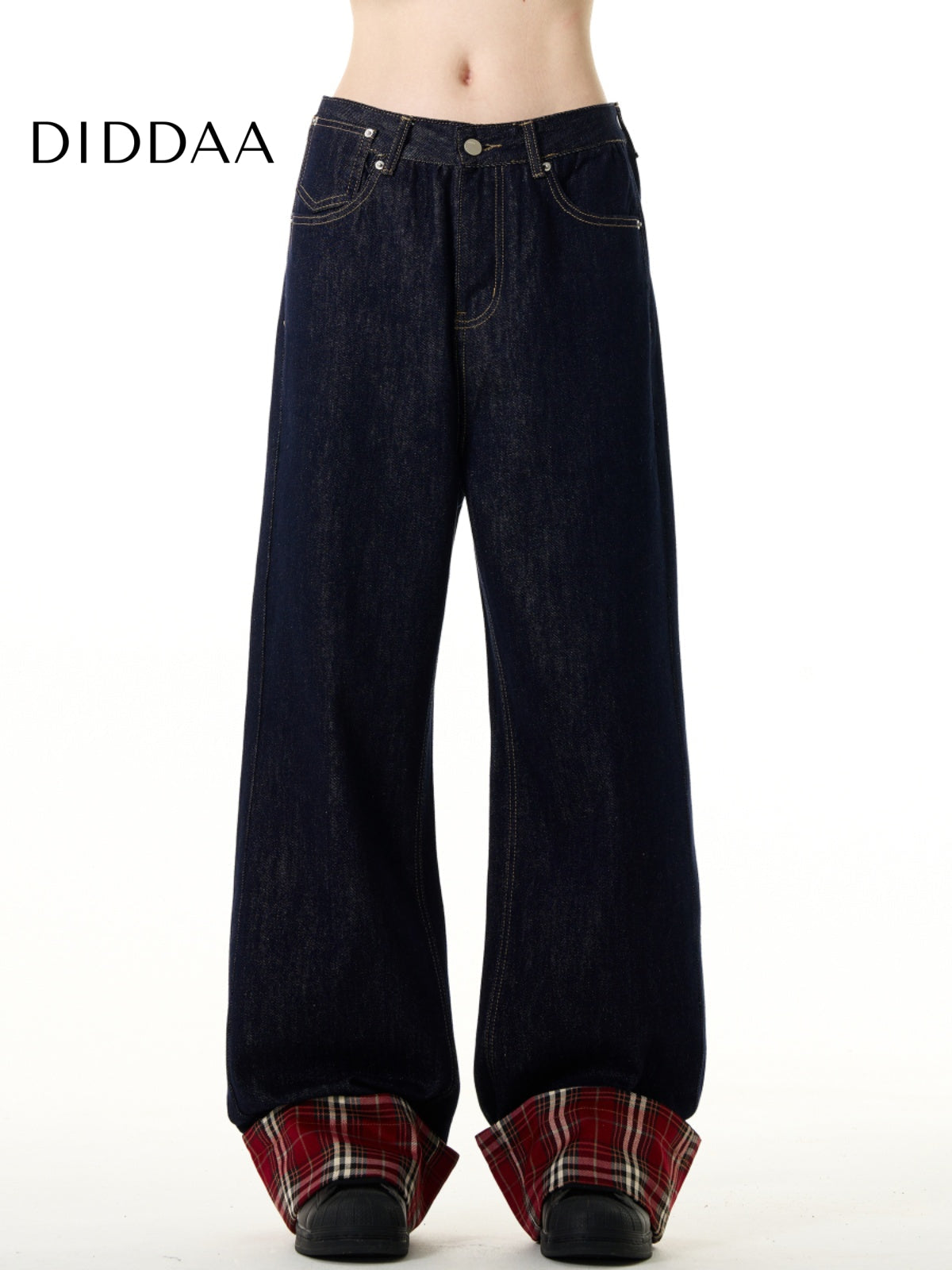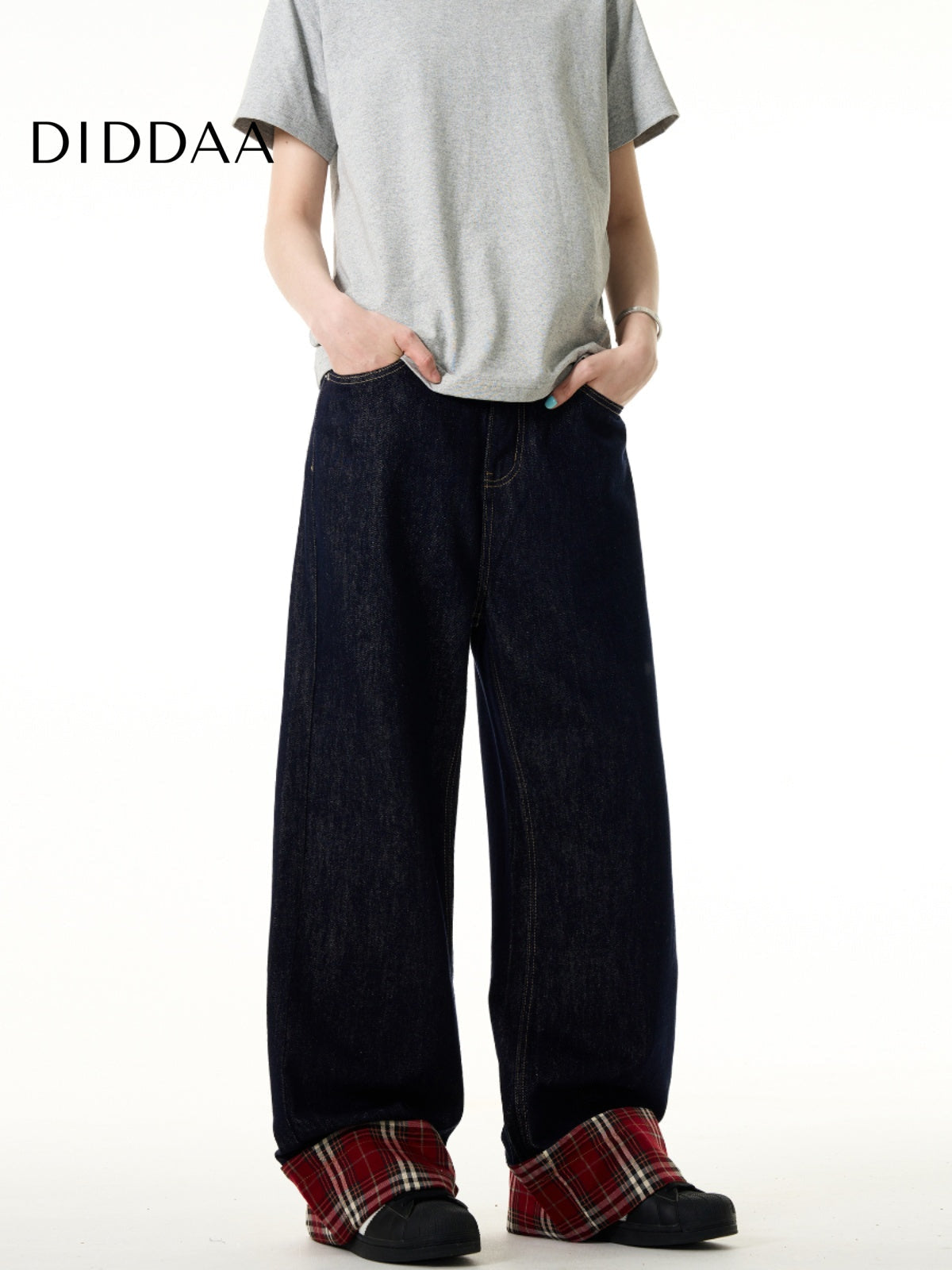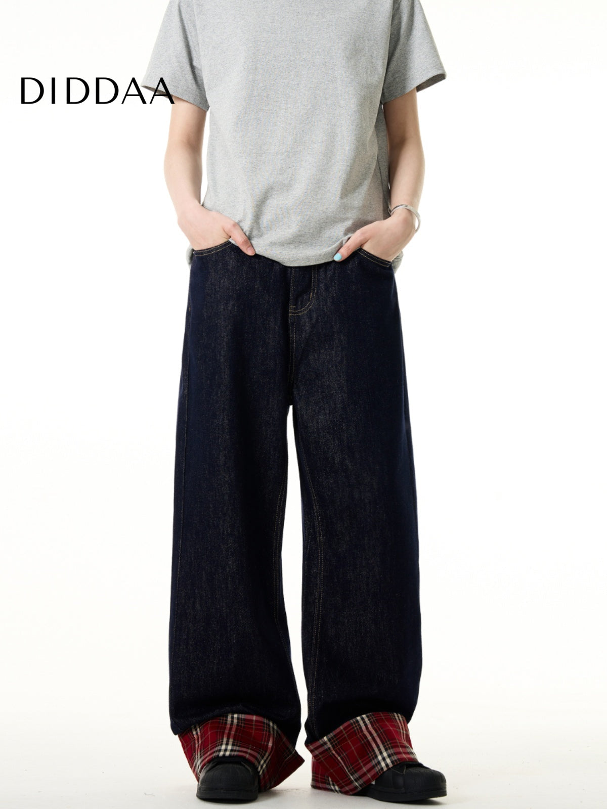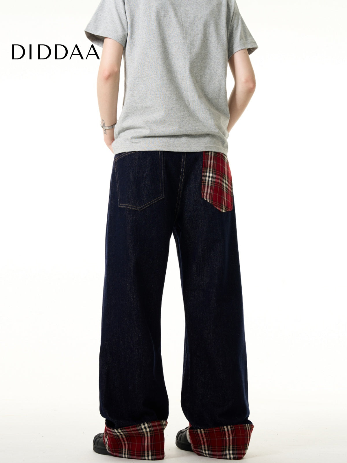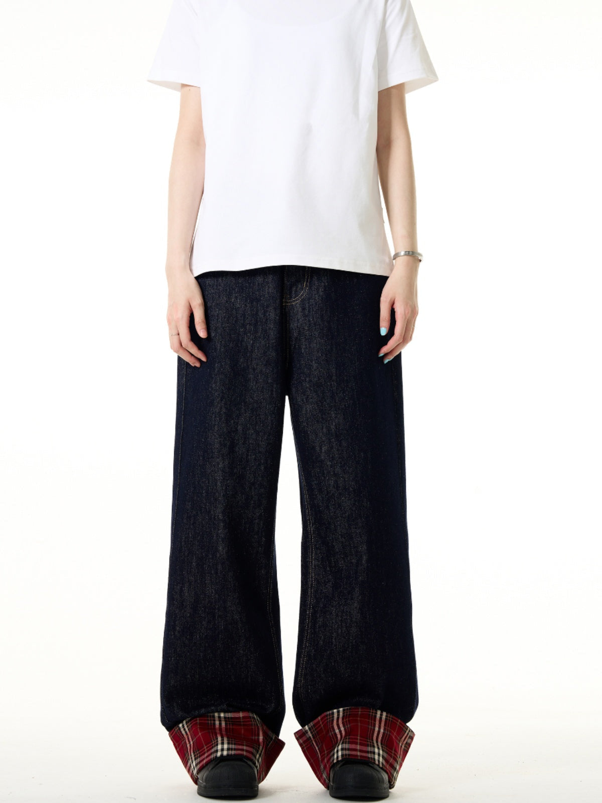 Light Blue Vintage Loose Straight-Leg Patchwork Jeans