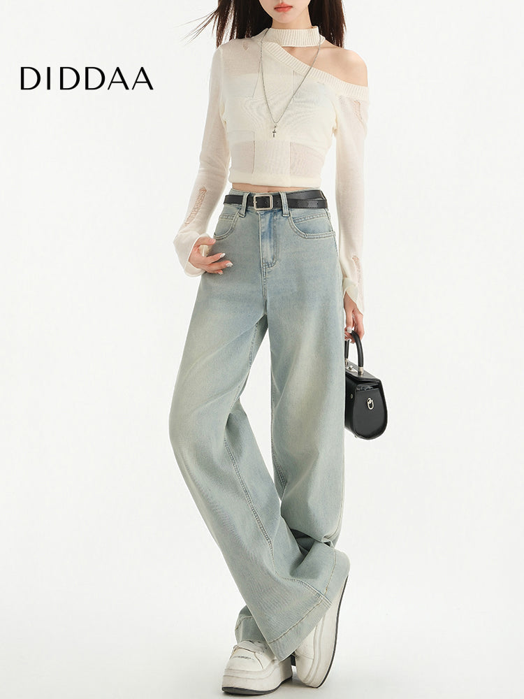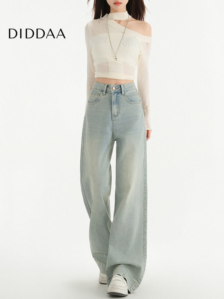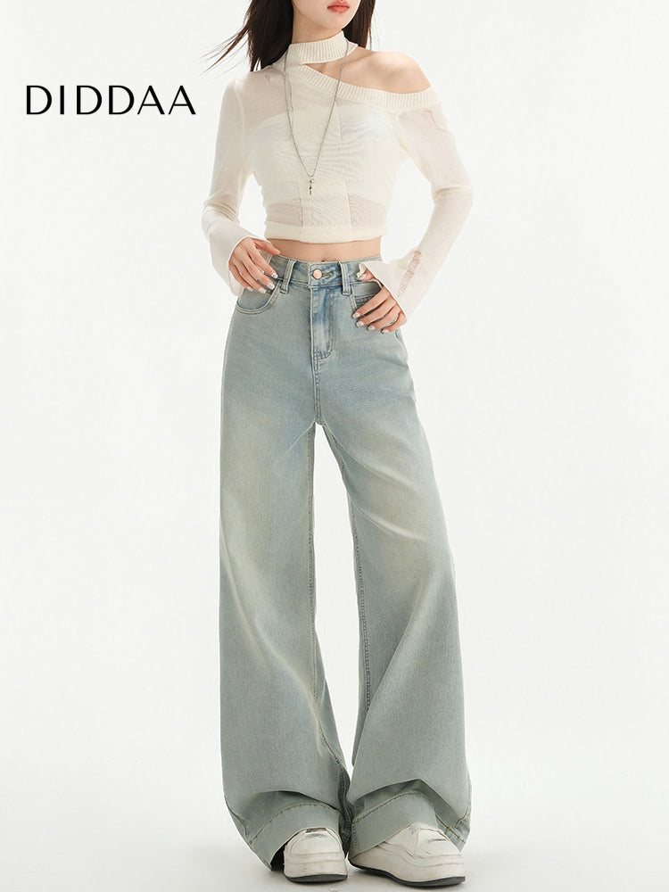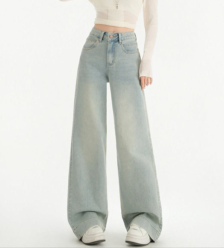 Light Blue High-Waisted Wide-Leg Jeans for Women