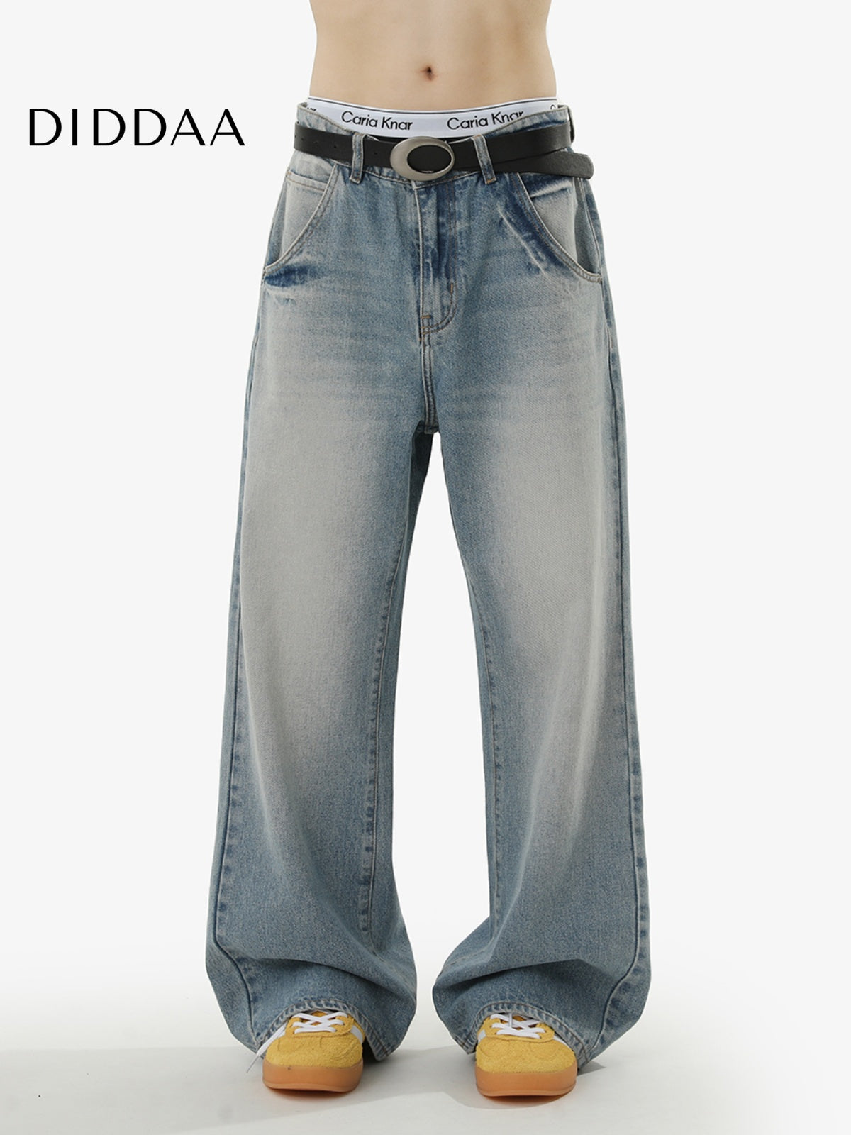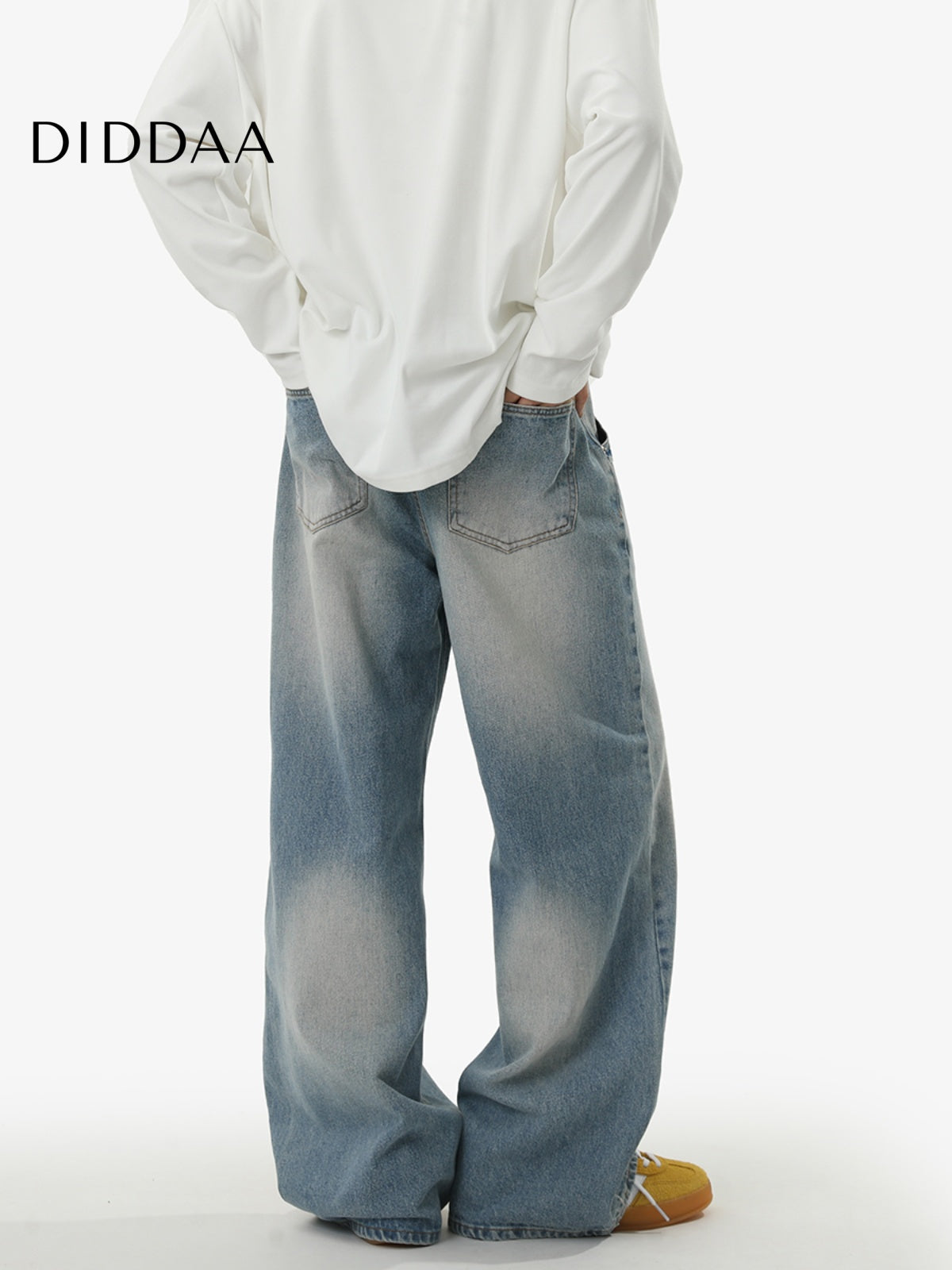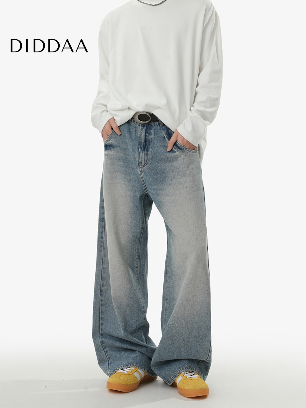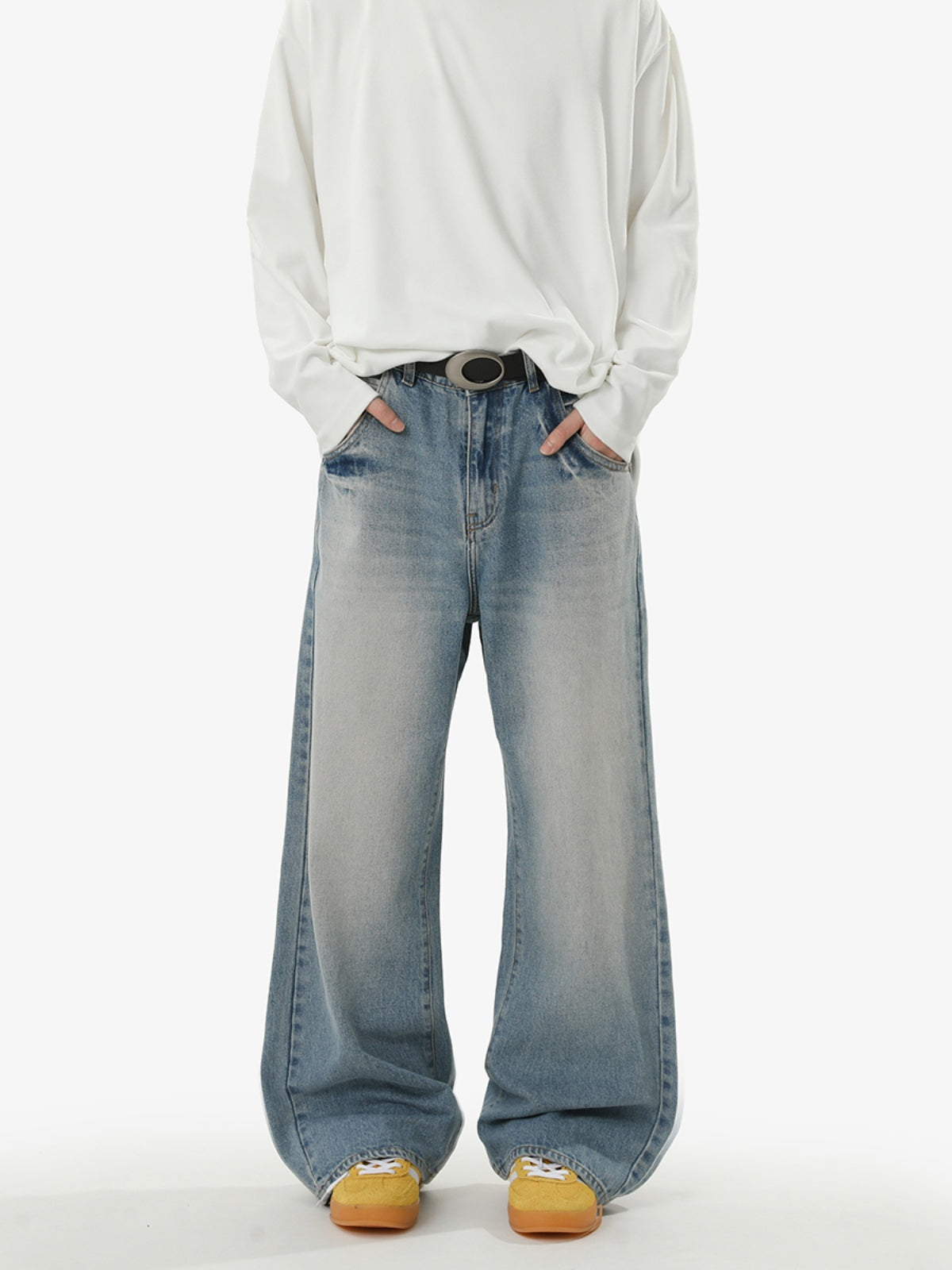 Light Wash Loose Fit Straight Leg Jeans for Men